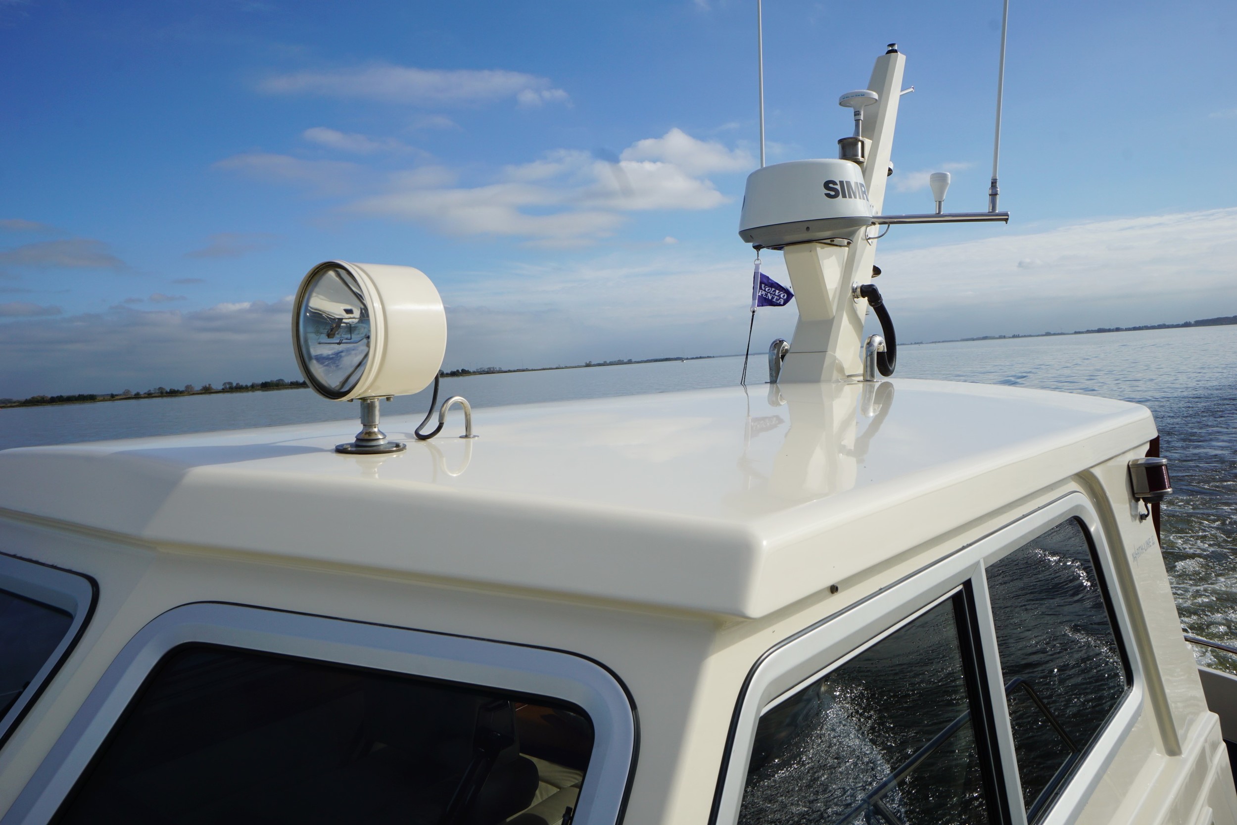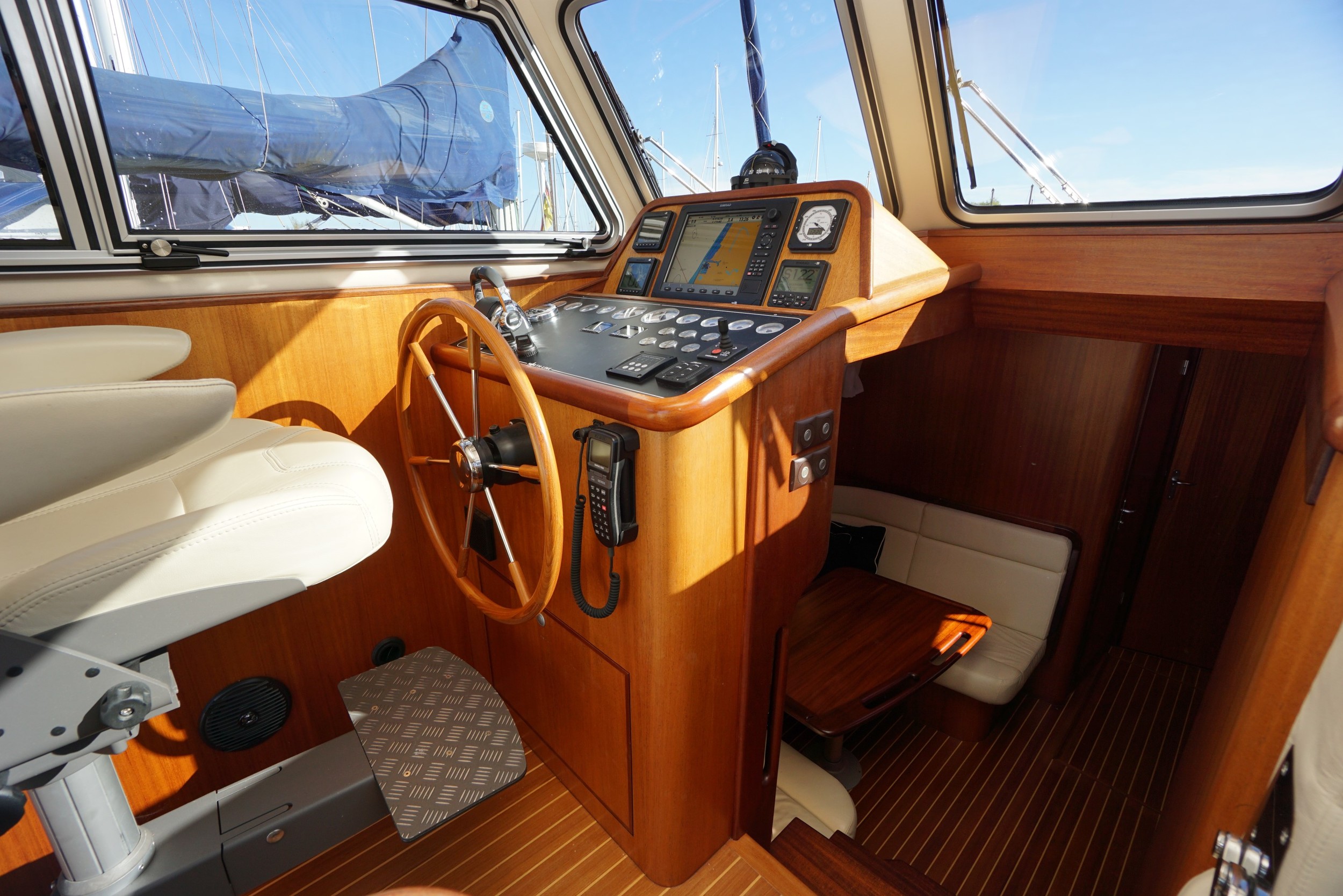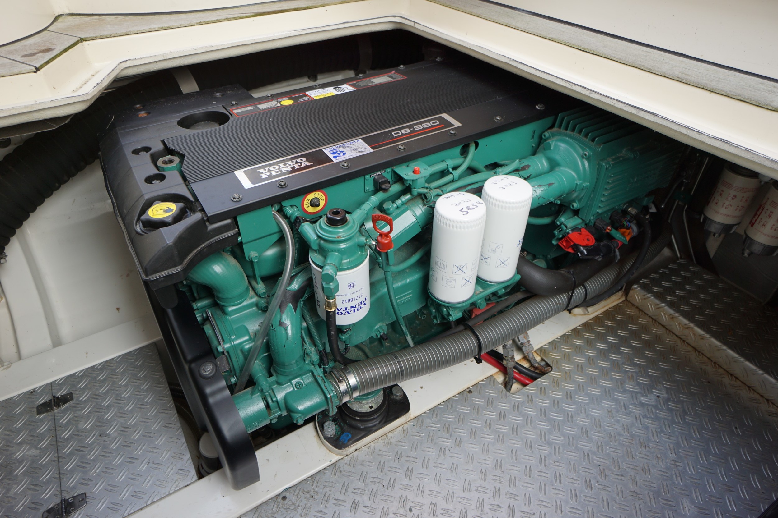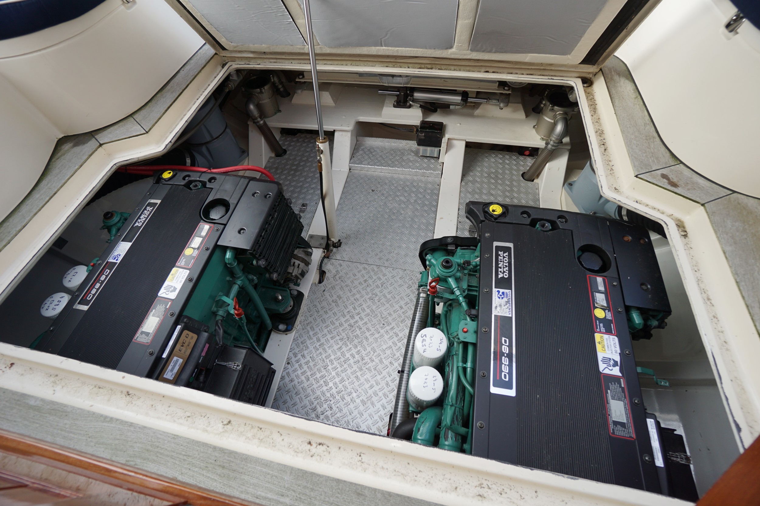 Deze North-Line is voorzien van twee sterke Volvo Penta D6-330 motoren (ca. 645 draaiuren), boegschroef, radar, stuurautomaat, twee dubbele hutten en ga zo maar door.