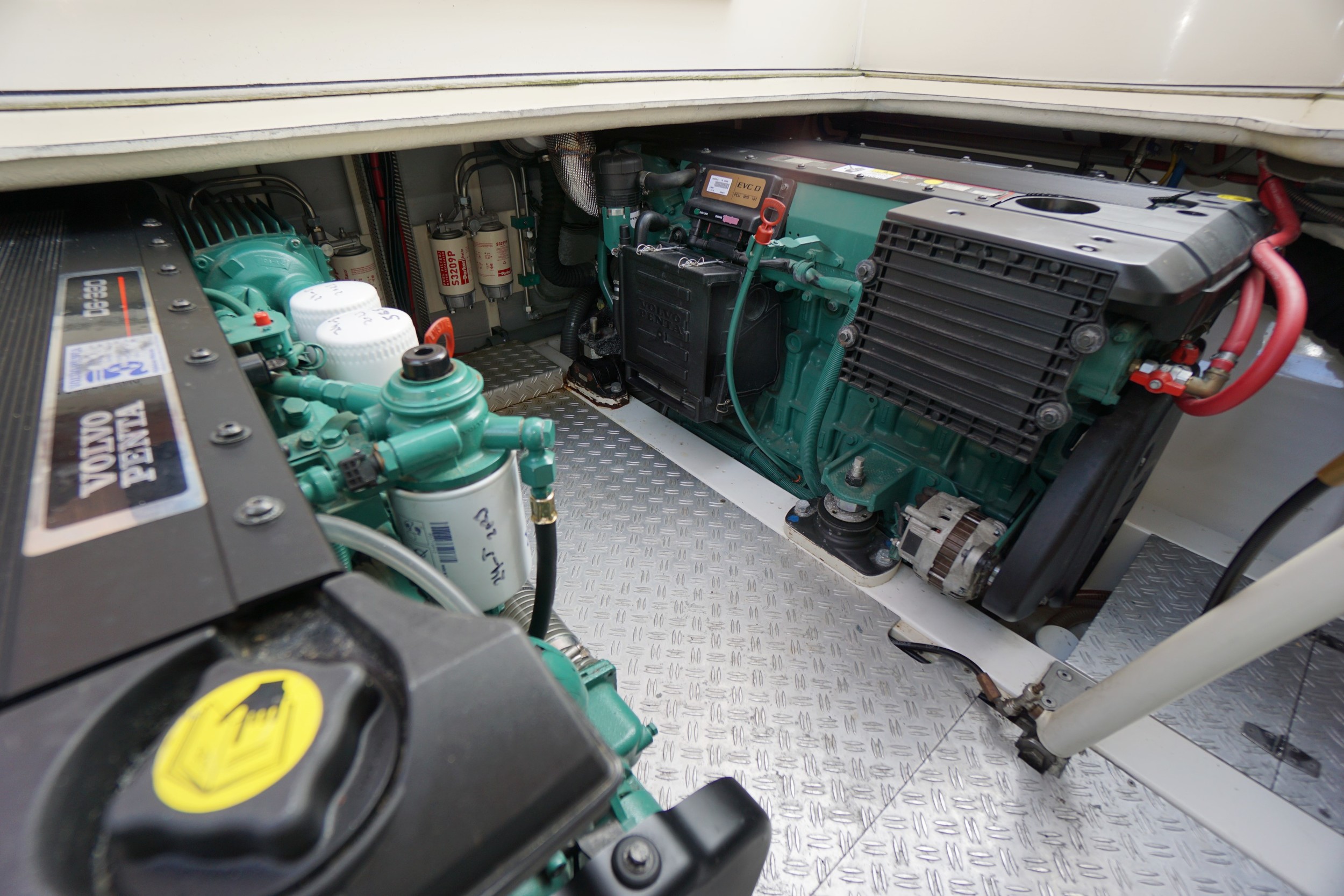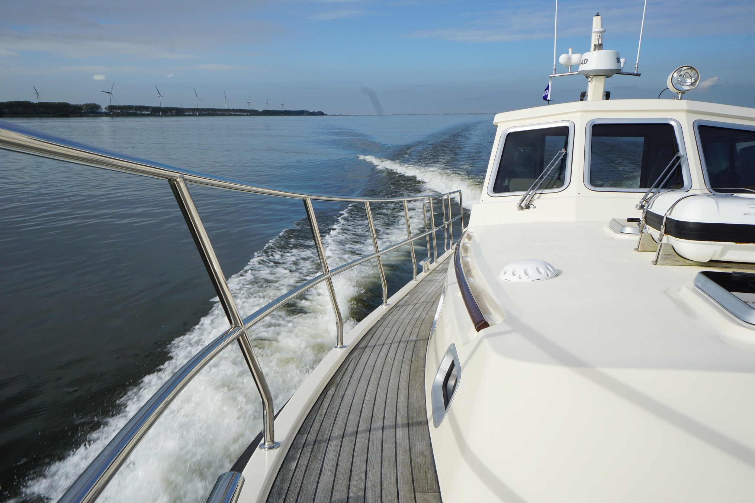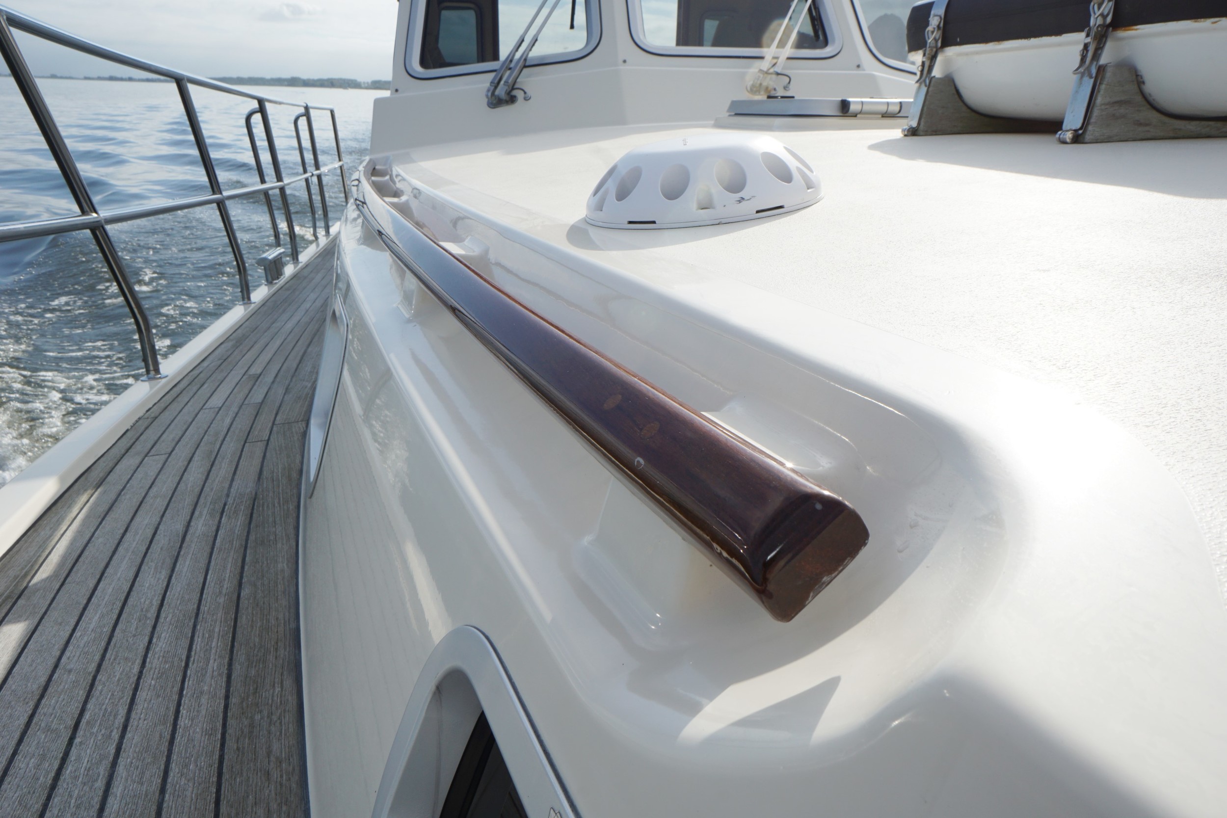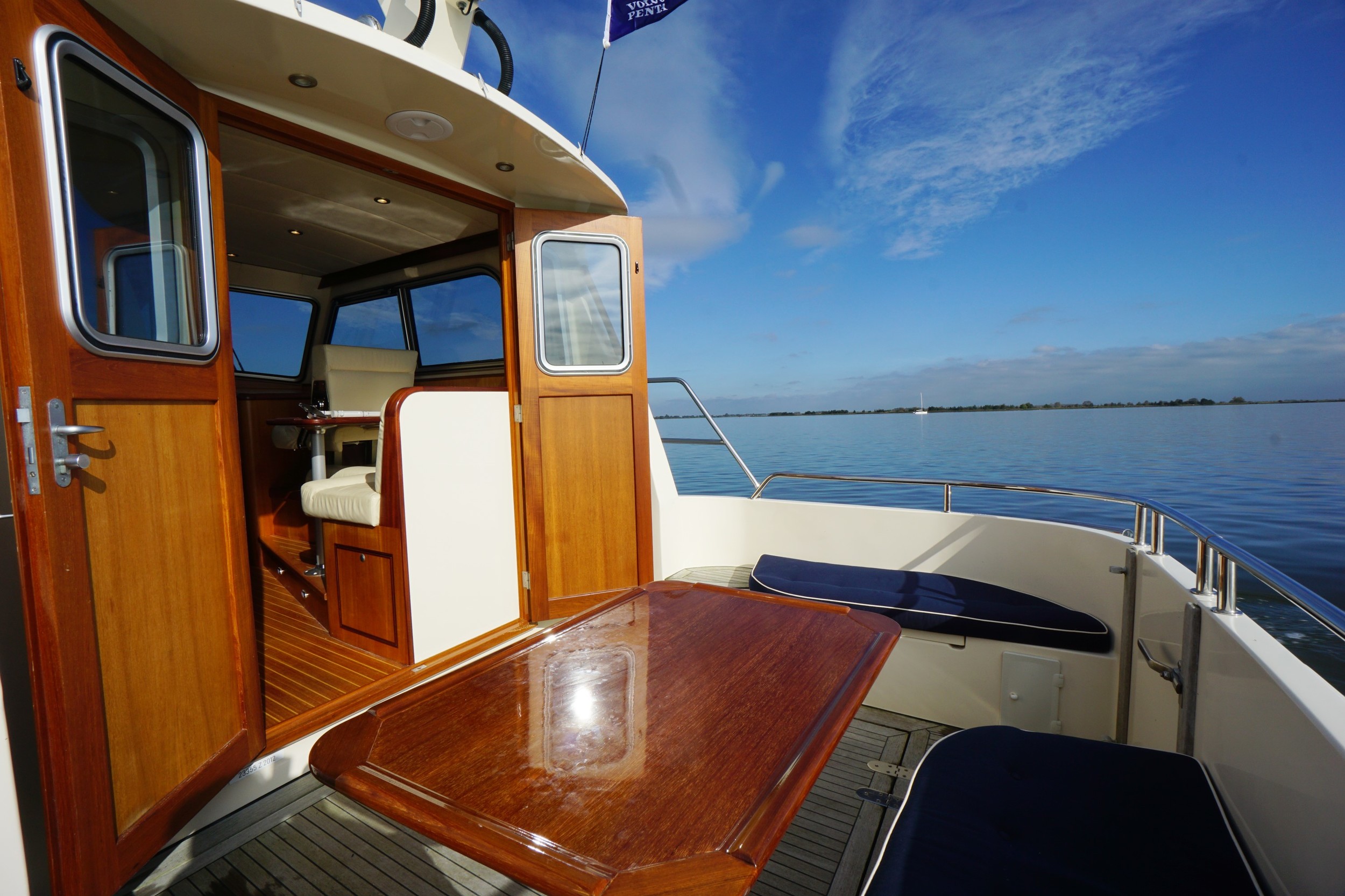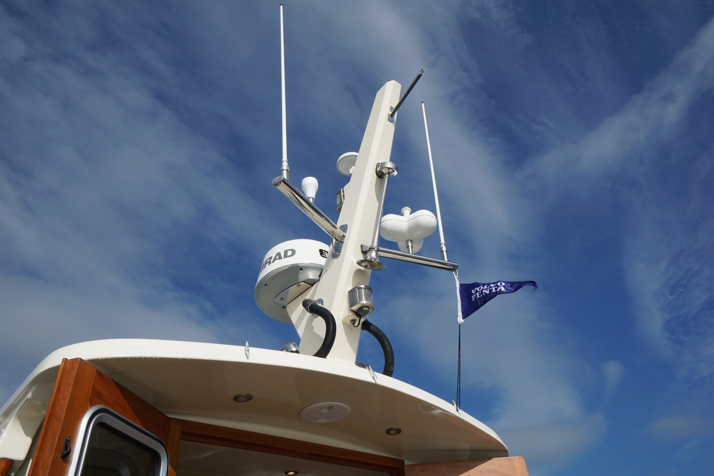 Deze North-Line is voorzien van twee sterke Volvo Penta D6-330 motoren (ca. 645 draaiuren), boegschroef, radar, stuurautomaat, twee dubbele hutten en ga zo maar door.