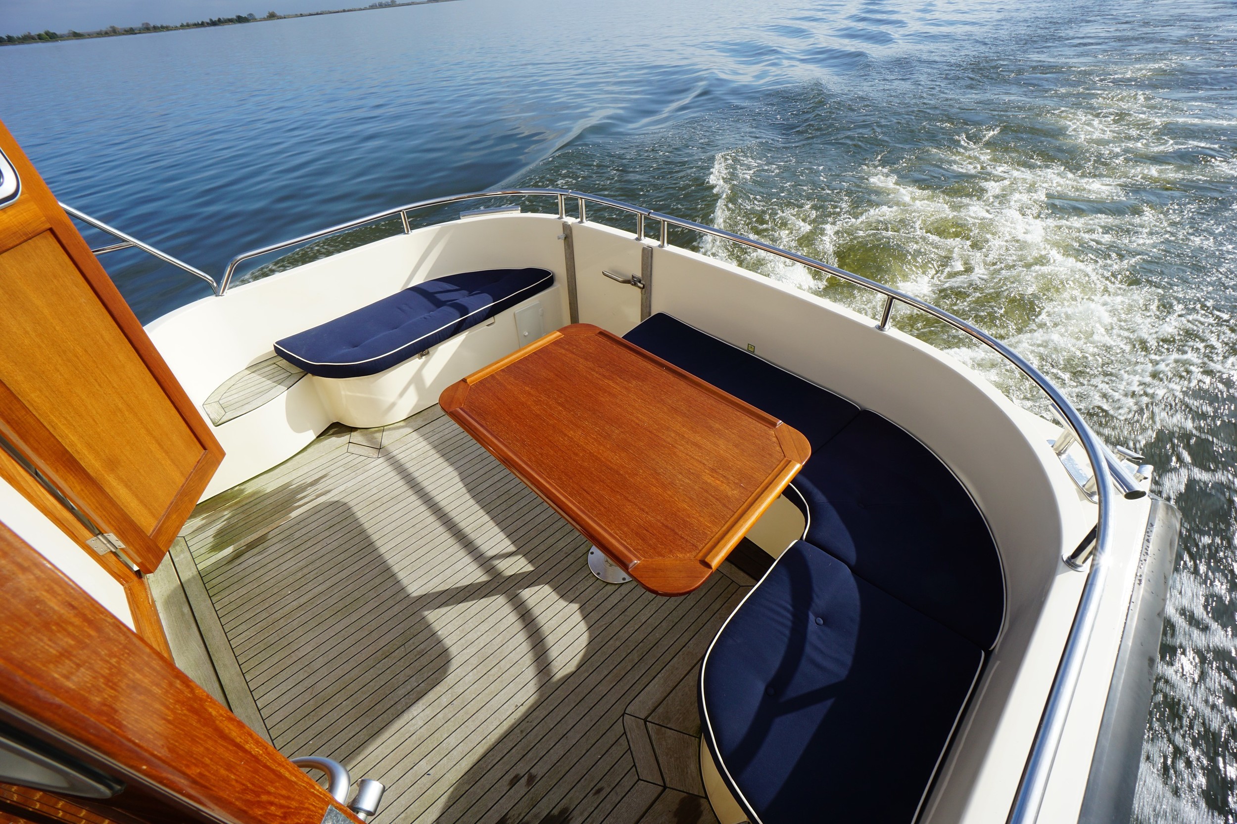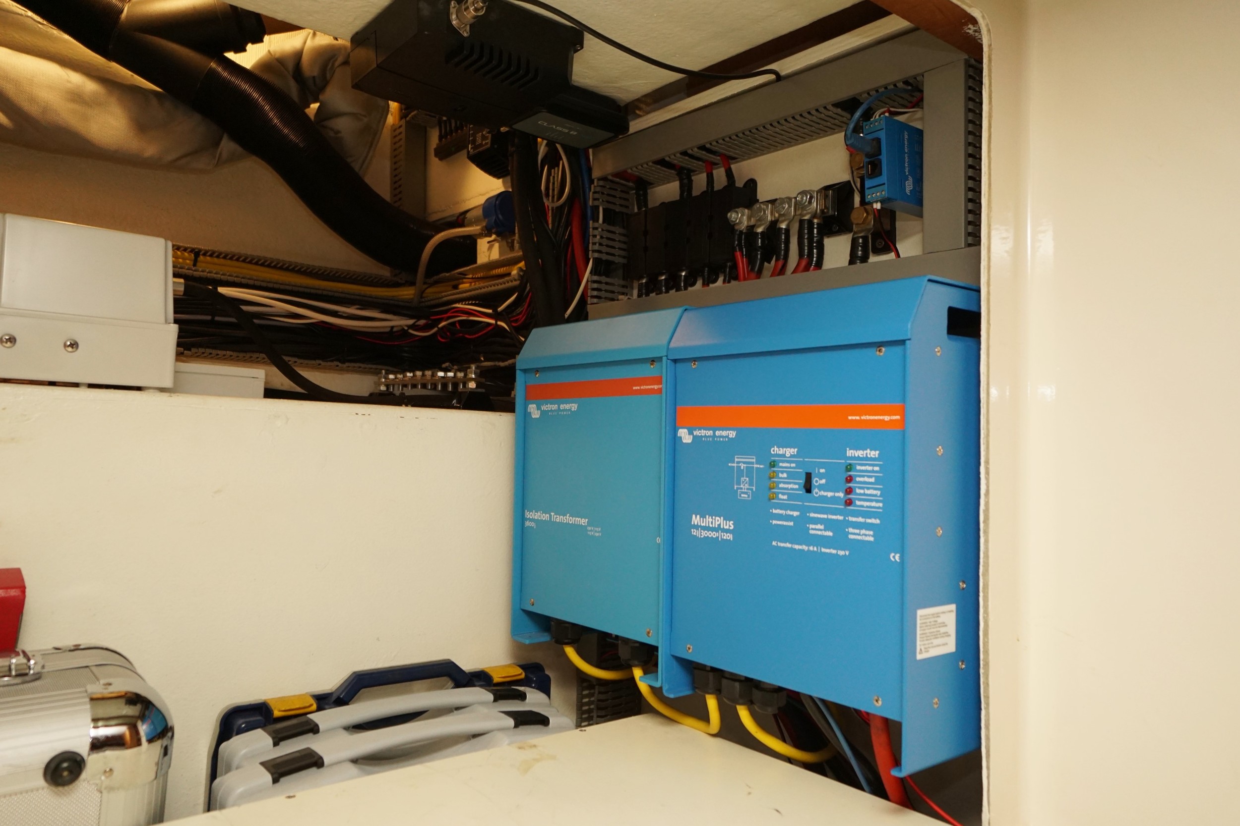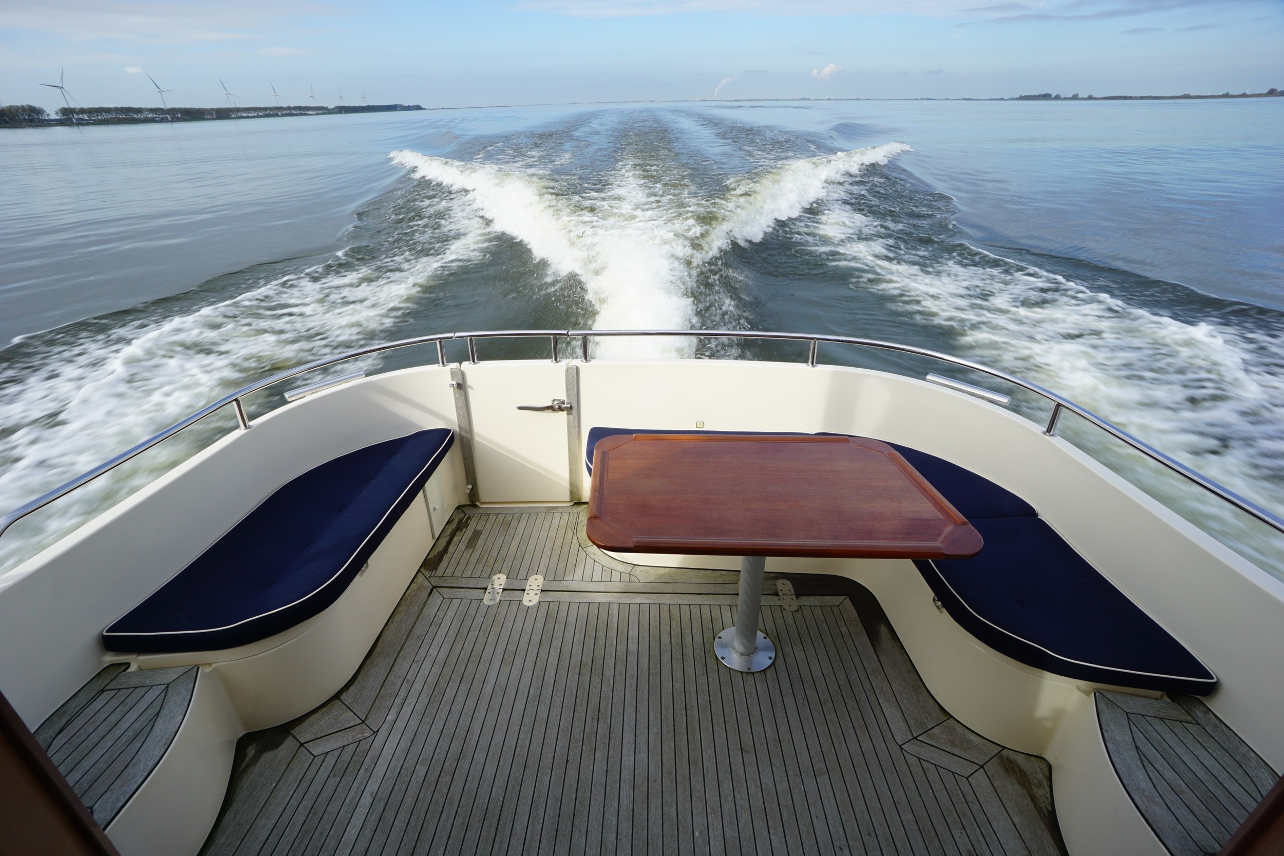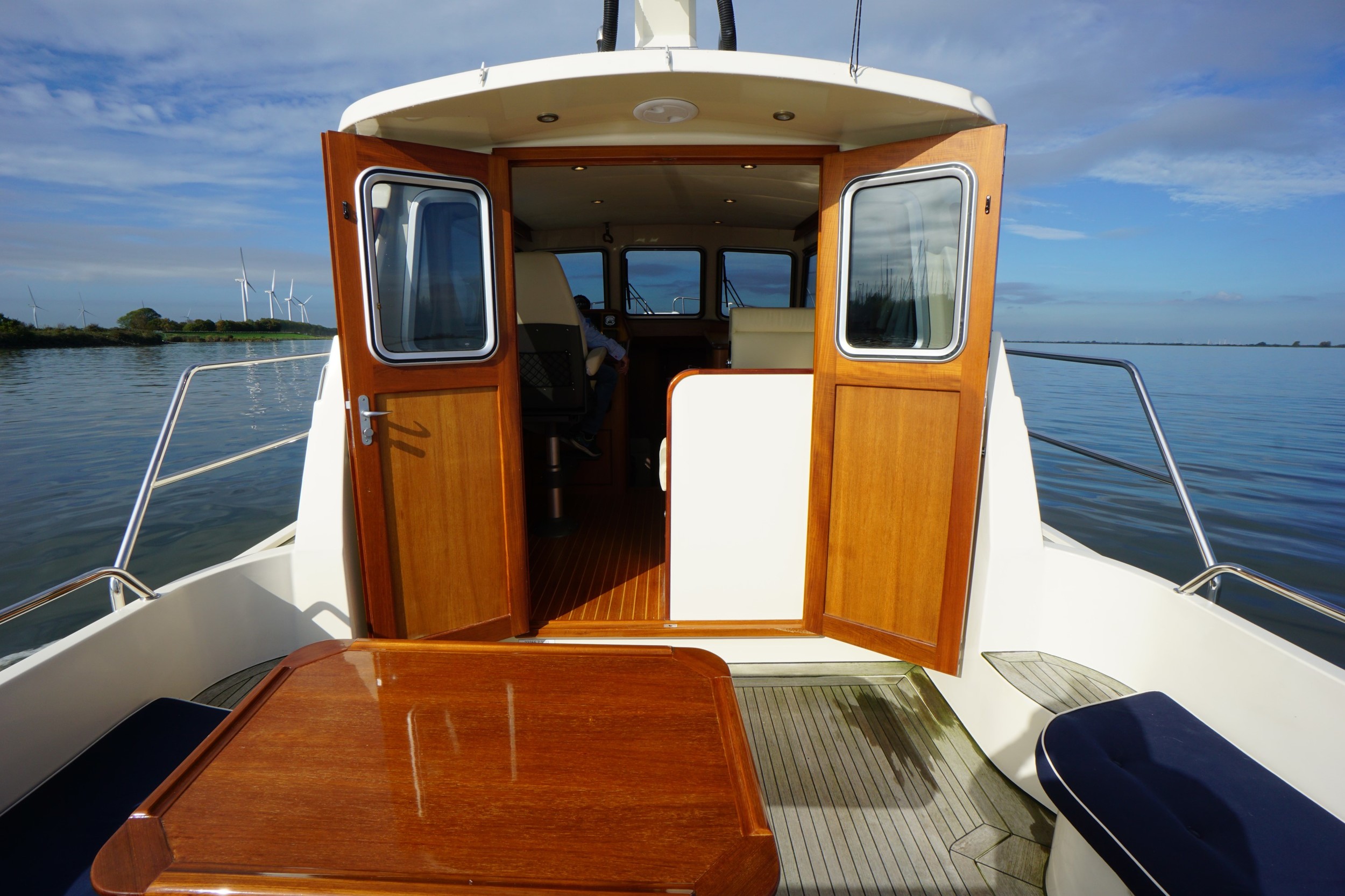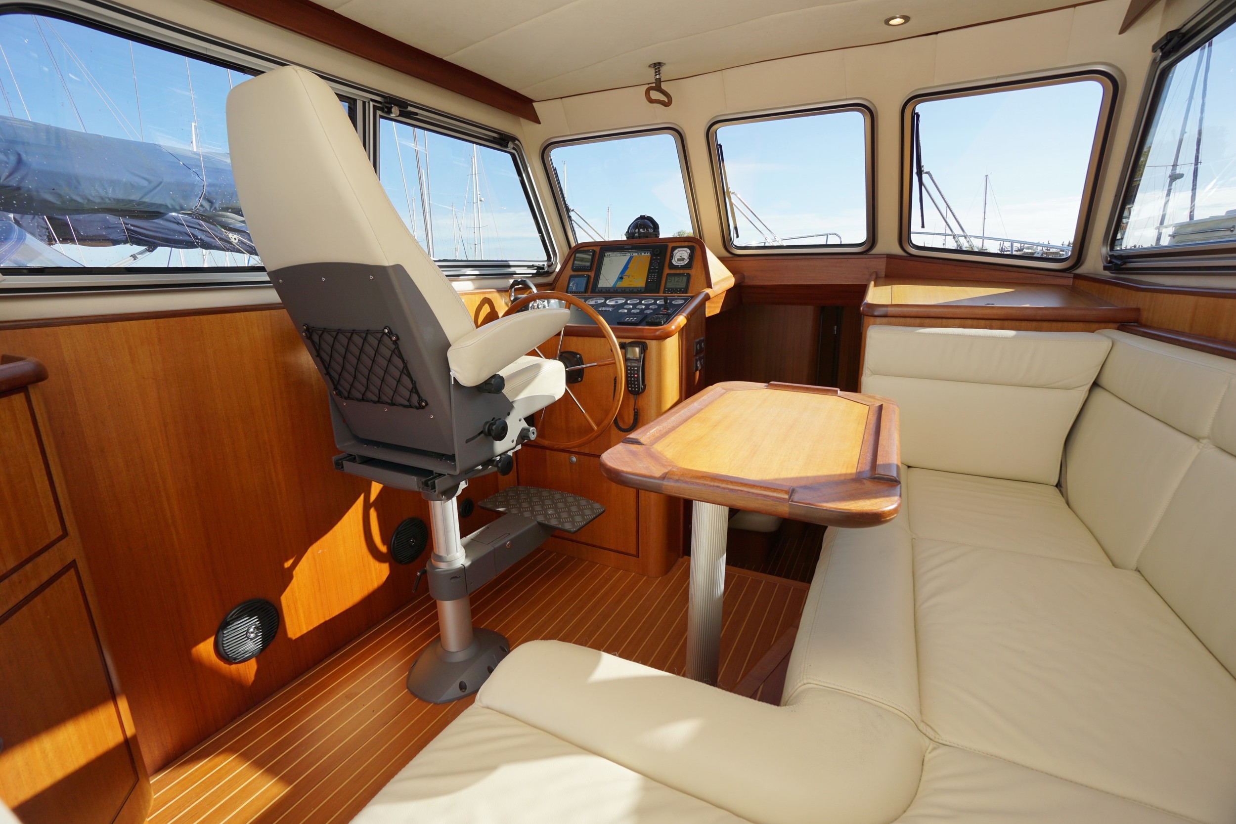 Deze North-Line is voorzien van twee sterke Volvo Penta D6-330 motoren (ca. 645 draaiuren), boegschroef, radar, stuurautomaat, twee dubbele hutten en ga zo maar door.