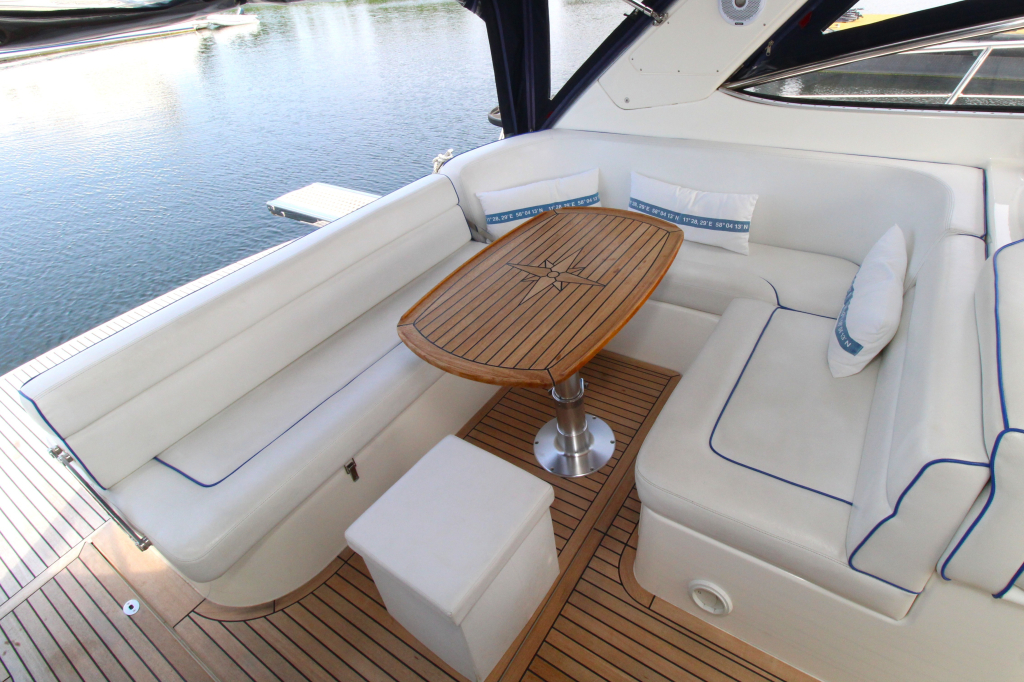 Indeling: Het interieur van de Bavaria 35 Sport heeft een slimme en ruime indeling. Binnen vindt u een gezellige salon, goed uitgeruste kombuis, twee aparte slaapkamers en een nette badkamer/toilet ruimte.