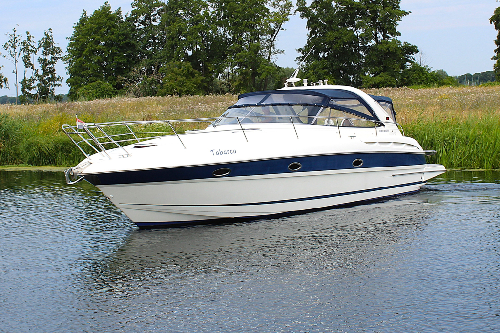 Algemeen: De Bavaria 35 Sport is een sportieve en comfortabele motorboot, perfect voor zowel dagtochten als langere verblijven op het water. Het exemplaar welke wij u aanbieden is een versie met verlengd zwemplateau en zeer goed onderhouden.