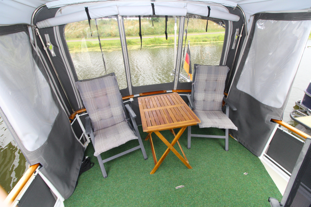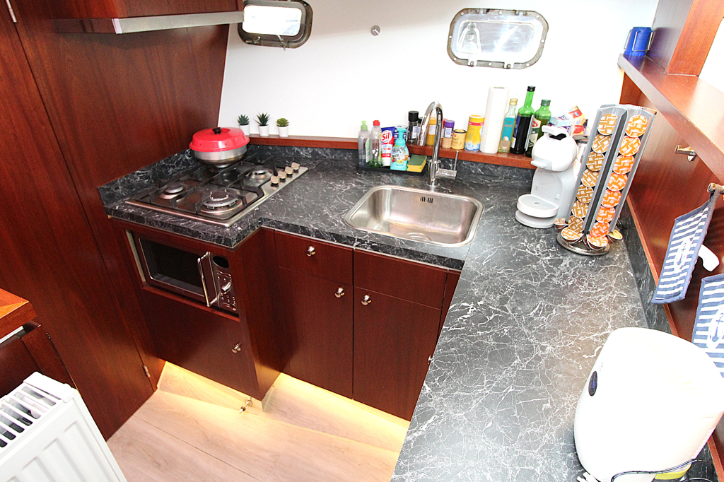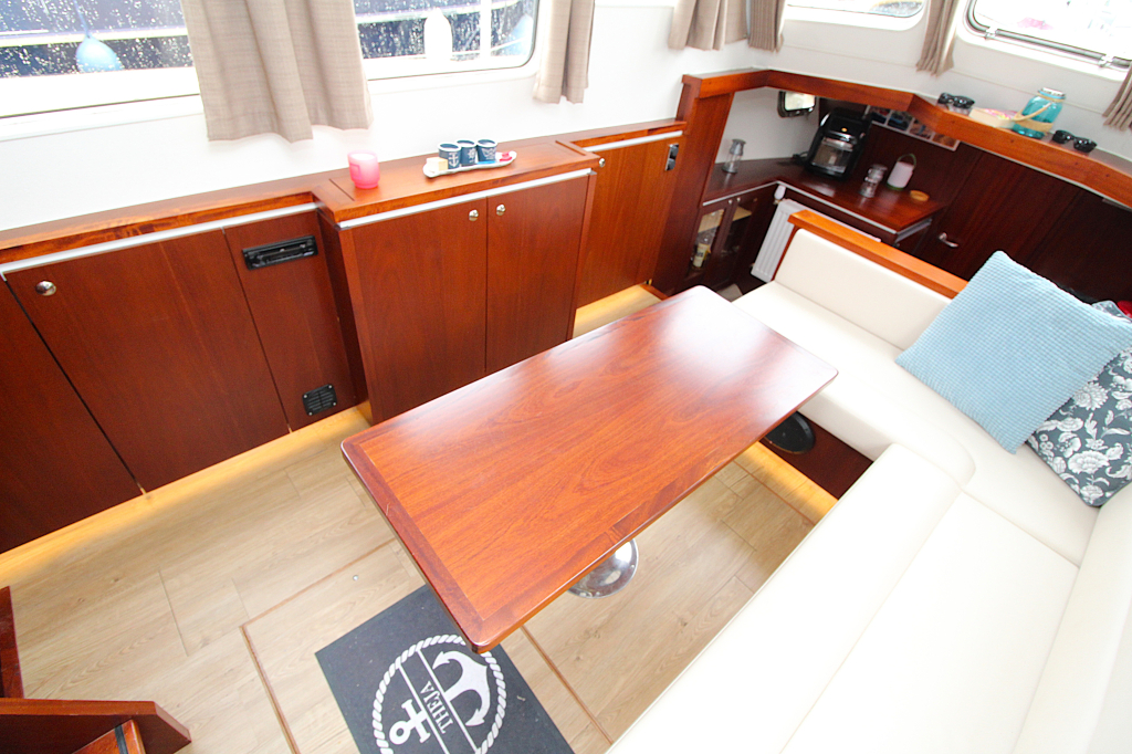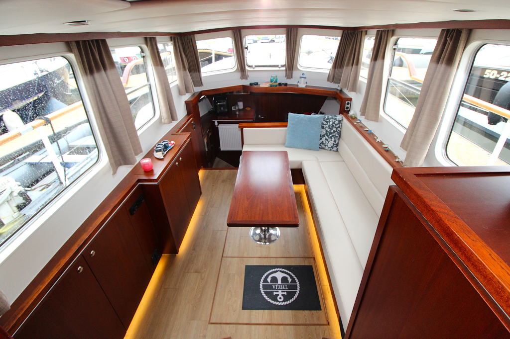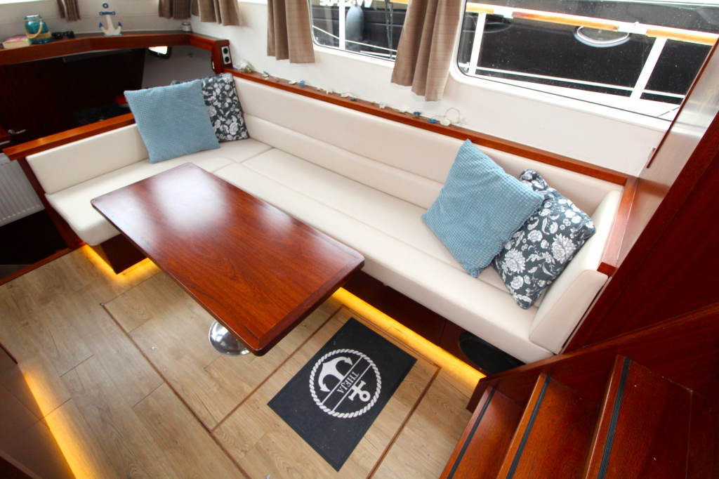 Indeling: Deze Kompier Kruiser 1200 AK beschikt over een slimme indeling met een royale achterkajuit, gezellige salon en ruime keuken. Dankzij het volledig nieuwe interieur straalt het schip luxe en frisheid uit. De indeling is ideaal voor langere verblijven aan boord.