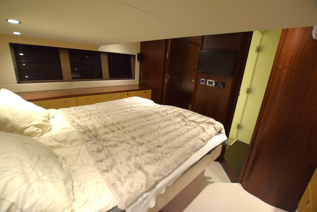 Cummins/Onan 13.5kw Generator @Inverter @Shore power + Mastervolt charger @Air conditioning with heating throughout @Eberspächer D5 diesel heater @Cockpit Wetbar with grill and sink @Hydraulic swim platform (400kg) @Electric anchor Windlass + 50m chain @Lenco trim tabs @Bow thruster with remote @Garmin 8012 12" chartplotter @Garmin 6kw radar @Garmin ST60 depth @Garmin GHP20 autopilot @Garmin VHF @40" TV in upstair lounge @22" TV in downstair lounge @22" TV in master bedroom @Fusion Apollo audio system with 7 speakers and 2 subwoofers @Ceramic cooktop @Panasonic microwave/oven combo @Dishwasher @Waeco full height fridge + Freezer @Washer/dryer combo @Spotlight Jabsco @Old English White leather sofas @Windshield defroster @Window covers @Cockpit cover (new 2022) @Bow sunbed
