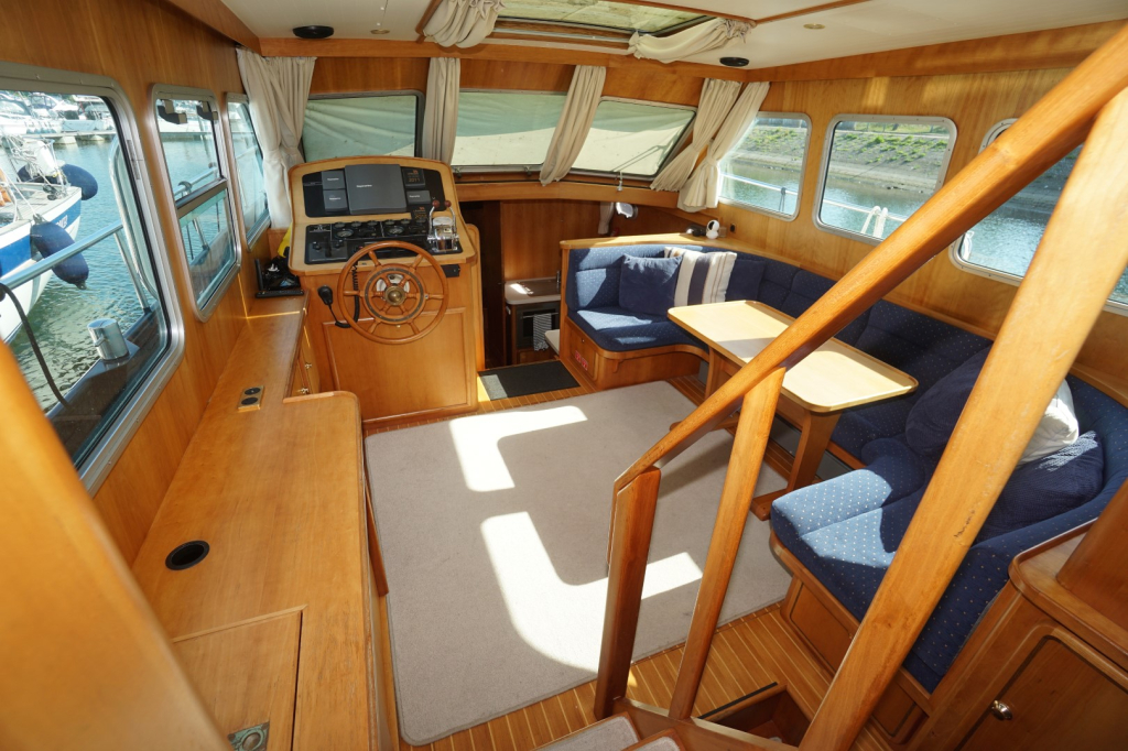 Binnenin biedt de 430 een riante leefruimte met een warme, nautische sfeer, afgewerkt met hoogwaardige materialen. De salon is licht en ruim, met grote ramen die zorgen voor een panoramisch uitzicht en een natuurlijke lichtinval. De volledig uitgeruste kombuis en comfortabele zithoek maken lange verblijven aan boord tot een waar genoegen.