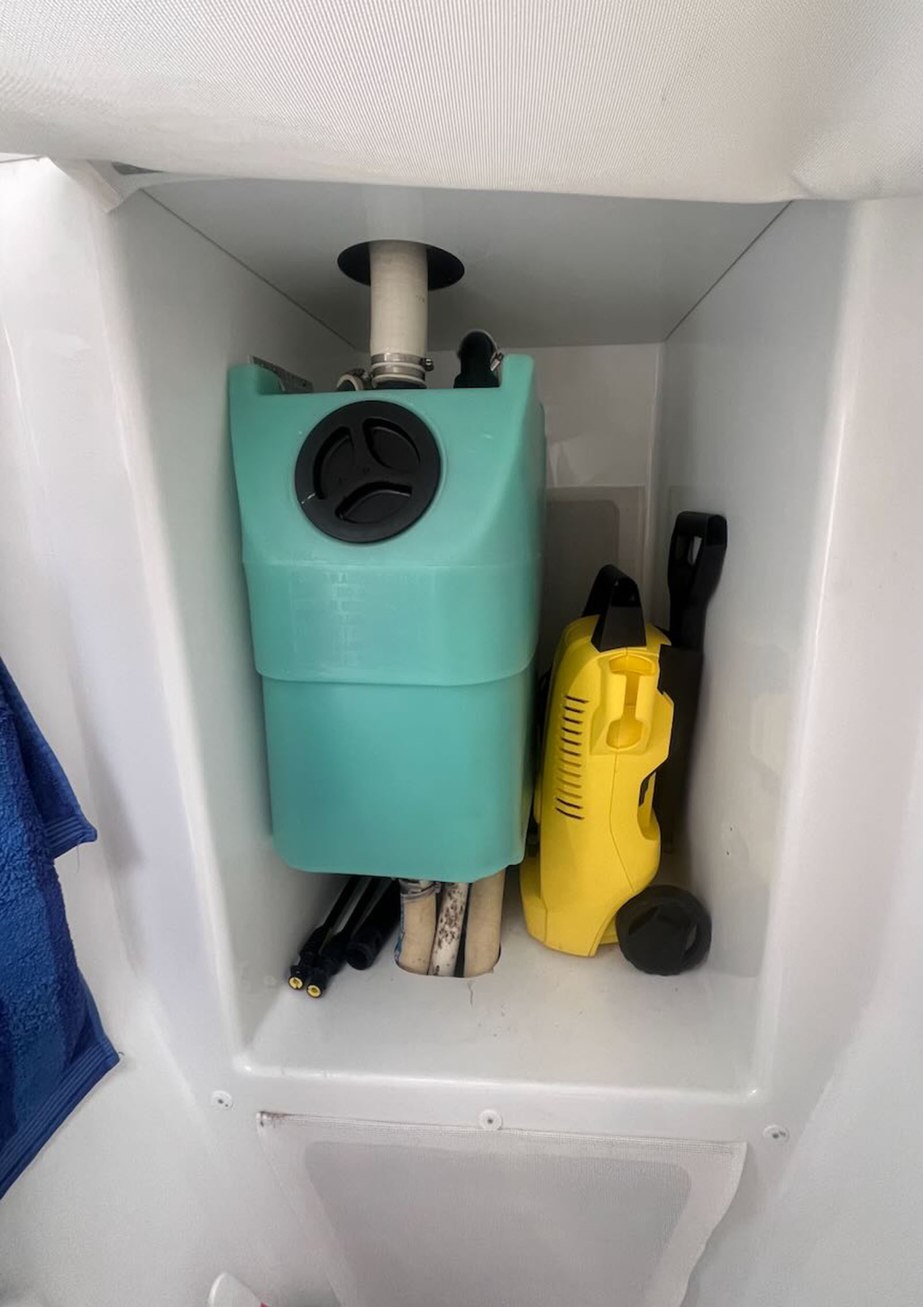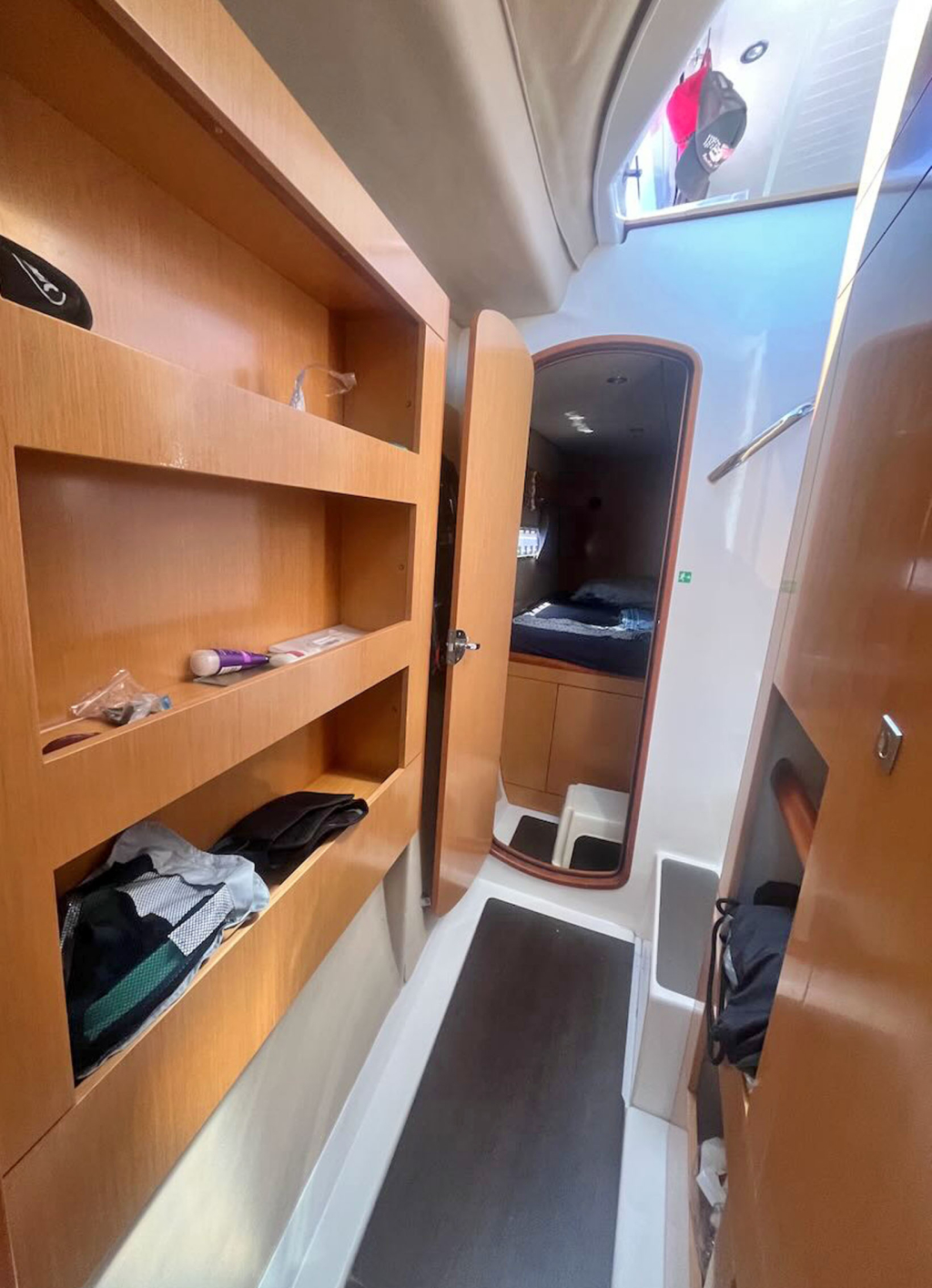 Starboard bathroom with WC and shower, port bathroom no WC, but prepared for installation