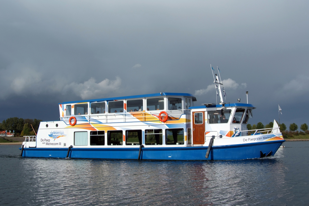 Het Passagiersschip / Partyschip welke wij u aanbieden is afkomstig van de Nederlandse werf “ P.H.Tinnemans en Zn “ uit Maasbracht. Dit schip is gecertificeerd voor 120 personen, Communautair Binnenvaartcertificaat voor Binnenschepen (CBB), zone 3 en 4, (in Nederland, Rijn, Waal, Lek). In 2019 heeft het interieur een refit ondergaan.