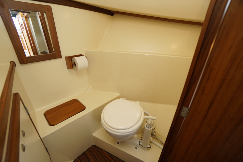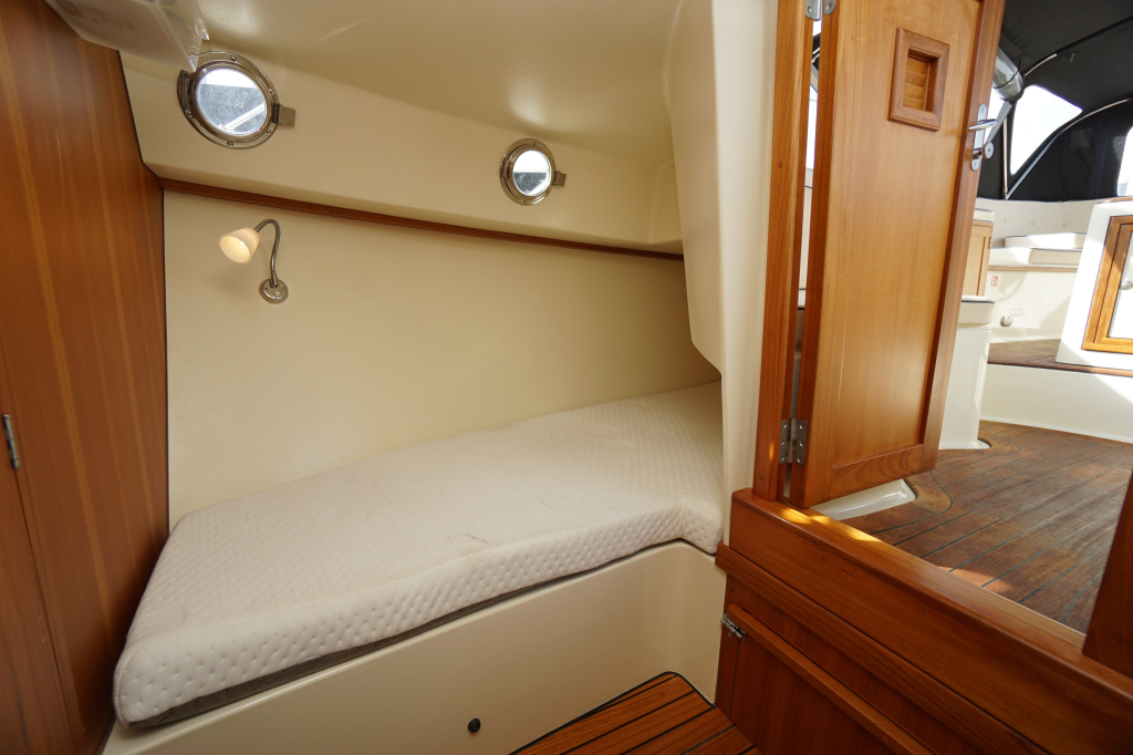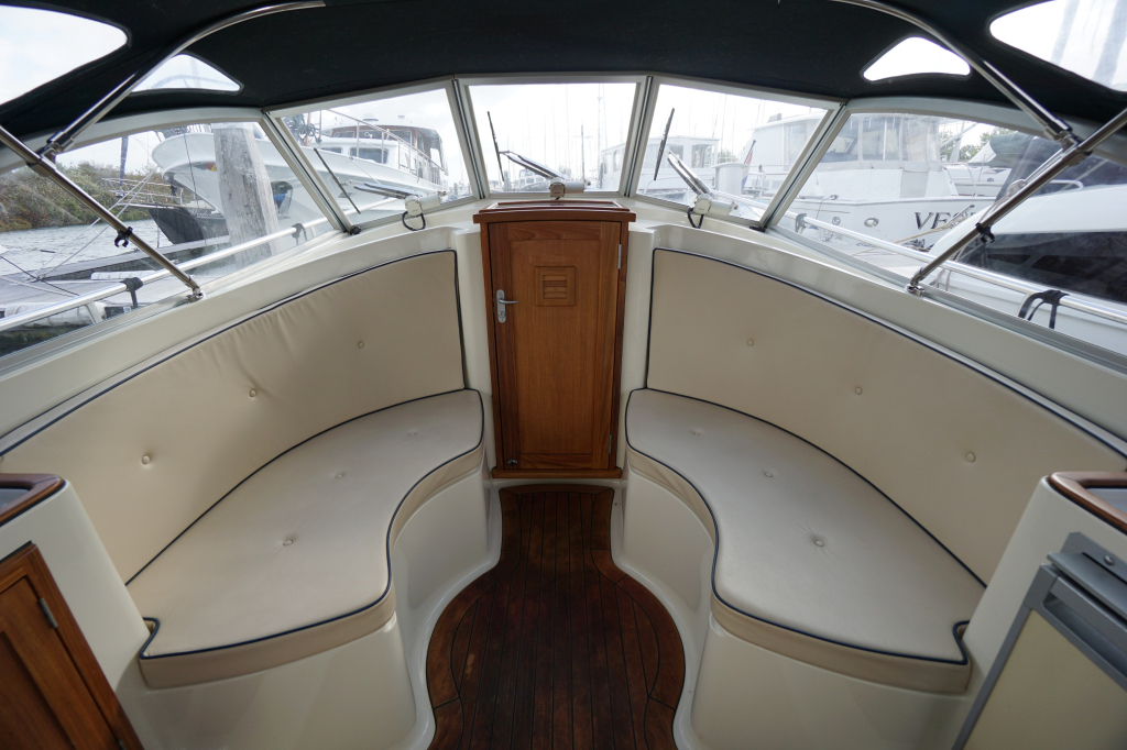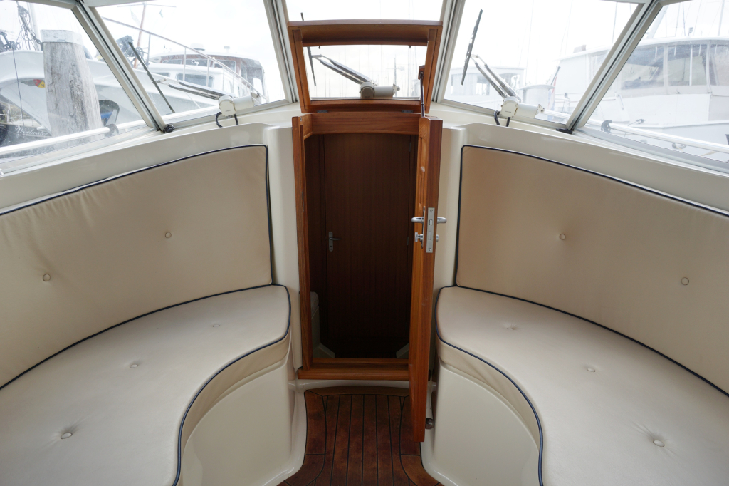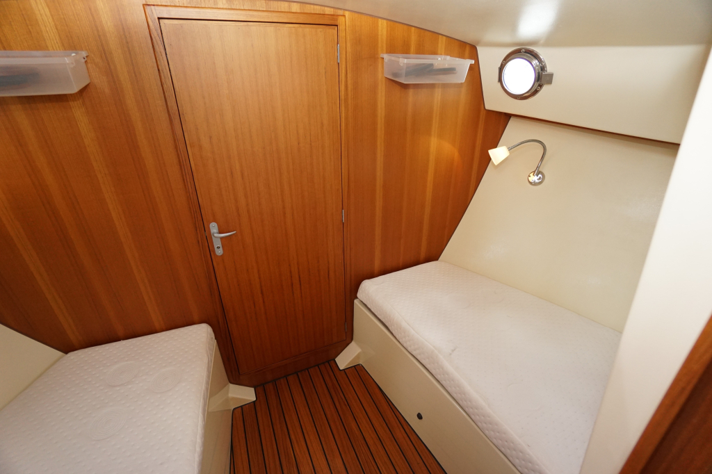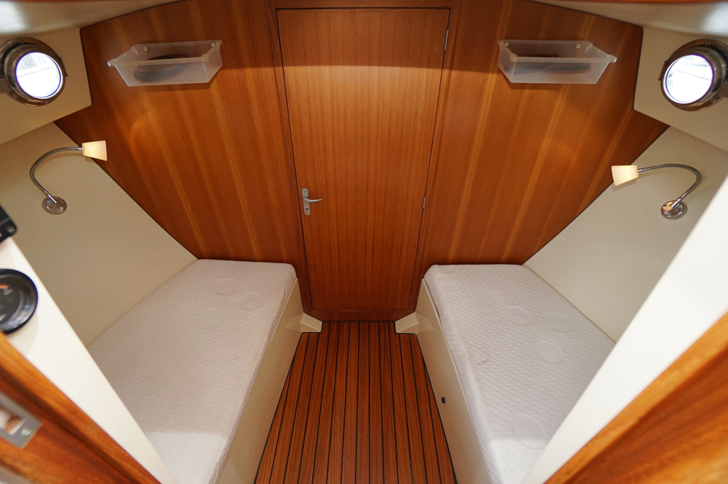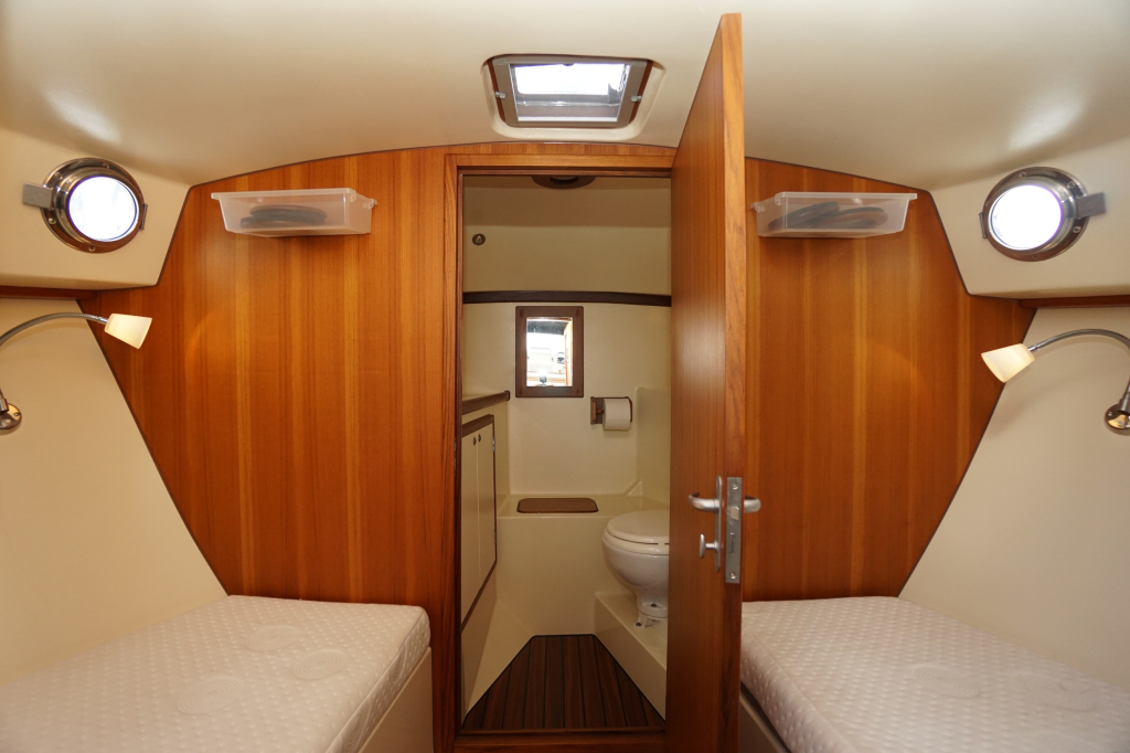 In de kuip treft u zowel achter als voor in het schip een gezellige zit, midscheeps is de "kombuis", spoelbak, kooktoestel en koelkast zijn aanwezig. In de piek van het schip treft u twee aparte bedden aan en een afgesloten toiletruimte.