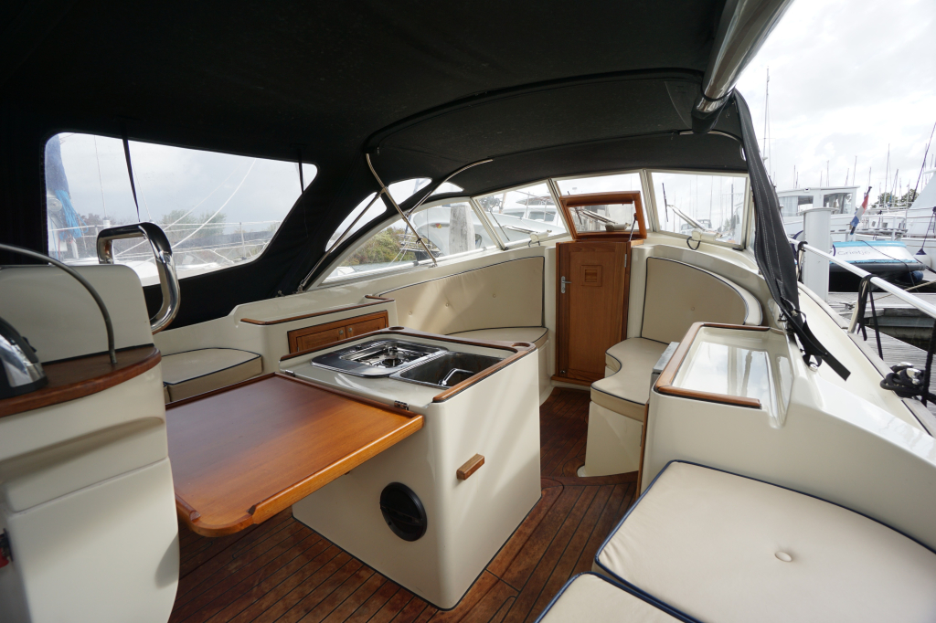 Door de lichte en grote kuiptent, de vaste slaapplaatsen, comfortabele toiletruimte, boegschroef en sterke motor is ze niet alleen ideaal voor een gezellige dag op het water, maar zijn vakanties of lange weekenden geen enkel probleem.