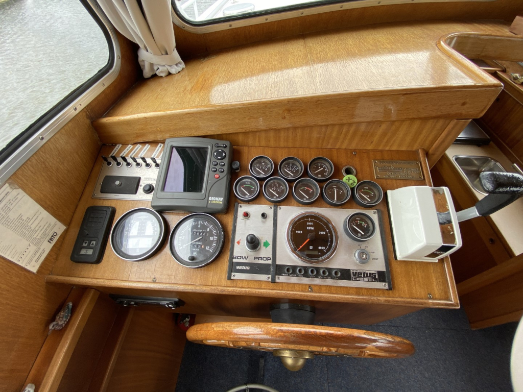 De motorisering bestaat uit een betrouwbare Vetus Peugeot dieselmotor met 62 pk, waarmee u met gemak rustige tochten maakt over binnenwateren en rivieren. En manoeuvreren in havens en sluizen wordt gemakkelijk gemaakt door de aanwezige boegschroef. Dankzij de lage doorvaarthoogte van circa 2,45 meter is het schip uitermate geschikt voor bruggenrijke vaargebieden zoals Friesland en Noord-Holland.