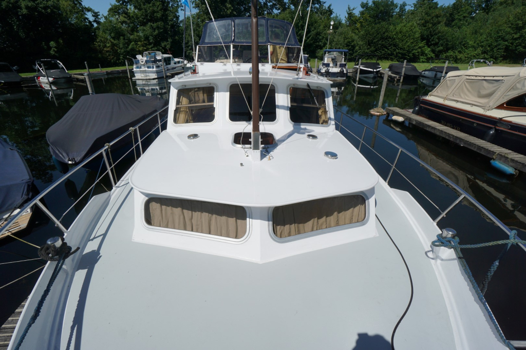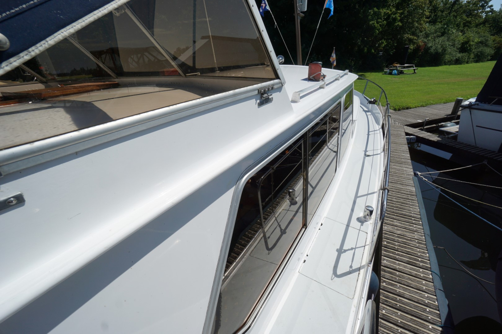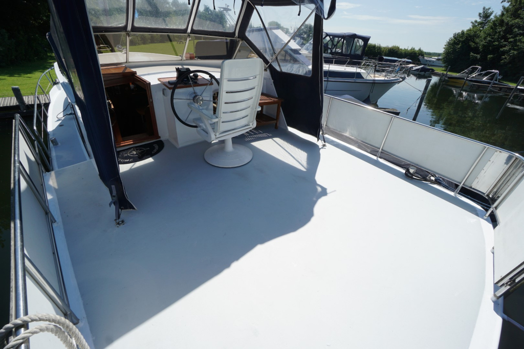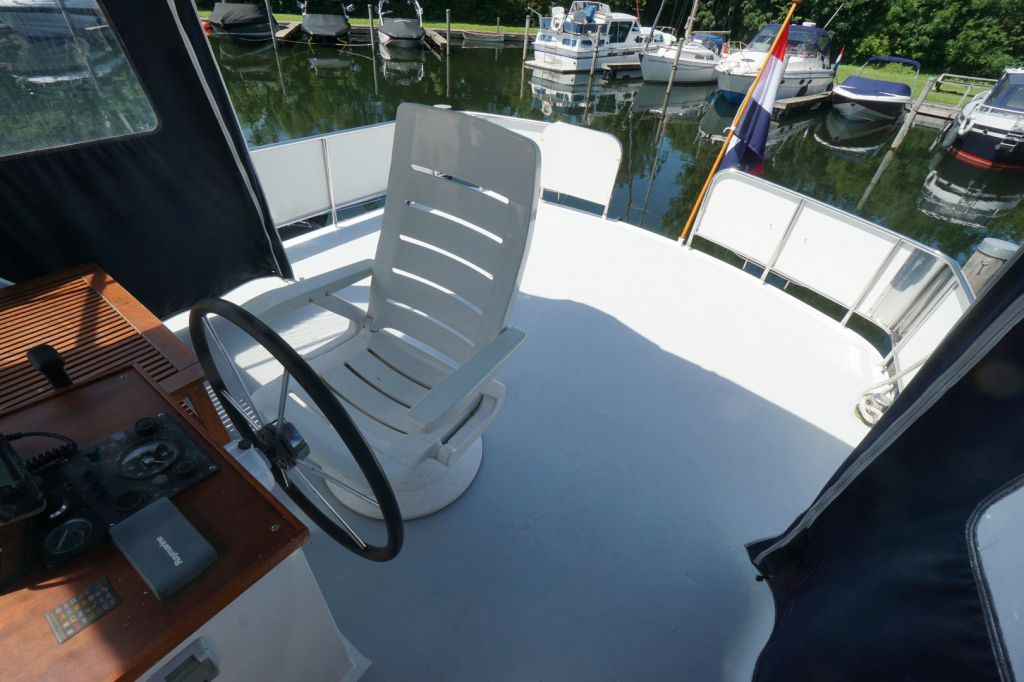 Deze Kempala Kruiser is uitgerust met een betrouwbare Volvo Penta dieselmotor die garant staat voor rustige en zuinige vaart. Besturing is mogelijk vanuit zowel de binnen- als buitenstuurstand, waardoor u bij elk weertype optimaal controle en comfort behoudt mede dankzij de aanwezige boegschroef en hekschroef. Met haar degelijke romp, goede vaareigenschappen en een lengte van 12.50 meter is deze Kempala zeer geschikt voor binnenwateren, kanalen én grotere meren.