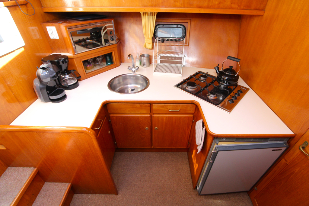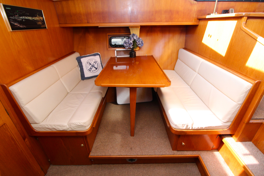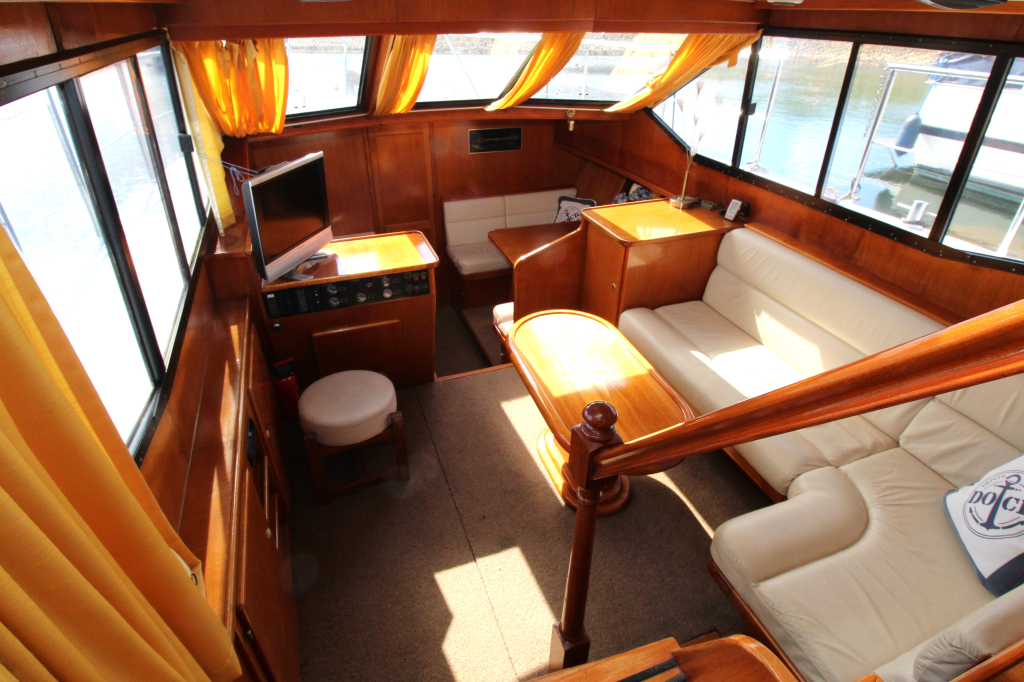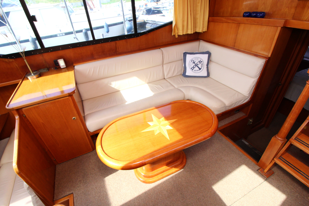 Indeling:  De Vri-Jon Contessa 37 beschikt over een ruime achterkajuit met tweepersoonsbed, een gezellige salon met veel lichtinval, een complete keuken en een voorpunt met extra slaapgelegenheid. De indeling is praktisch en ruim van opzet.