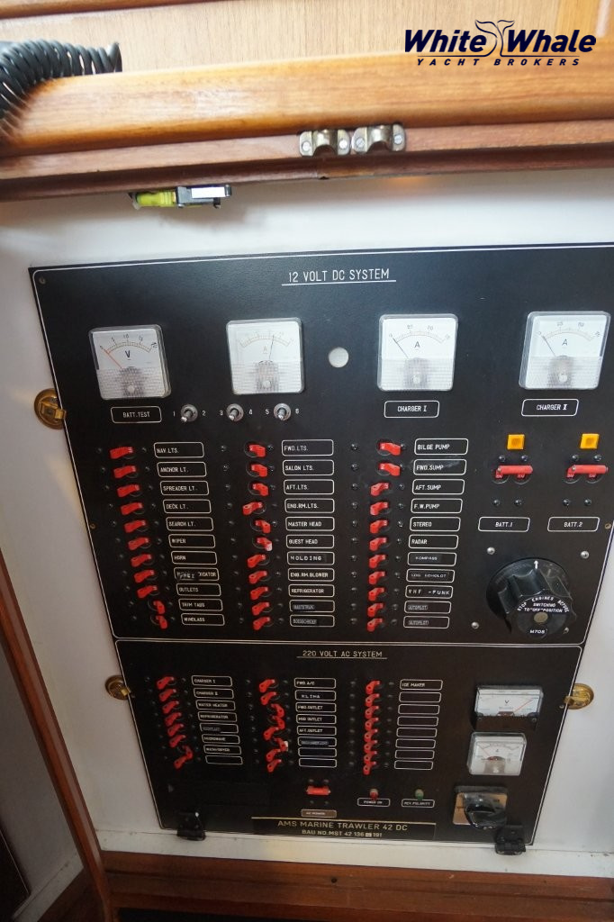 De vaareigenschappen van de AMS Marine Yachts Trawler 42 DC zijn bijzonder aangenaam. Dankzij de stabiele rompvorm en betrouwbare dubbele Caterpiller motoren motorisering vaart het jacht rustig en efficiënt, zowel op binnenwater als op ruimere wateren. De overzichtelijke stuurpositie, twee motoren en de boeg-, en hekschroef zorgen ervoor dat het schip eenvoudig te manoeuvreren is, zelfs met een kleine bemanning.