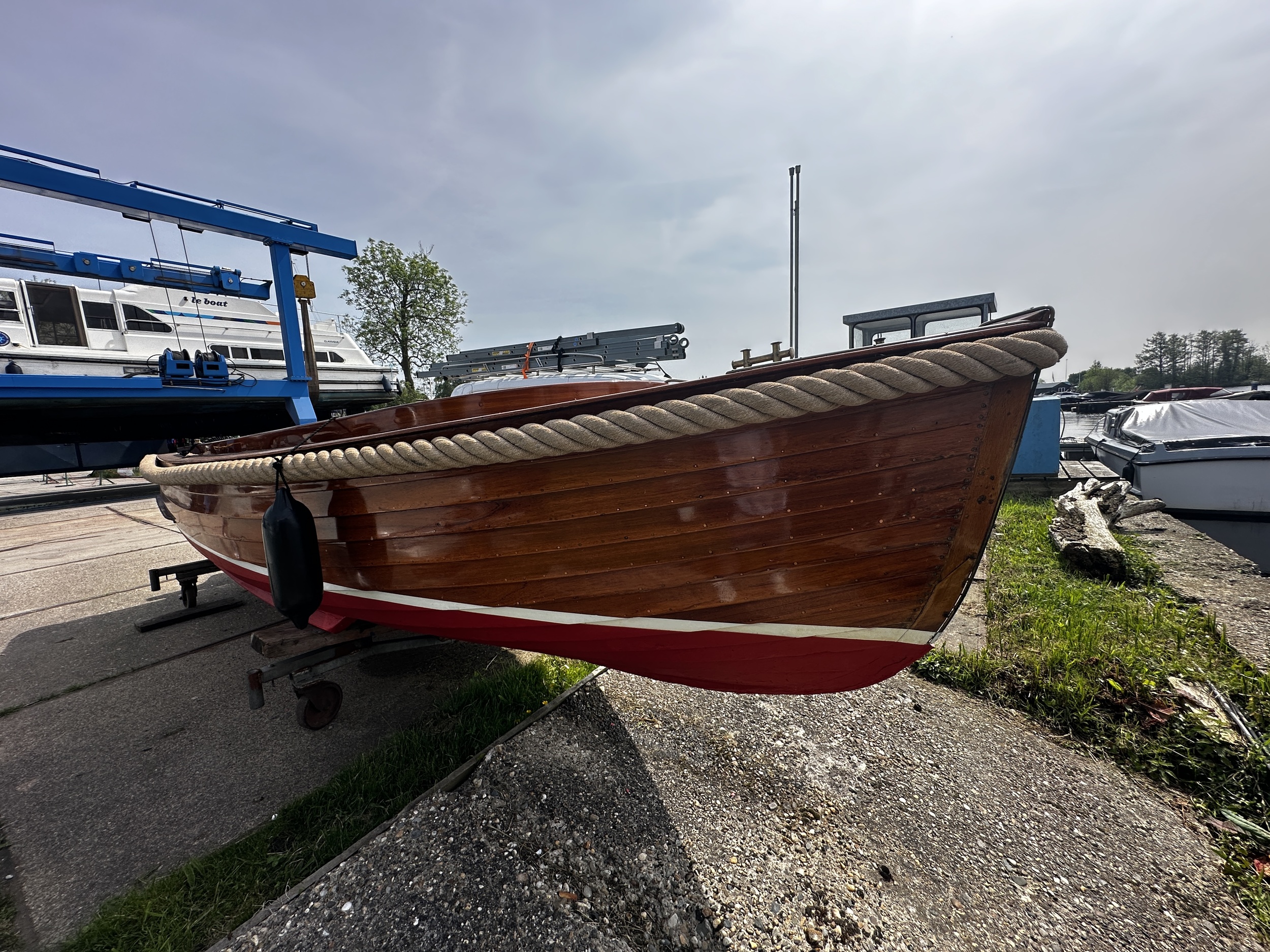 Een hele keurige strakke sloep met nieuwe kabelaring, gelakt door de werf de scheepswerf in Vinkeveen.