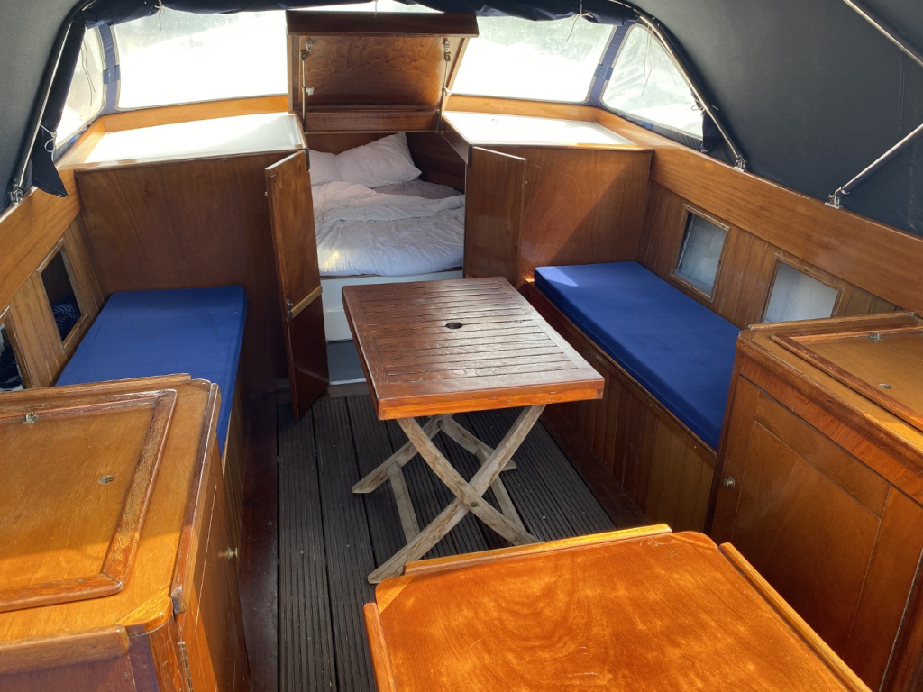Los van de fraaie uitstraling is deze sloep van nog een aantal opvallende gemakken voorzien. Uiteraard het eerder genoemde tweepersoonsbed in het voor onder met de nodige bergruimte. Maar ook een 3 pits gasfornuis, drinkwater voorziening en een koelkast. Een lekkere vakantie met deze sloep is dus geen probleem en dankzij de ruime hoeveelheid zitplaatsen is ze natuurlijk ook perfect voor een een leuke dag op het water met vrienden en familie.