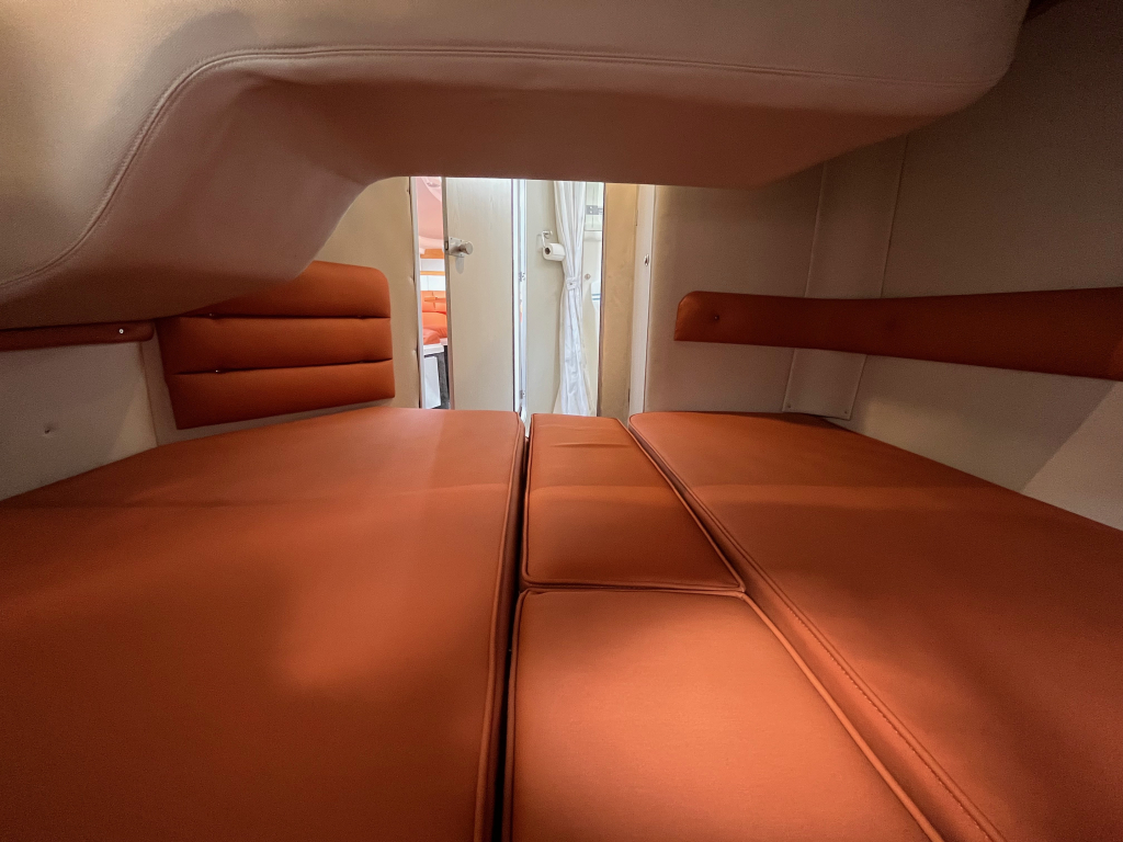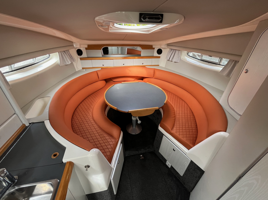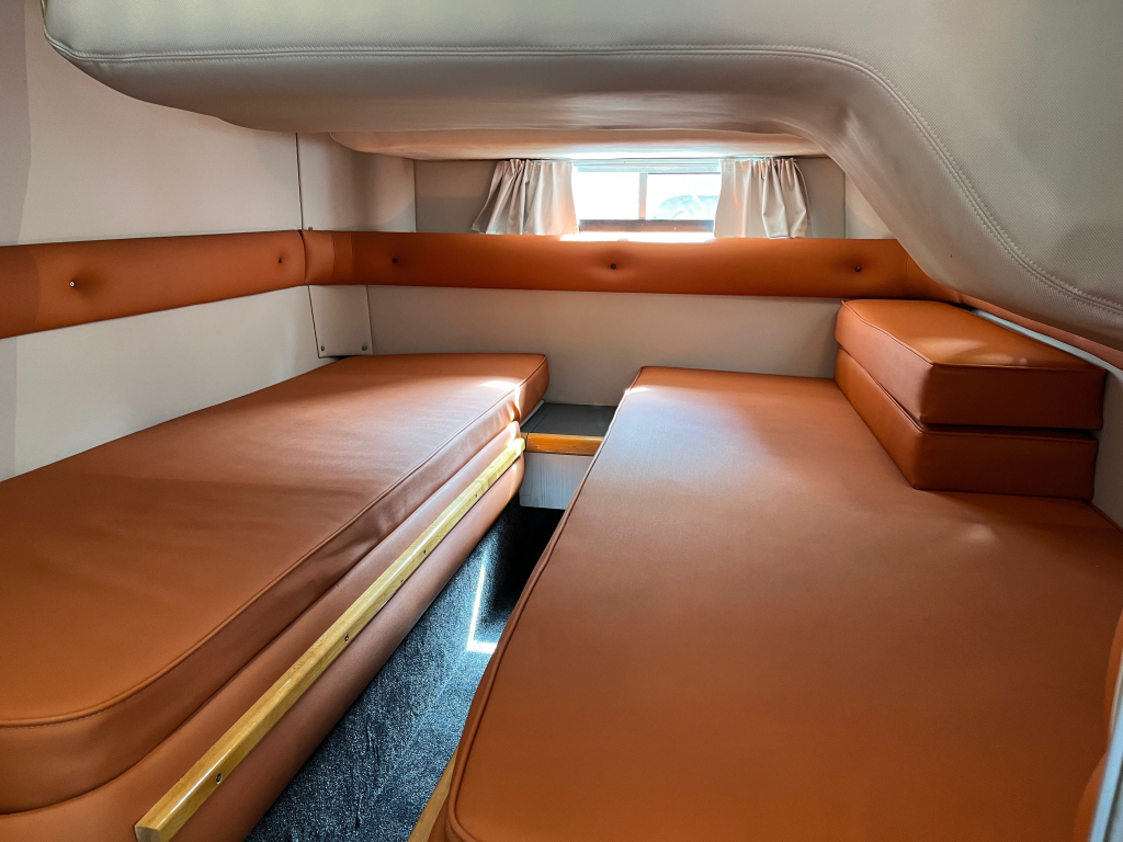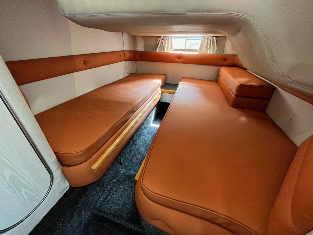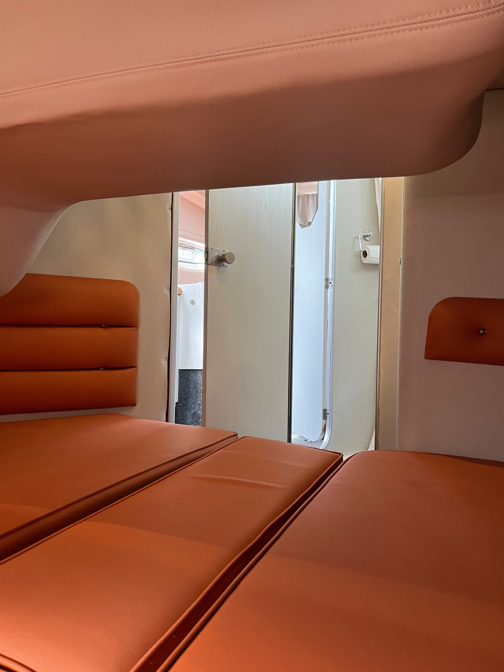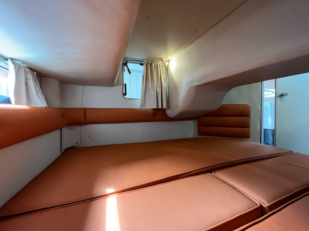 Binnen valt direct de hoogwaardige afwerking op. Het interieur is vernieuwd met luxe autoleer, dubbel gestikt, nieuwe wand- en plafondbekleding en nauwelijks gebruikte matrassen. LED-verlichting, extra 12V- en 220V-aansluitingen, nieuwe oven, mengkranen en praktische opbergruimte maken het geheel compleet. Het elektrische toilet en de Vetus 22L boiler zorgen voor extra comfort aan boord.