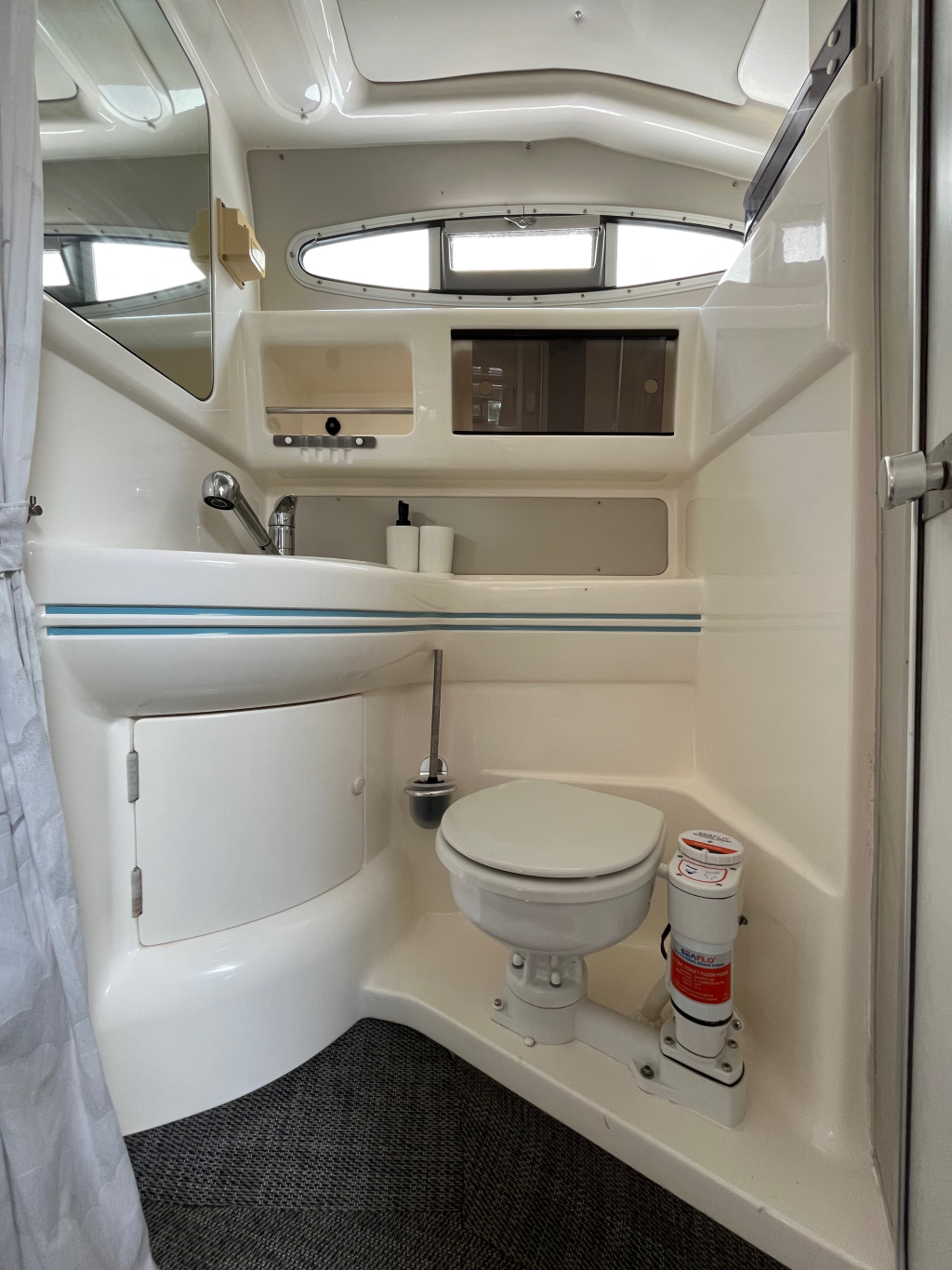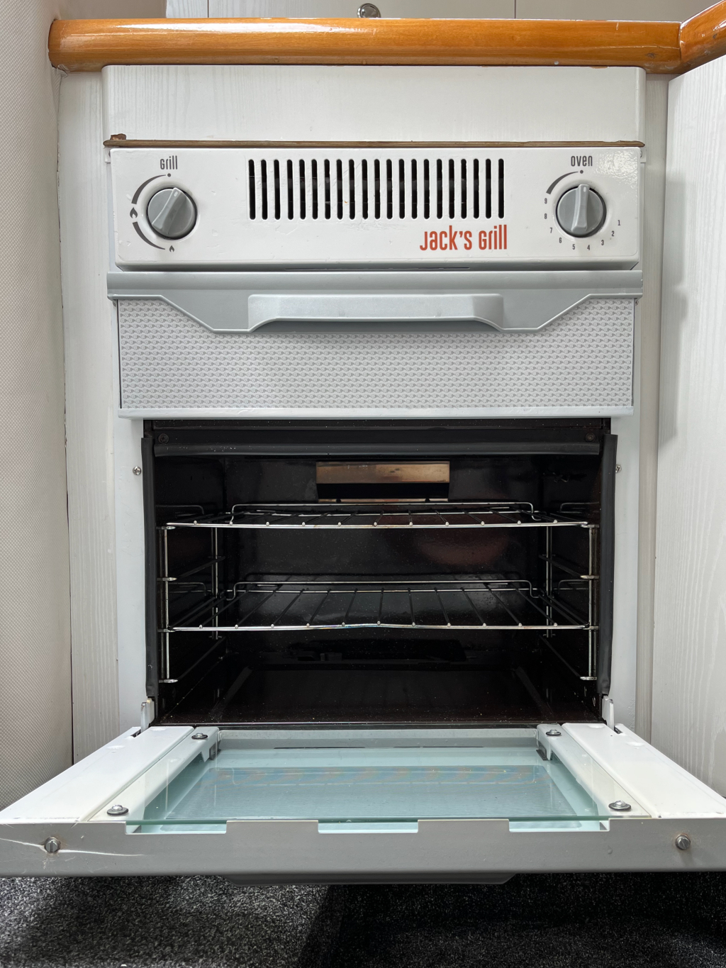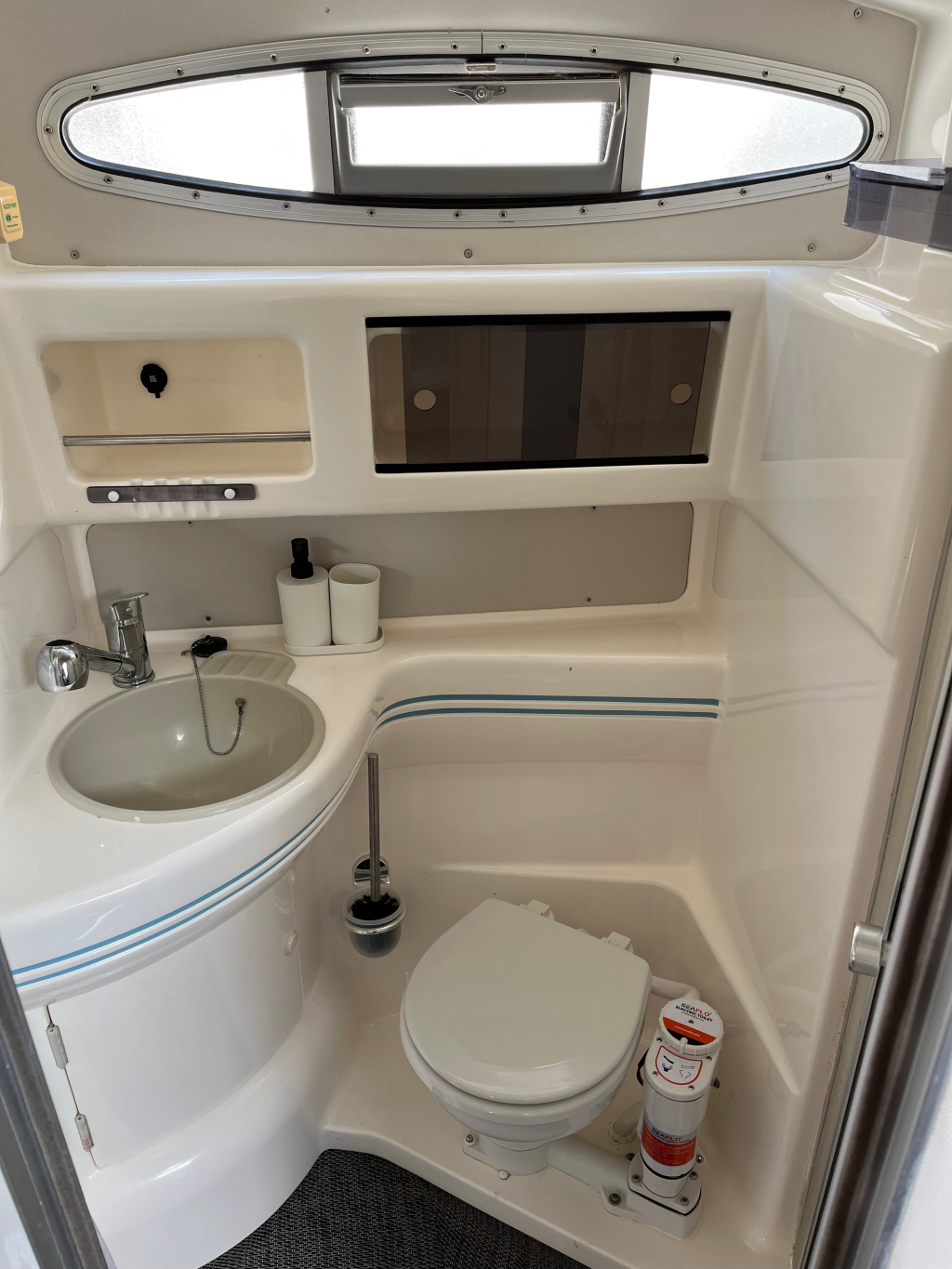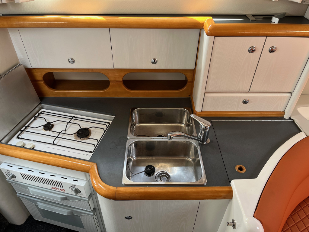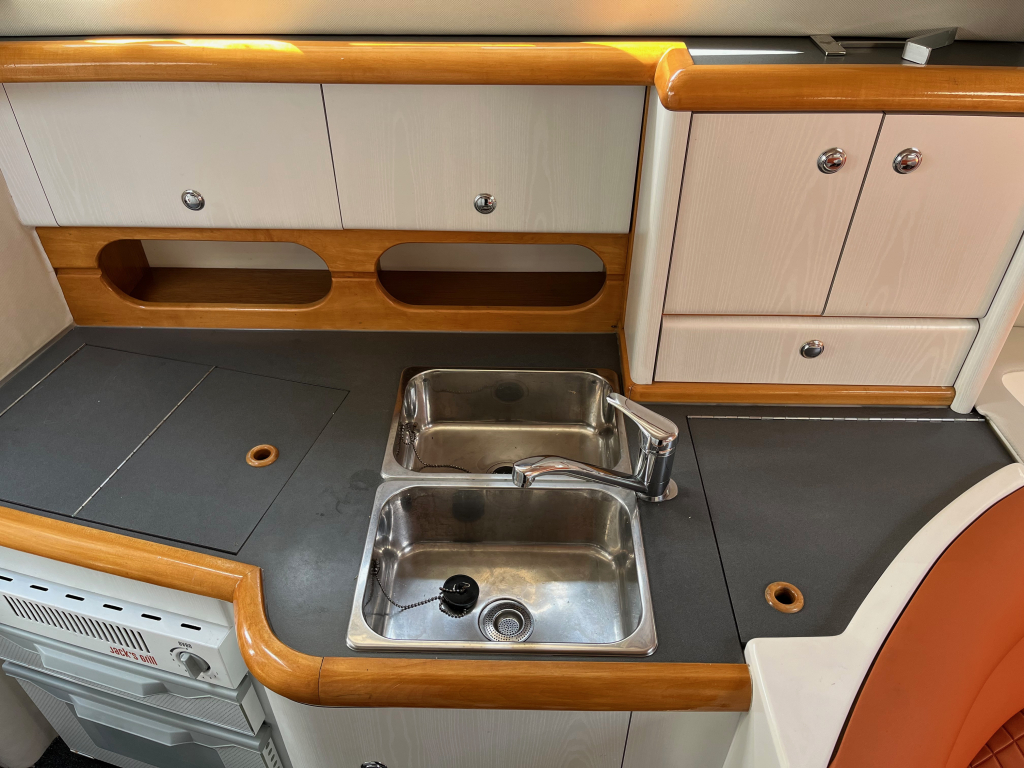 Binnen valt direct de hoogwaardige afwerking op. Het interieur is vernieuwd met luxe autoleer, dubbel gestikt, nieuwe wand- en plafondbekleding en nauwelijks gebruikte matrassen. LED-verlichting, extra 12V- en 220V-aansluitingen, nieuwe oven, mengkranen en praktische opbergruimte maken het geheel compleet. Het elektrische toilet en de Vetus 22L boiler zorgen voor extra comfort aan boord.