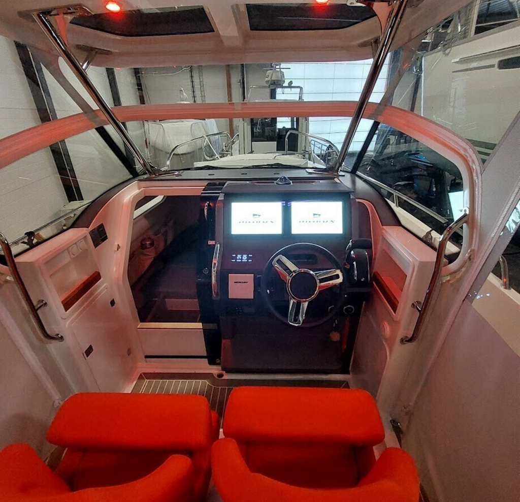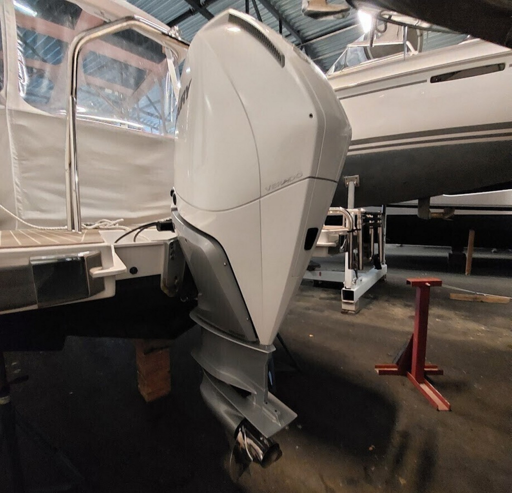 This example is very slightly used and spent all winters in heated garage. Engine is Mercury Verado V8 300hp with less than 60 hours!