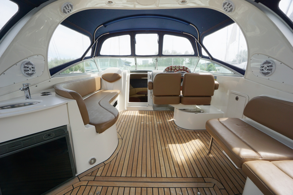 Dit schip is o.a. voorzien van twee sterke motoren, boegschroef, hekschroef, generator, airconditioning, stuurautomaat, kaartplotter, teak afwerking op de vloer / zwemplateau, vervangen bekleding en go zo maar door! Kortom; veel completer kan bijna niet.