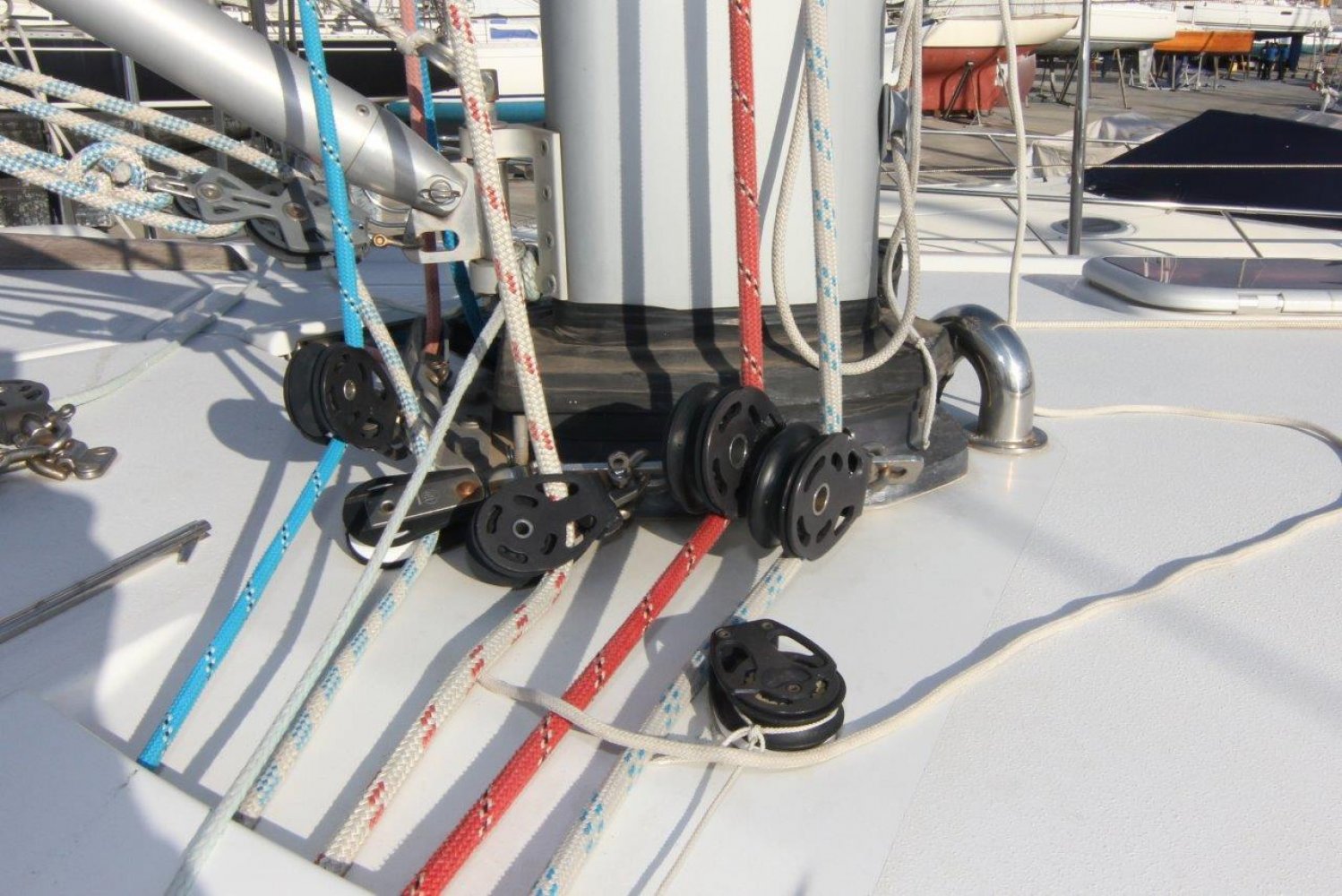 Spinnaker pole, new forestay 2015, mechanical backstay tensioner, Harken mast travellers