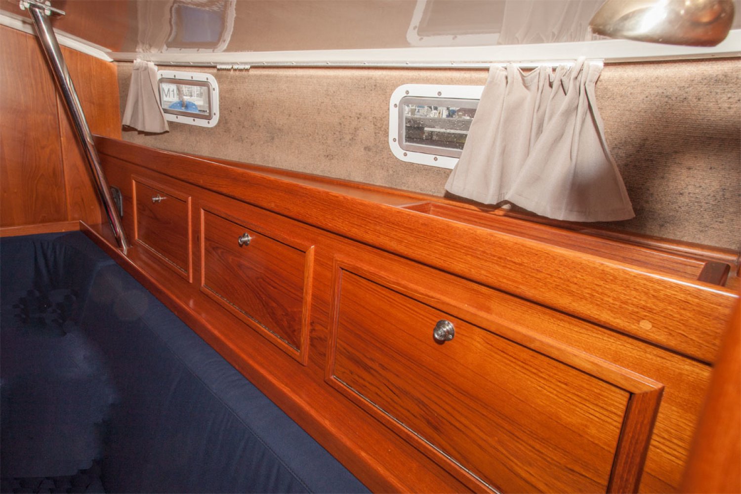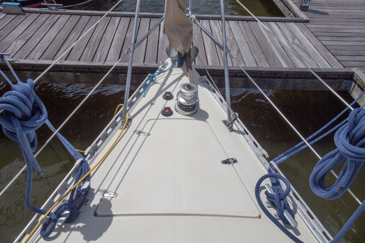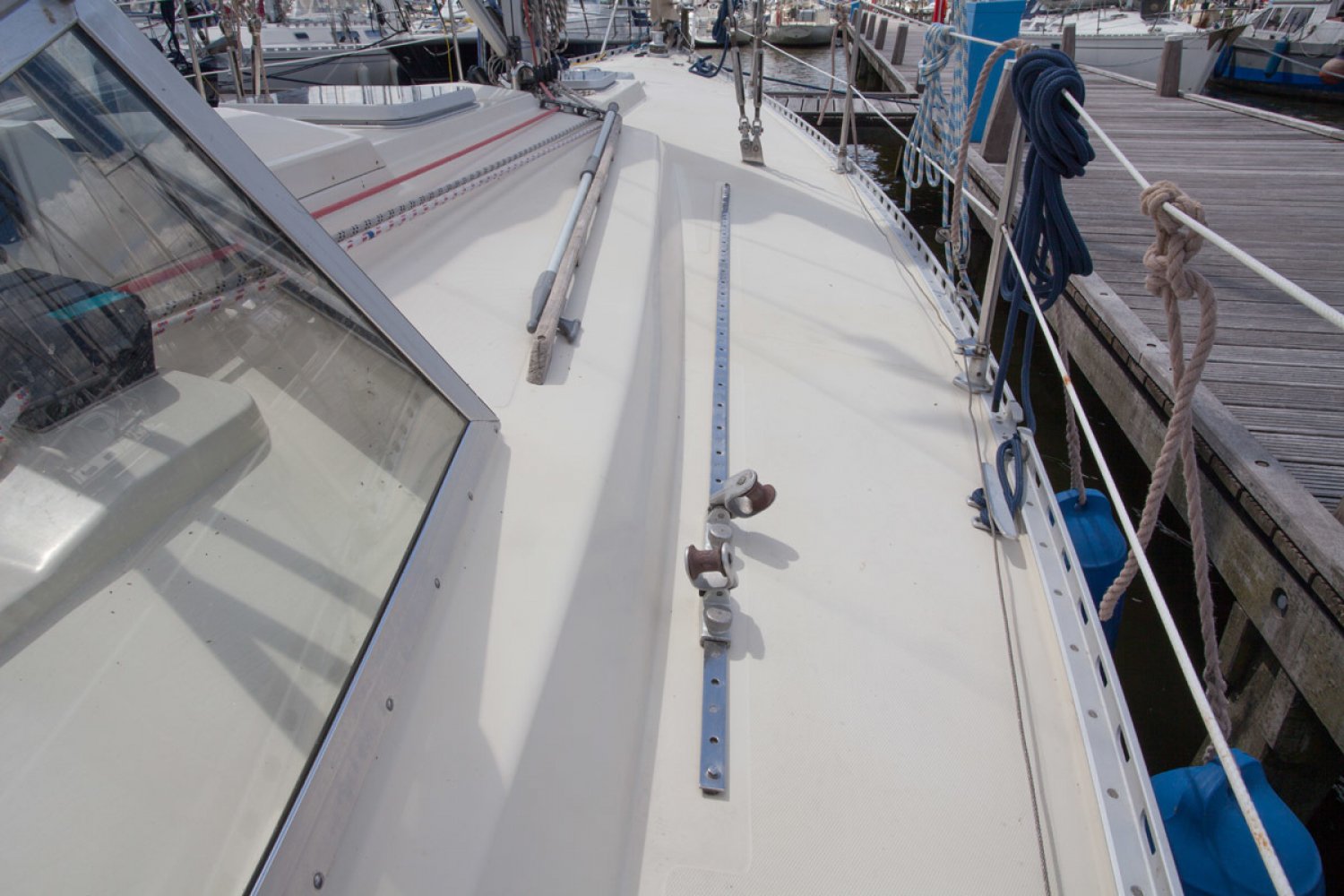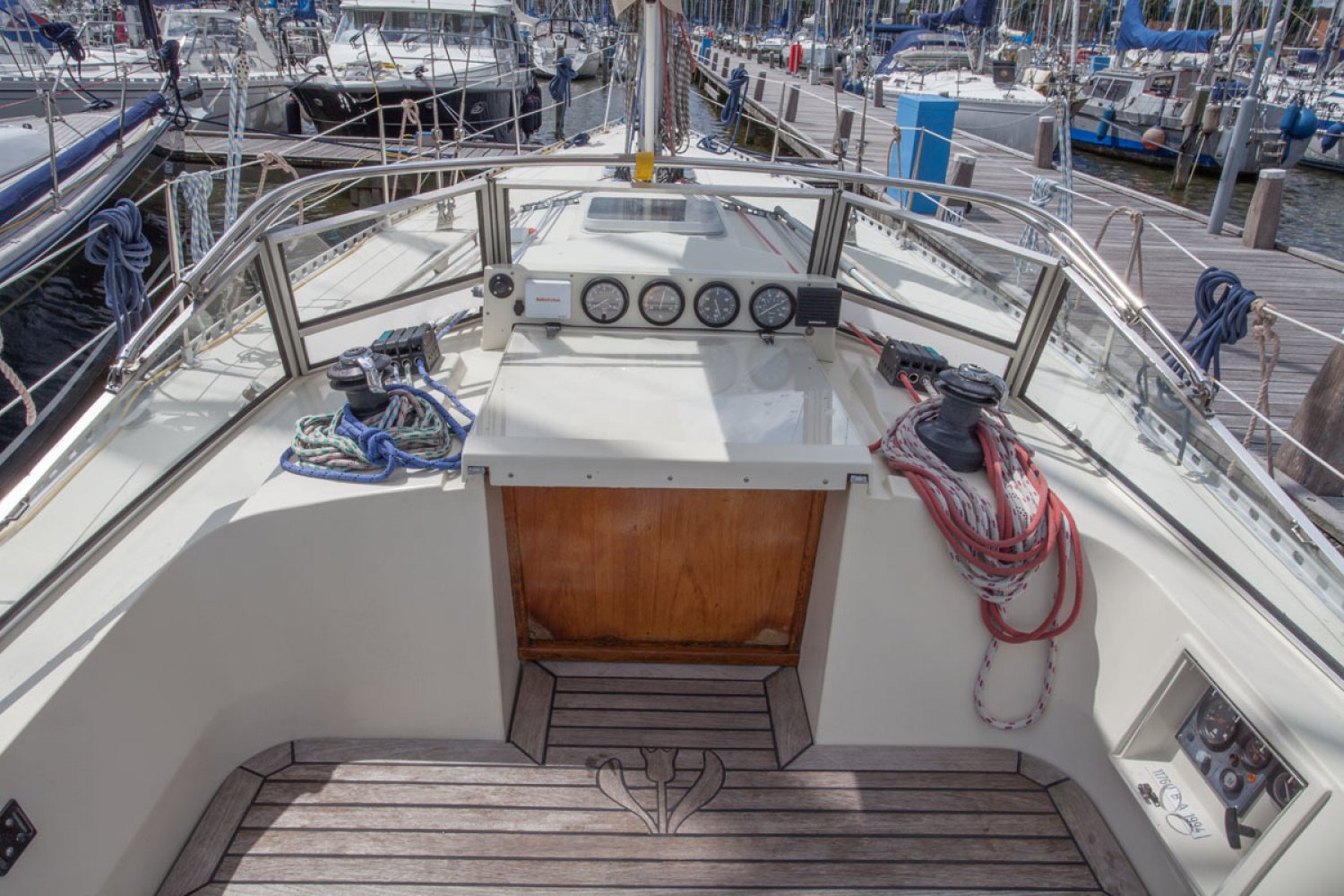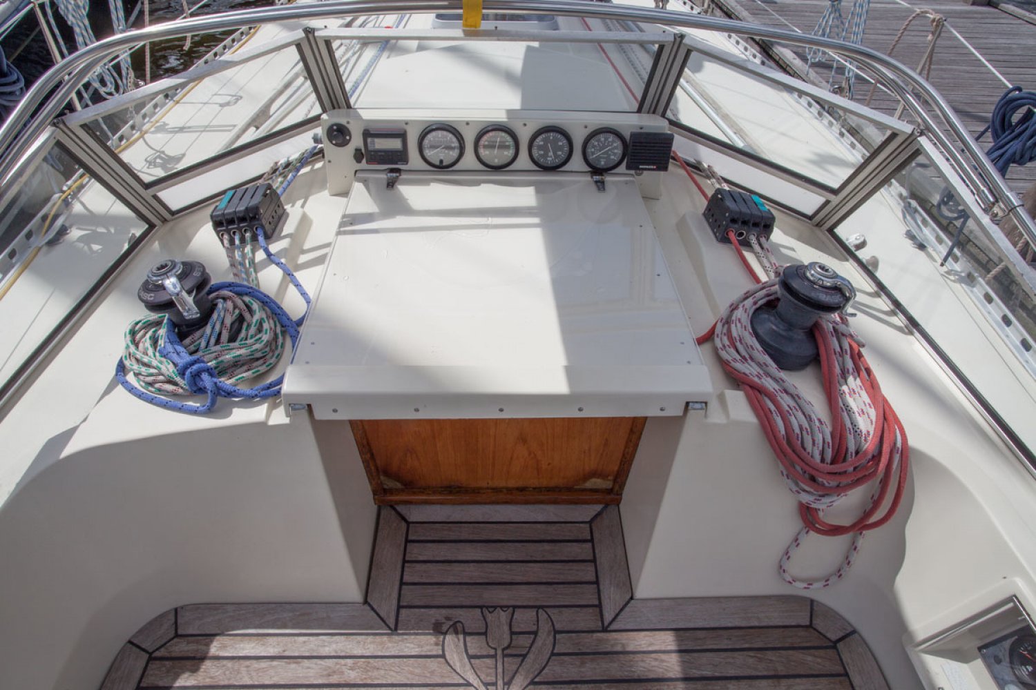De Contest 35 is een ontwerp van Dick Zaal gebouwd door de bekende Conyplex werf. Vanwege de goede vaareigenschappen en het ruime interieur is het ontwerp met veel sta hoogte is zij nog steeds populair. De boot die wij aanbieden is gebouwd in 1982. Er is regelmatig onderhoud gepleegd en waar nodig zijn zaken vernieuwd. De boot is in prima staat en geheel vaarklaar. Het interieur is door de bouwwijze van dek/plafond erg ruim en heeft meer stahoogte dan zelfs grotere jachten. Naast de ingang is links de navigatie hoek en rechts de U-vormige kombuis. Zowel in het voorschip als in het achterschip is een dubbele hut, ruim genoeg voor lange mensen. Voor wie een goed varend, zeewaardig en goed onderhouden kwaliteitsjacht zoekt is deze Contest 35 een absolute aanrader. Wij nodigen u van harte uit voor een bezichtiging in Enkhuizen. Hebt u nog vragen, of wilt u een afspraak maken voor een bezichtiging, neem dan zeker contact met ons op via [email protected]. Uw jachtmakelaar is Robert de Vries, tel. +31(0)6-50201336.