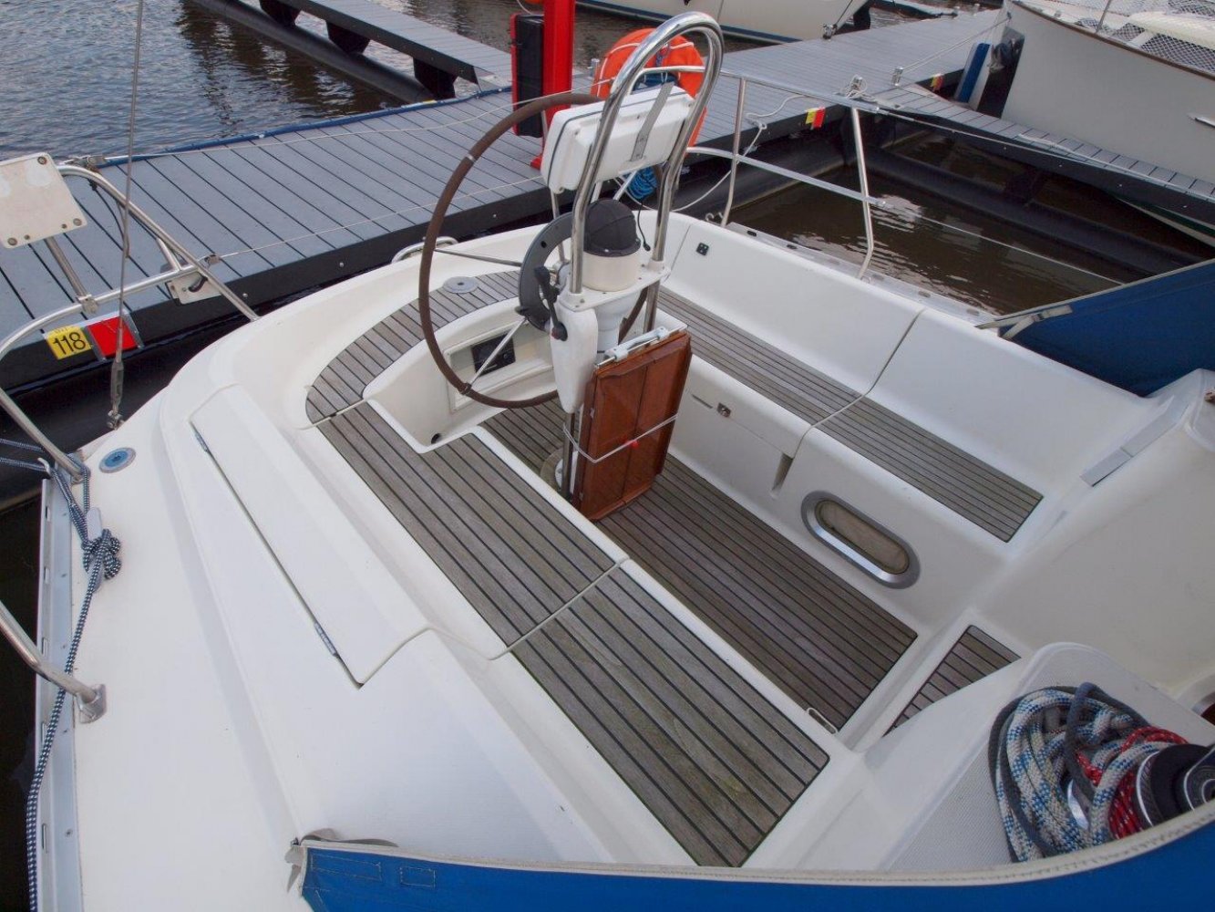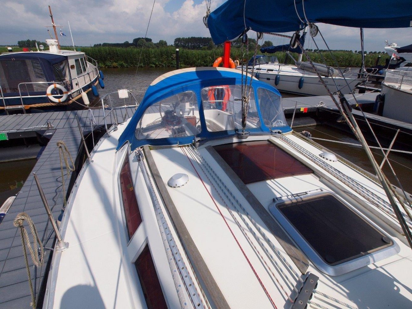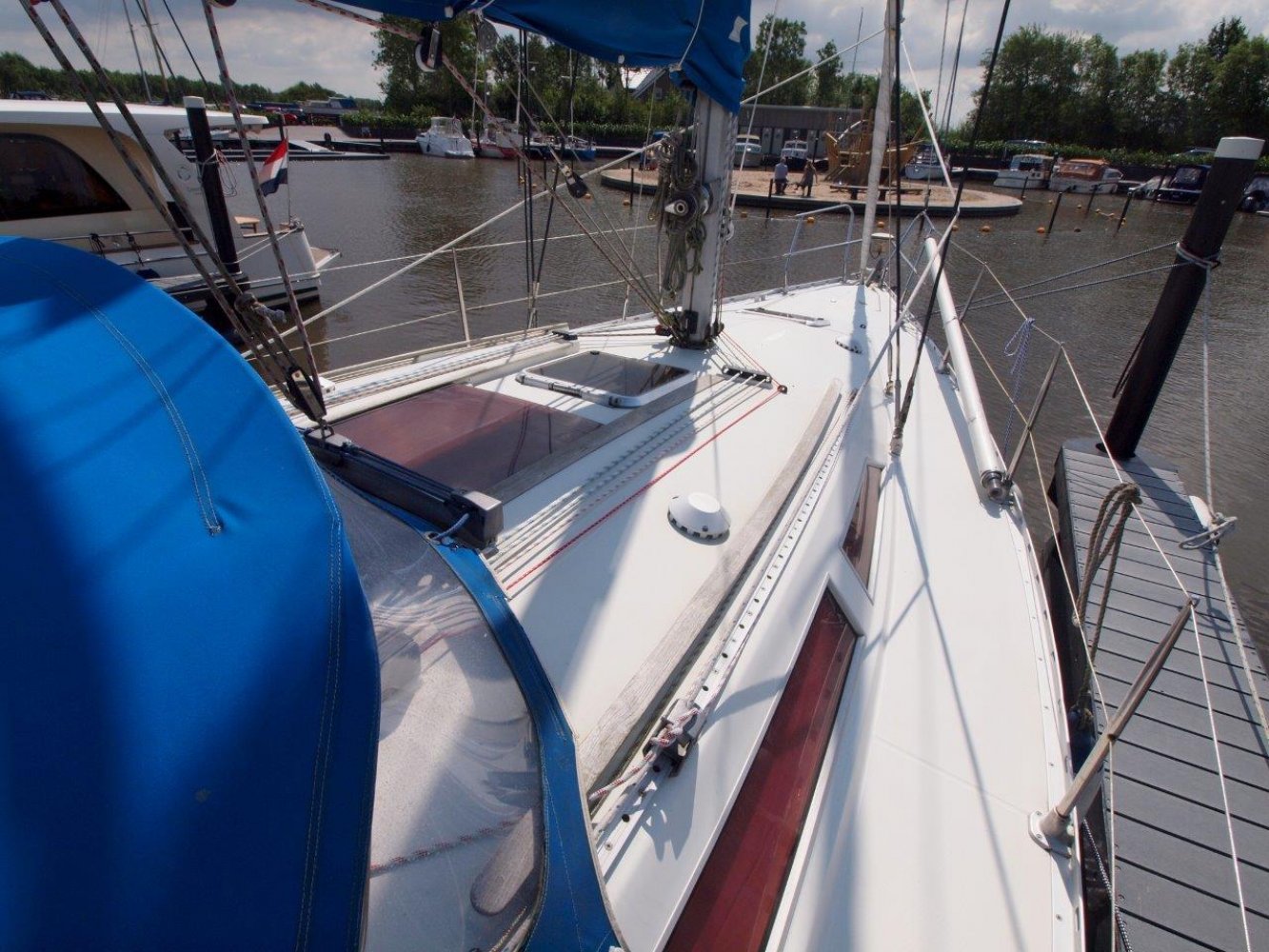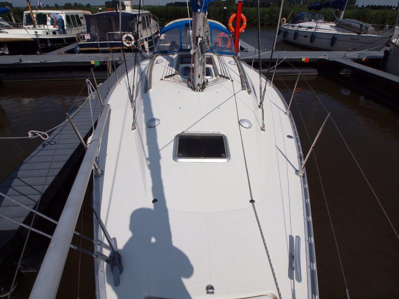 Deze leuke Jeanneau 33 in de praktische 3 hutten uitvoering kunnen wij u aanbieden voor een interessante prijs. Zoals elke Jeanneau is ook deze 33 een lekker zeilend maar ook erg praktisch schip. De kuip is ruim, de gangboorden gemakkelijk toegankelijk en het interieur is van alle gemakken voorzien. De kuip biedt u niet alleen een comfortabele plek, hier treft u uiteraard ook het stuurwiel en de nodige instrumenten aan. Op de stuurstand vindt u de kaartplotter en de bediening van de automatische piloot en radio/cd speler. Tegen de kajuit opbouw zijn nog extra meters geplaatst voor windsnelheid/richting en natuurlijk de snelheid van het schip en de diepte. De salon is handig ingericht en van alle gemakken voorzien. Bij binnenkomst treft u aan bakboord een ruime kaartentafel aan met aansluitend een in lengte richting geplaatst kombuis. Hier tegenover is een riante rondzit met een tafel in het midden. Naast deze rondzit vindt u de natte cel met uiteraard een toilet en een douche gelegenheid. In de voorpiek is de eerste tweepersoonshut met voldoende opbergruimte en zelfs een eigen wasbakje. En in de achterhut zijn de overige twee dubbele hutten met ook hier de nodige opbergruimte. Kortom, met dit schip kunt u zes personen laten overnachten en de salon nog vrij houden, en dat op 33 voet! Mocht u opzoek zijn naar een praktisch schip met overzichtelijke buitenmaten maar wel ruimte voor uw gezin, dan is deze Jeanneau 33 met zijn drie hutten zeker de moeite waard. Dit schip heeft cosmetisch wel wat liefde nodig (wat butsen en krassen opgelopen in de loop van de jaren) maar het is werkelijk vaarklaar voor een nieuw eigenaar en wordt daarom ook aangeboden voor een interessante prijs. Als uw interesse gewekt is, neem dan zeker contact met ons op via tel.nr. 0168-820 208 of email: [email protected]