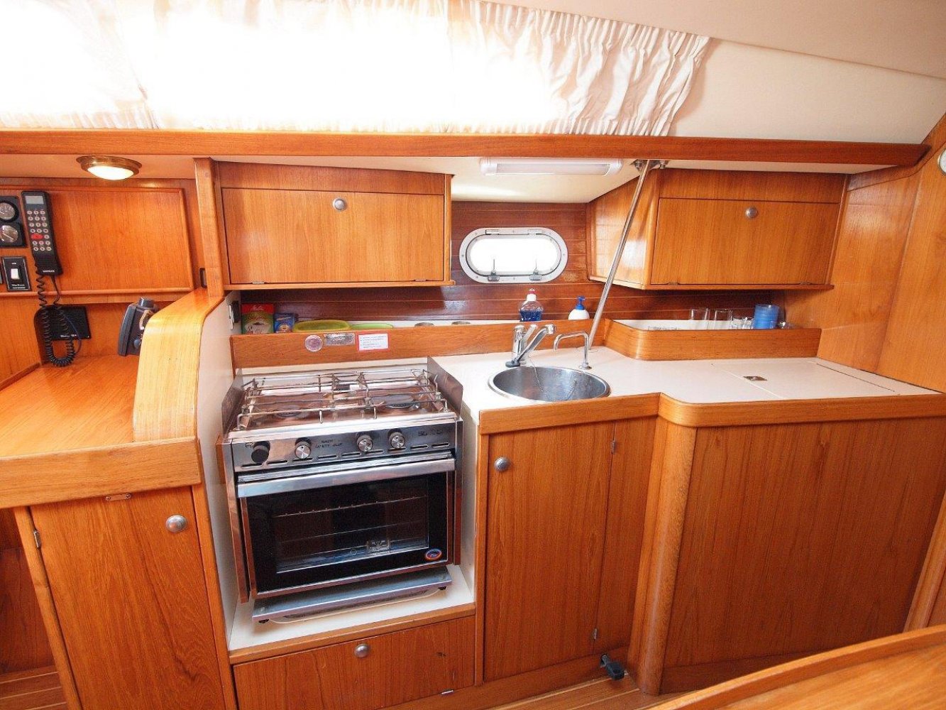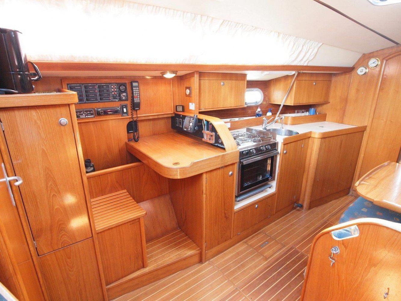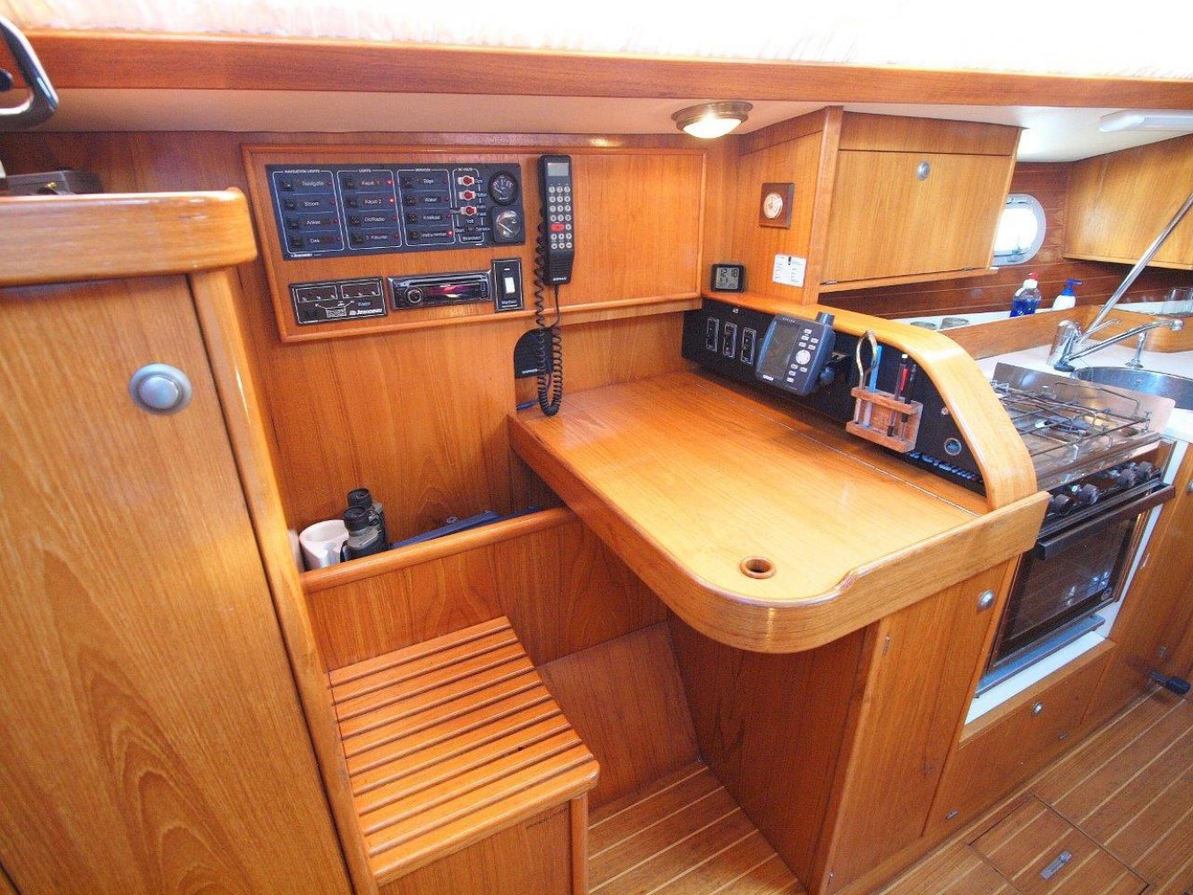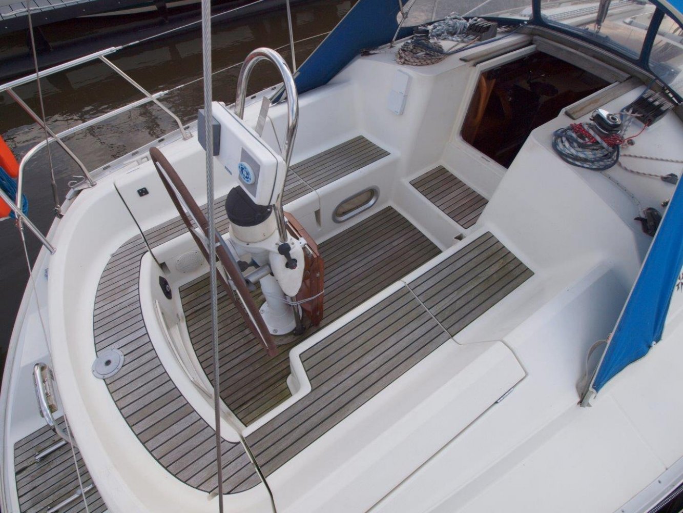Deze leuke Jeanneau 33 in de praktische 3 hutten uitvoering kunnen wij u aanbieden voor een interessante prijs. Zoals elke Jeanneau is ook deze 33 een lekker zeilend maar ook erg praktisch schip. De kuip is ruim, de gangboorden gemakkelijk toegankelijk en het interieur is van alle gemakken voorzien. De kuip biedt u niet alleen een comfortabele plek, hier treft u uiteraard ook het stuurwiel en de nodige instrumenten aan. Op de stuurstand vindt u de kaartplotter en de bediening van de automatische piloot en radio/cd speler. Tegen de kajuit opbouw zijn nog extra meters geplaatst voor windsnelheid/richting en natuurlijk de snelheid van het schip en de diepte. De salon is handig ingericht en van alle gemakken voorzien. Bij binnenkomst treft u aan bakboord een ruime kaartentafel aan met aansluitend een in lengte richting geplaatst kombuis. Hier tegenover is een riante rondzit met een tafel in het midden. Naast deze rondzit vindt u de natte cel met uiteraard een toilet en een douche gelegenheid. In de voorpiek is de eerste tweepersoonshut met voldoende opbergruimte en zelfs een eigen wasbakje. En in de achterhut zijn de overige twee dubbele hutten met ook hier de nodige opbergruimte. Kortom, met dit schip kunt u zes personen laten overnachten en de salon nog vrij houden, en dat op 33 voet! Mocht u opzoek zijn naar een praktisch schip met overzichtelijke buitenmaten maar wel ruimte voor uw gezin, dan is deze Jeanneau 33 met zijn drie hutten zeker de moeite waard. Dit schip heeft cosmetisch wel wat liefde nodig (wat butsen en krassen opgelopen in de loop van de jaren) maar het is werkelijk vaarklaar voor een nieuw eigenaar en wordt daarom ook aangeboden voor een interessante prijs. Als uw interesse gewekt is, neem dan zeker contact met ons op via tel.nr. 0168-820 208 of email: [email protected]