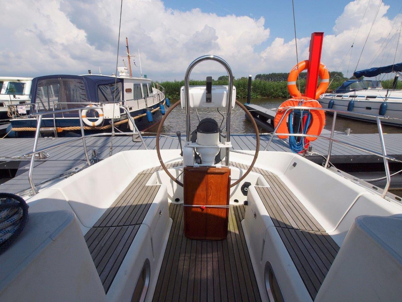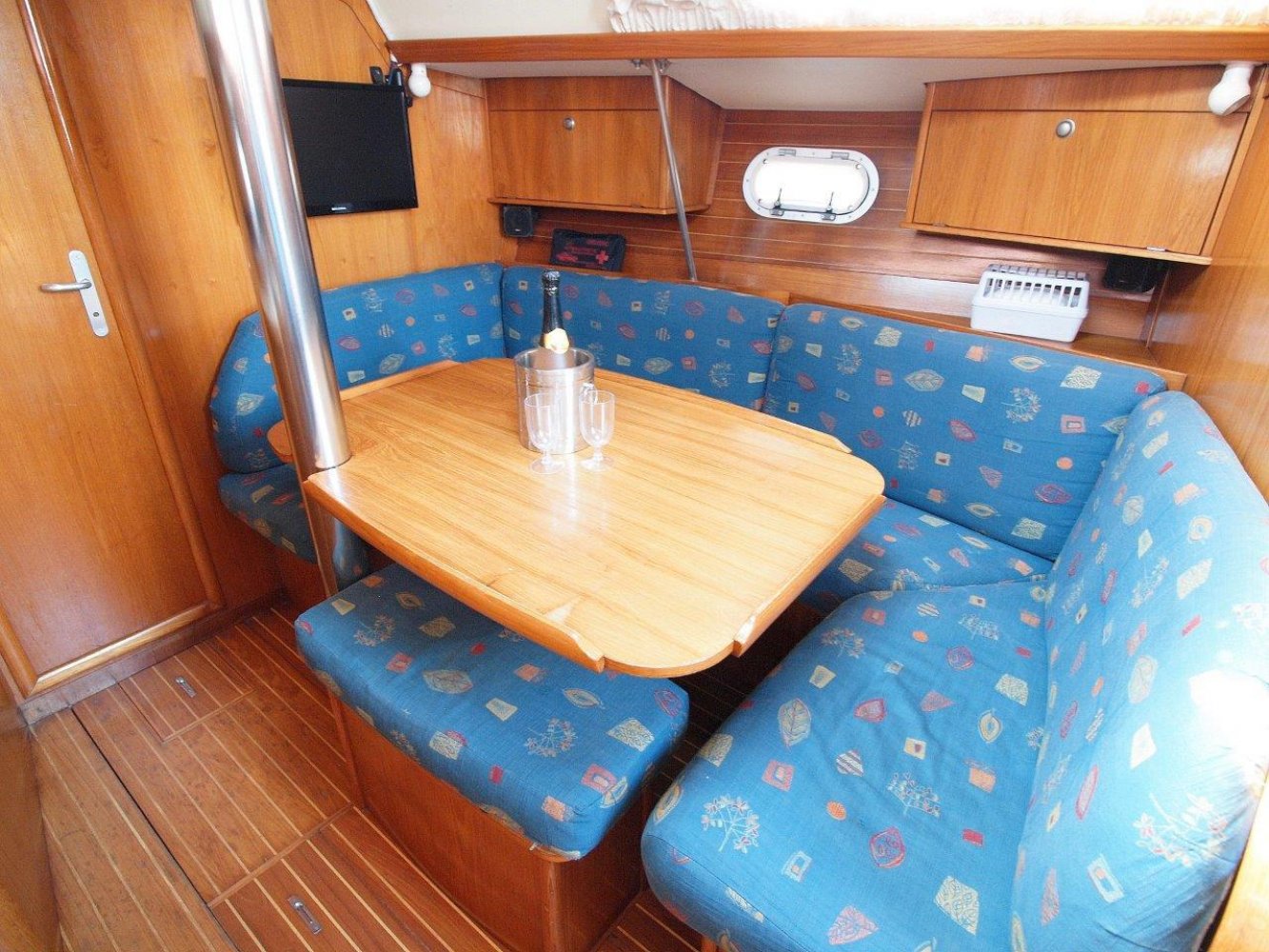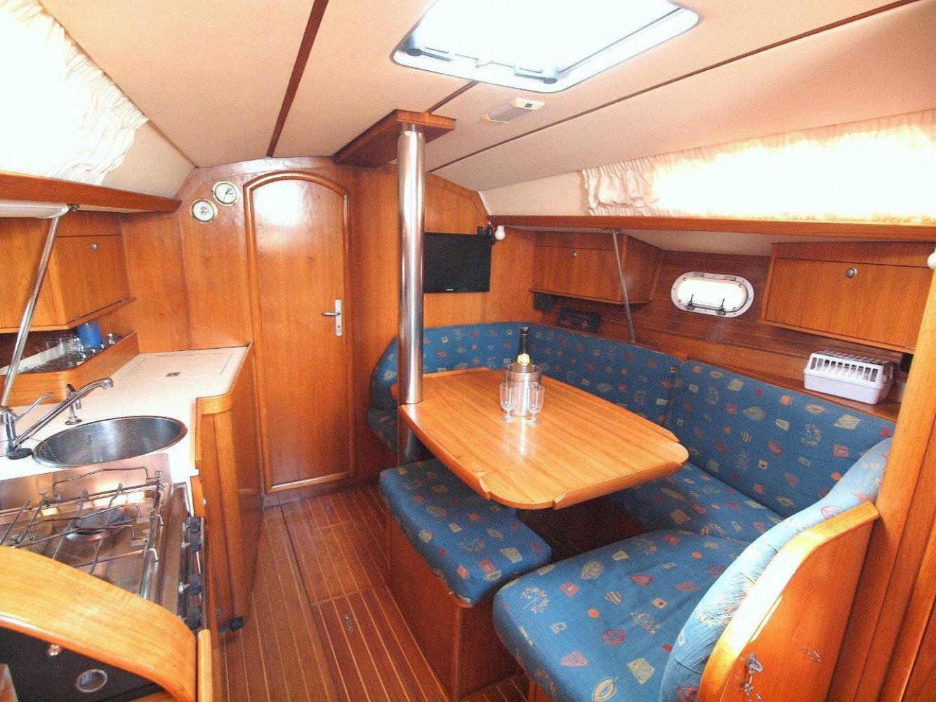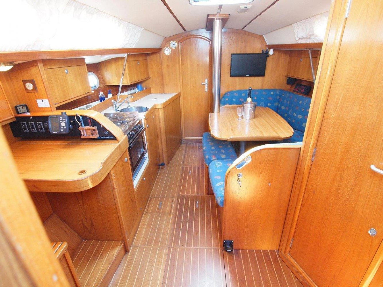 Deze leuke Jeanneau 33 in de praktische 3 hutten uitvoering kunnen wij u aanbieden voor een interessante prijs. Zoals elke Jeanneau is ook deze 33 een lekker zeilend maar ook erg praktisch schip. De kuip is ruim, de gangboorden gemakkelijk toegankelijk en het interieur is van alle gemakken voorzien. De kuip biedt u niet alleen een comfortabele plek, hier treft u uiteraard ook het stuurwiel en de nodige instrumenten aan. Op de stuurstand vindt u de kaartplotter en de bediening van de automatische piloot en radio/cd speler. Tegen de kajuit opbouw zijn nog extra meters geplaatst voor windsnelheid/richting en natuurlijk de snelheid van het schip en de diepte. De salon is handig ingericht en van alle gemakken voorzien. Bij binnenkomst treft u aan bakboord een ruime kaartentafel aan met aansluitend een in lengte richting geplaatst kombuis. Hier tegenover is een riante rondzit met een tafel in het midden. Naast deze rondzit vindt u de natte cel met uiteraard een toilet en een douche gelegenheid. In de voorpiek is de eerste tweepersoonshut met voldoende opbergruimte en zelfs een eigen wasbakje. En in de achterhut zijn de overige twee dubbele hutten met ook hier de nodige opbergruimte. Kortom, met dit schip kunt u zes personen laten overnachten en de salon nog vrij houden, en dat op 33 voet! Mocht u opzoek zijn naar een praktisch schip met overzichtelijke buitenmaten maar wel ruimte voor uw gezin, dan is deze Jeanneau 33 met zijn drie hutten zeker de moeite waard. Dit schip heeft cosmetisch wel wat liefde nodig (wat butsen en krassen opgelopen in de loop van de jaren) maar het is werkelijk vaarklaar voor een nieuw eigenaar en wordt daarom ook aangeboden voor een interessante prijs. Als uw interesse gewekt is, neem dan zeker contact met ons op via tel.nr. 0168-820 208 of email: [email protected]
