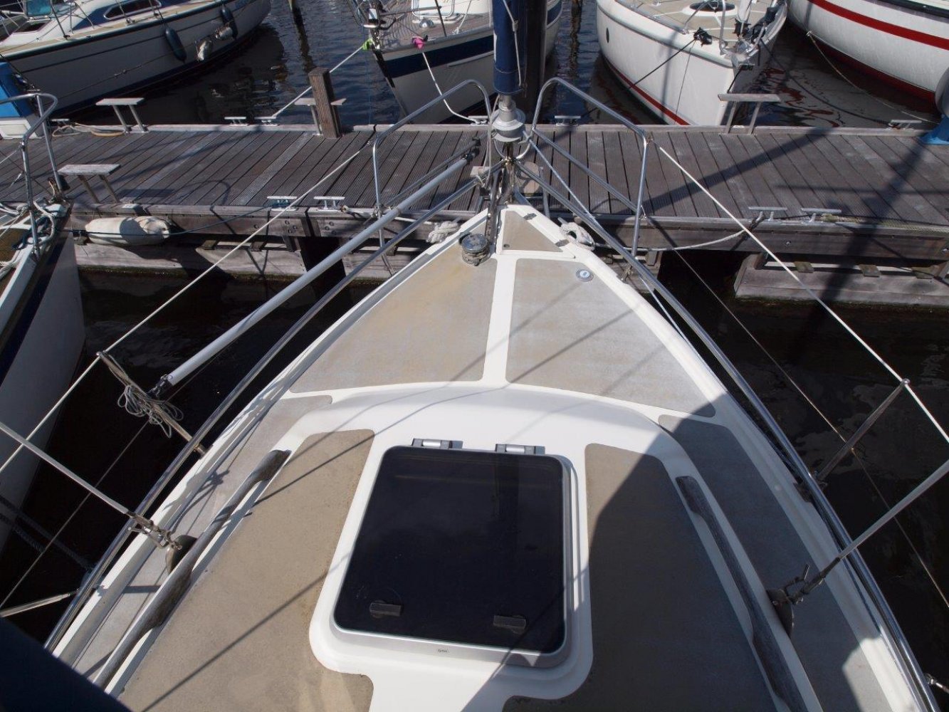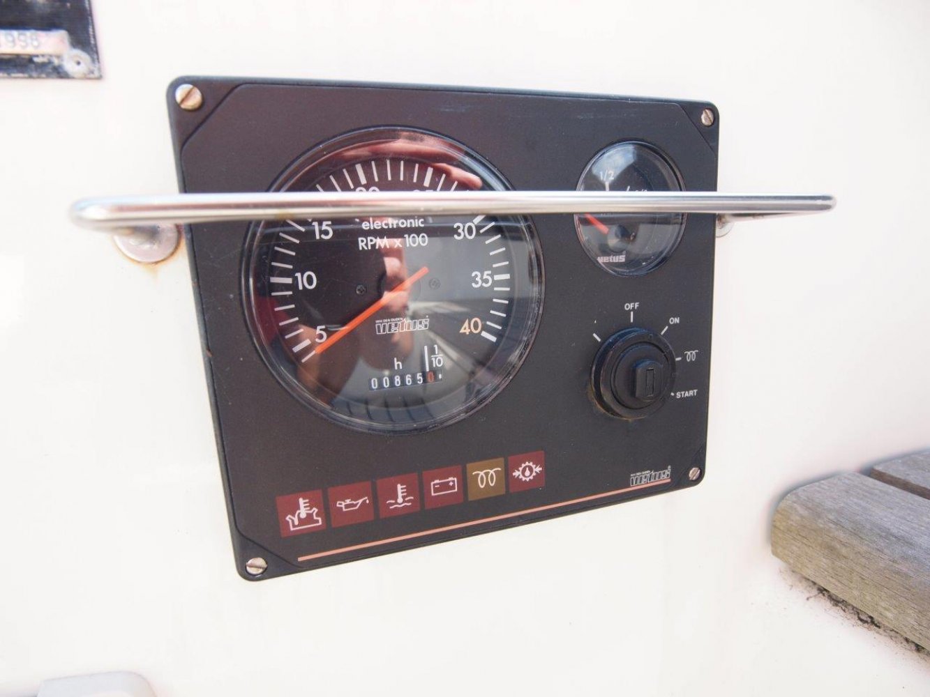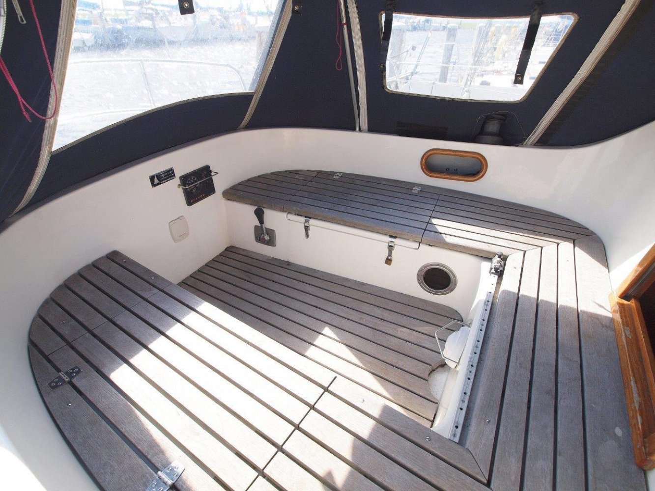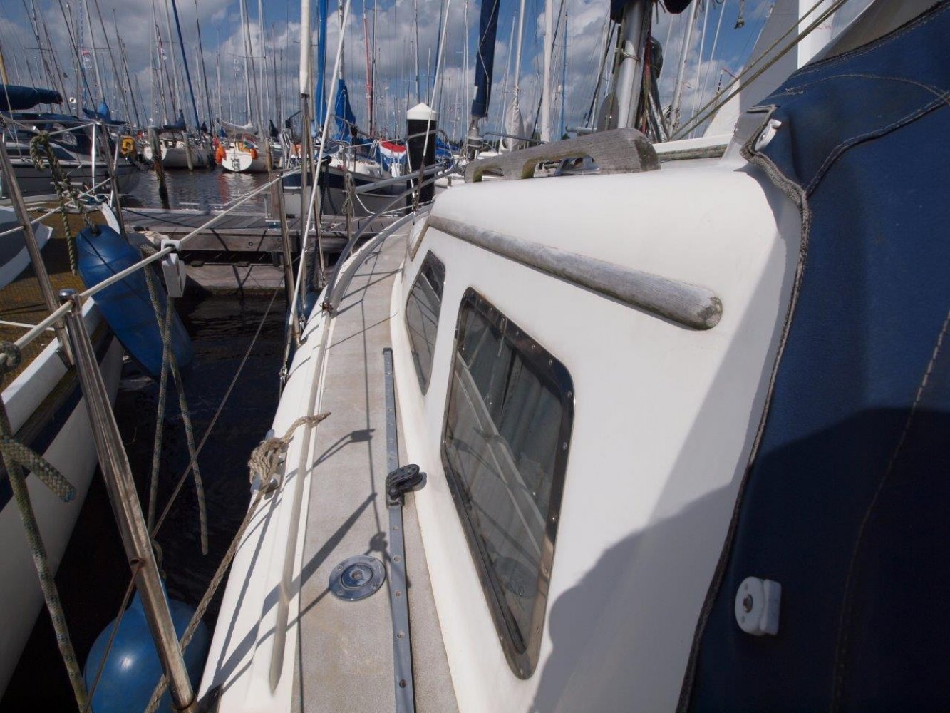 Deze opvallende verschijning herkent u ongetwijfeld al van ver. Dhr. M.H. Bekebrede heeft een uniek ontwerp getekend wat onmiskenbaar te herkennen is als een Midget. Deze Midget 26 is een mooi voorbeeld waar deze schepen voor staan. De ronde spiegel, het ruime interieur en de solide constructie zijn allemaal typerend voor deze schepen. Als u het schip in de haven ziet liggen valt meteen de warme uitstraling op. Maar ook de praktische details springen in het oog. Bijvoorbeeld de aanwezige maststrijkinstallatie om maar wat te noemen. Verder is de kuip opvallend ruim en biedt deze daarbij goede bescherming tegen de elementen. De buiskap met aanritsbare kuiptent dragen daar nog eens een extra steentje aan bij. Binnen in het schip treft u een interieur aan dat gekenmerkt wordt door een fraaie afwerking en een bijzonder praktische indeling. U waant zich echt op een groter schip. In het achter schip zijn twee hutten en een natte cel te vinden. Midscheeps een kaarten tafel en een kombuis en in de voorpiek een ruime rondzit welke ook nog eens te gebruiken is als extra slaap plaats. Deze Midget 26 in het bijzonder is daarbij ook nog eens uitstekend onderhouden en vaarklaar voor een nieuwe eigenaar. Mocht u een ruim, comfortabel en een bijzonder solide schip zoeken, dan is deze Midget 26 echt de moeite waard.