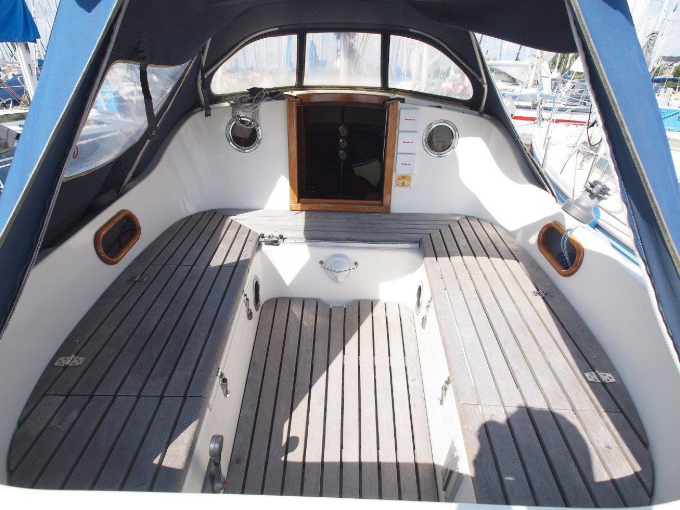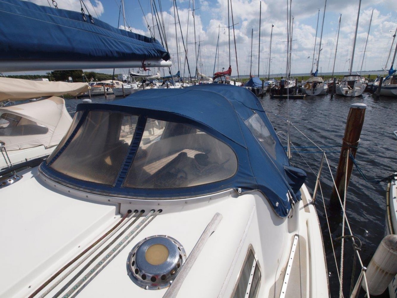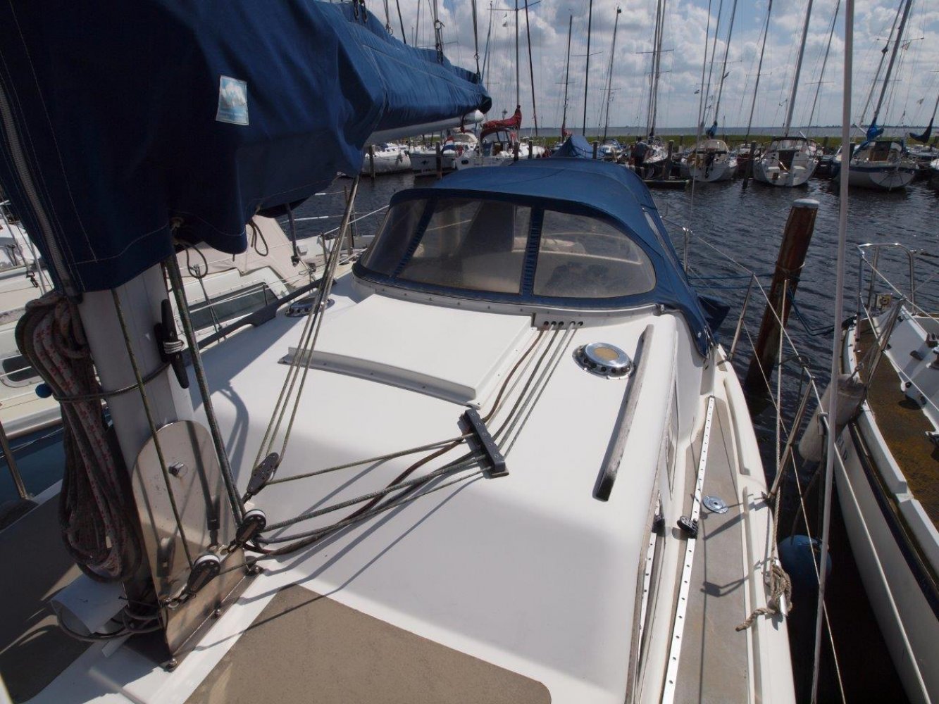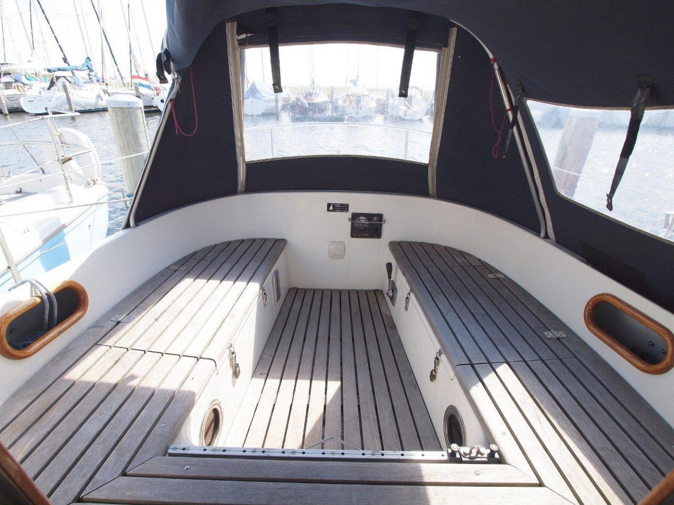 Deze opvallende verschijning herkent u ongetwijfeld al van ver. Dhr. M.H. Bekebrede heeft een uniek ontwerp getekend wat onmiskenbaar te herkennen is als een Midget. Deze Midget 26 is een mooi voorbeeld waar deze schepen voor staan. De ronde spiegel, het ruime interieur en de solide constructie zijn allemaal typerend voor deze schepen. Als u het schip in de haven ziet liggen valt meteen de warme uitstraling op. Maar ook de praktische details springen in het oog. Bijvoorbeeld de aanwezige maststrijkinstallatie om maar wat te noemen. Verder is de kuip opvallend ruim en biedt deze daarbij goede bescherming tegen de elementen. De buiskap met aanritsbare kuiptent dragen daar nog eens een extra steentje aan bij. Binnen in het schip treft u een interieur aan dat gekenmerkt wordt door een fraaie afwerking en een bijzonder praktische indeling. U waant zich echt op een groter schip. In het achter schip zijn twee hutten en een natte cel te vinden. Midscheeps een kaarten tafel en een kombuis en in de voorpiek een ruime rondzit welke ook nog eens te gebruiken is als extra slaap plaats. Deze Midget 26 in het bijzonder is daarbij ook nog eens uitstekend onderhouden en vaarklaar voor een nieuwe eigenaar. Mocht u een ruim, comfortabel en een bijzonder solide schip zoeken, dan is deze Midget 26 echt de moeite waard.