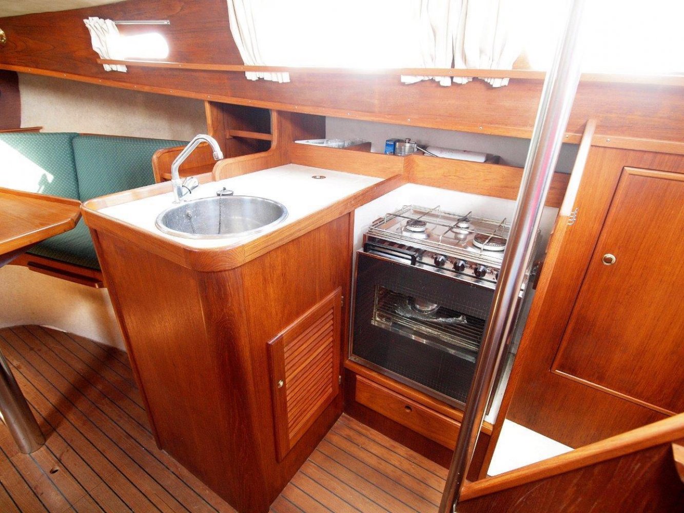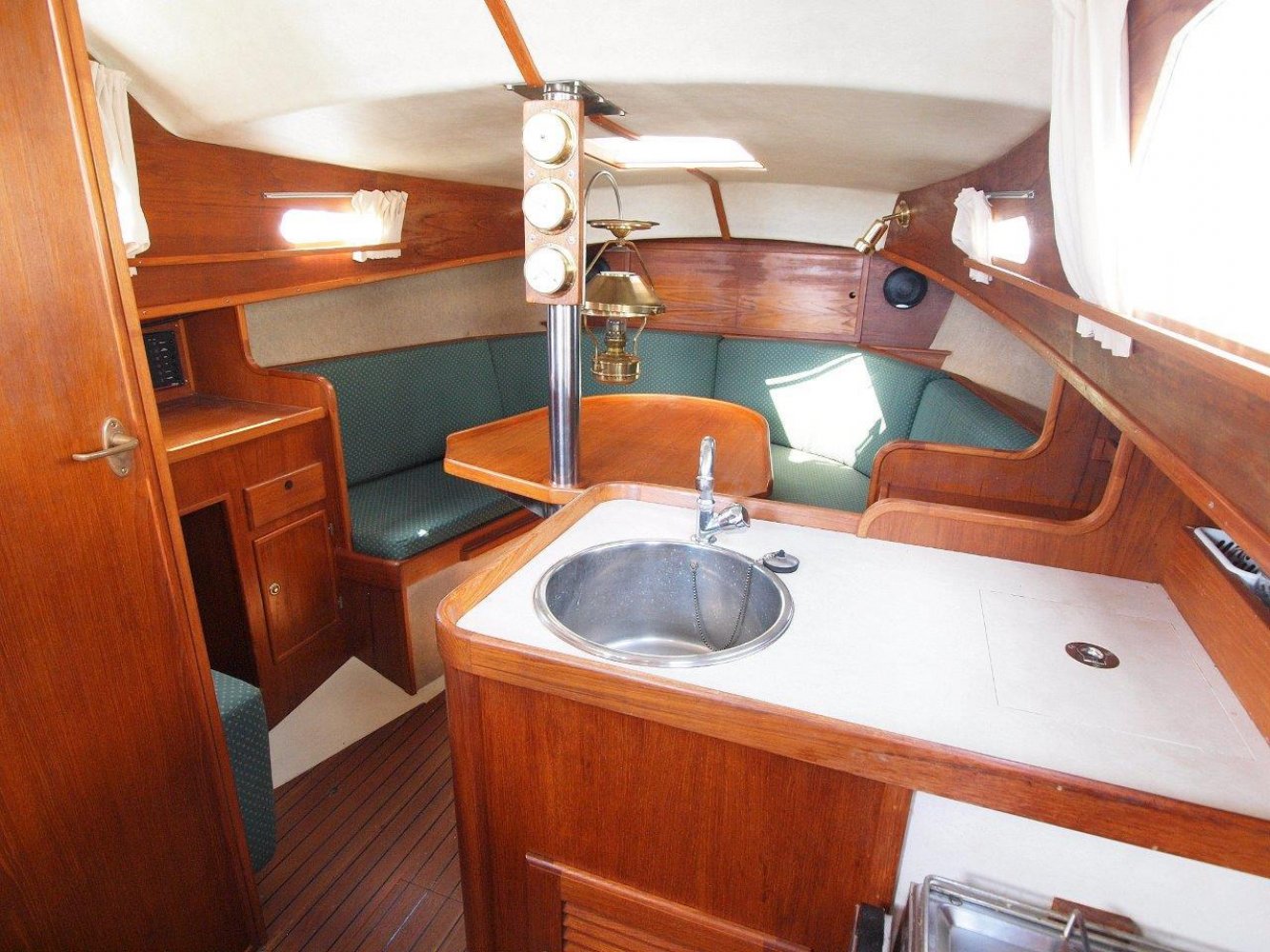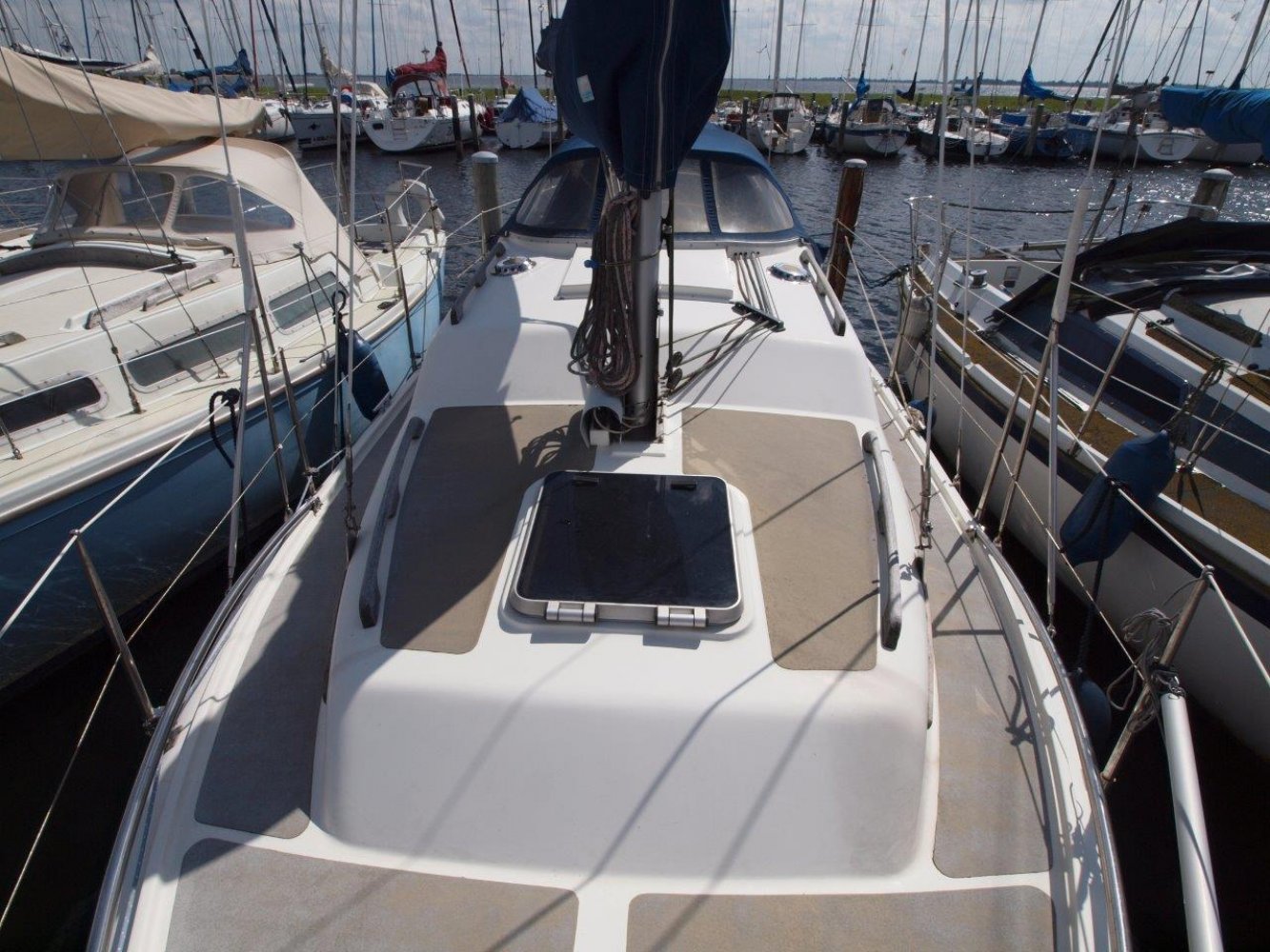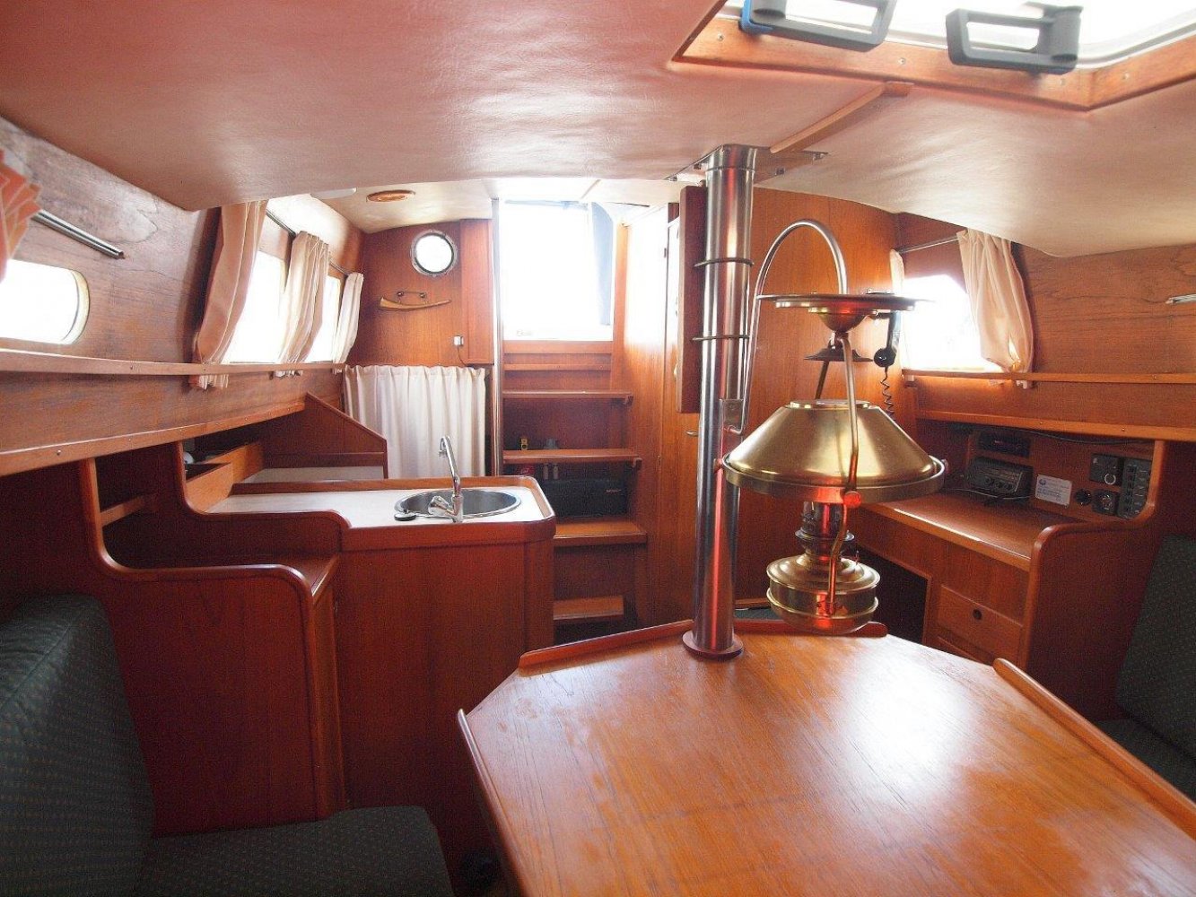 Deze opvallende verschijning herkent u ongetwijfeld al van ver. Dhr. M.H. Bekebrede heeft een uniek ontwerp getekend wat onmiskenbaar te herkennen is als een Midget. Deze Midget 26 is een mooi voorbeeld waar deze schepen voor staan. De ronde spiegel, het ruime interieur en de solide constructie zijn allemaal typerend voor deze schepen. Als u het schip in de haven ziet liggen valt meteen de warme uitstraling op. Maar ook de praktische details springen in het oog. Bijvoorbeeld de aanwezige maststrijkinstallatie om maar wat te noemen. Verder is de kuip opvallend ruim en biedt deze daarbij goede bescherming tegen de elementen. De buiskap met aanritsbare kuiptent dragen daar nog eens een extra steentje aan bij. Binnen in het schip treft u een interieur aan dat gekenmerkt wordt door een fraaie afwerking en een bijzonder praktische indeling. U waant zich echt op een groter schip. In het achter schip zijn twee hutten en een natte cel te vinden. Midscheeps een kaarten tafel en een kombuis en in de voorpiek een ruime rondzit welke ook nog eens te gebruiken is als extra slaap plaats. Deze Midget 26 in het bijzonder is daarbij ook nog eens uitstekend onderhouden en vaarklaar voor een nieuwe eigenaar. Mocht u een ruim, comfortabel en een bijzonder solide schip zoeken, dan is deze Midget 26 echt de moeite waard.