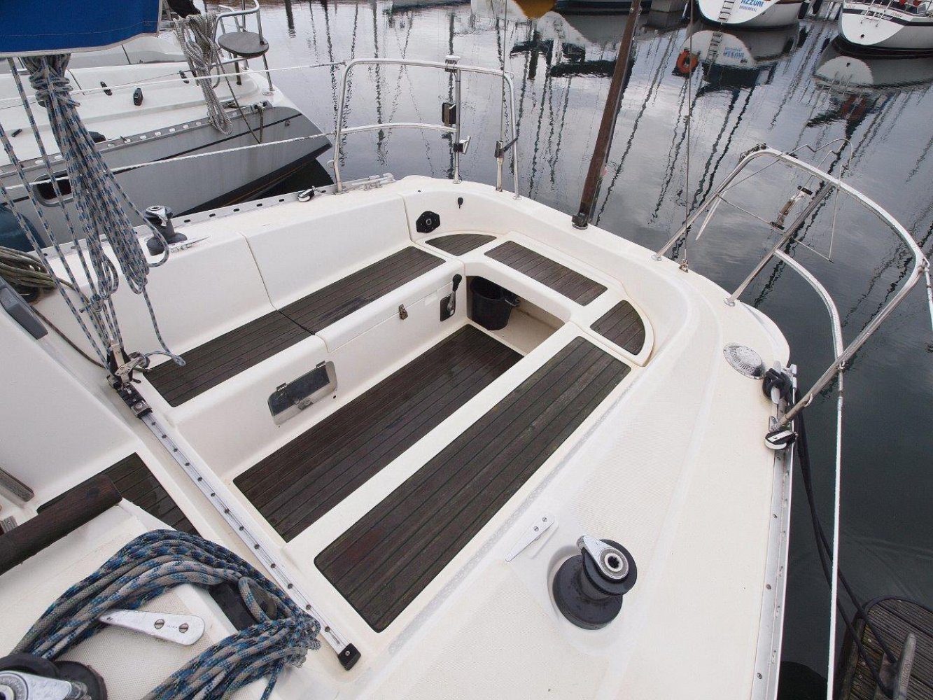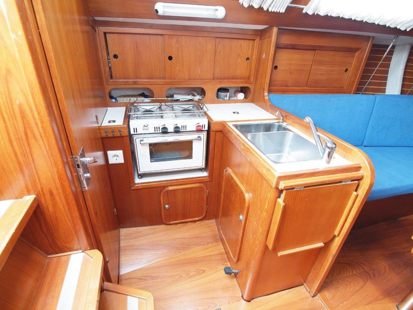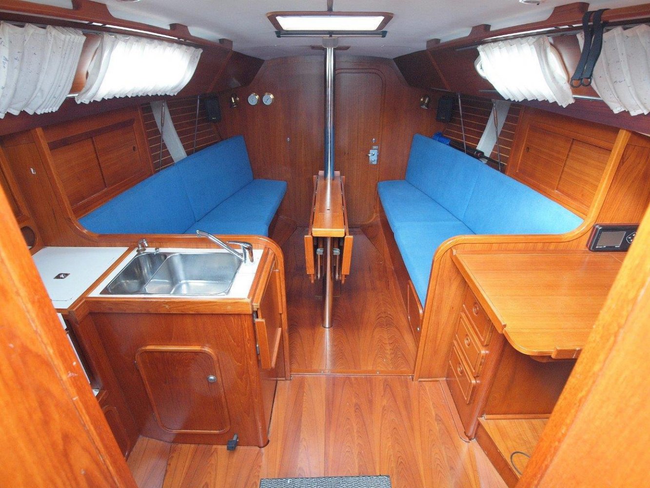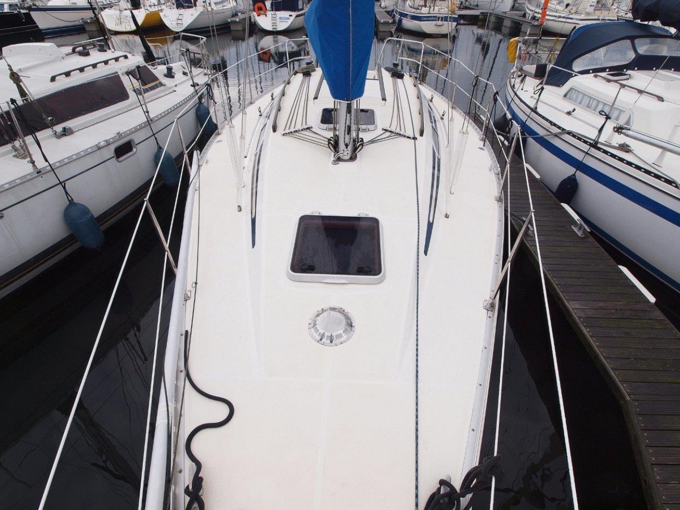 Goed onderhouden Elan 331 vaarklaar voor een nieuwe eigenaar. De Elan 331 staat bekend om de fijne zeileigenschappen en een praktisch interieur met een fraaie afwerking. Deze 331 die wij mogen aanbieden is daar zeker geen uitzondering op. Zodra u het schip ziet liggen valt het tijdloze J&J design ontwerp op. Dit design bureau staat niet alleen garant voor een mooie lijn maar ook voor goede zeileigenschappen. De gangboorden zijn breed en bieden een goede rondgang over het dek. De kuip is lekker ruim zodat u voldoen beweegruimte heeft als u fanatiek aan het zeilen bent. Maar wilt u eens lekker ontspannen is dat zeker ook geen probleem. Het schip is voorzien van een helmstok besturing dat natuurlijk een perfect gevoel van het roer geeft maar in de haven of voor anker kan deze gemakkelijk opgeklapt worden zodat u de kuip helemaal vrij heeft. En mocht het nu echt lekker weer zijn is een duikje in het water ook geen probleem dankzij het zwemplatform met zwemtrap. Binnen in het schip wordt u ontvangen door een warme sfeer. Het schip is fraai afgewerkt in teak en de indeling is praktisch. Aan stuurboord is de kaartentafel met daar tegen over aan bakboord het kombuis. Midscheeps zijn aan beiden kanten comfortabele langsbanken en in het midden een tafel. Helemaal in de voorpiek is een hut met een slaapplaats voor twee personen. In het achterschip is aan de ene kant een ruime natte cel en aan de andere kant de tweede hut met ook hier een slaapplaats voor twee personen. Verder is er door het gehele schip veel opbergruimte te vinden dus een langer verblijf aan boord is ook geen probleem. Mocht u een goed onderhouden schip zoeken met goede zeileigenschappen, een fraaie afwerking voor een vriendelijke prijs? Dan is de Elan 331 zeker de moeite waard. We horen u dan ook graag om een afspraak te maken voor een bezichtiging aan boord van deze Elan gelegen in Sint Annaland. Wij zijn te bereiken via +31 168 820 208 of email: [email protected]
