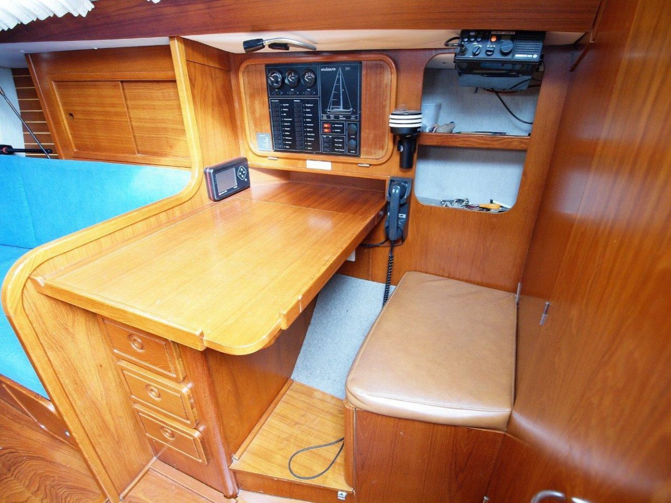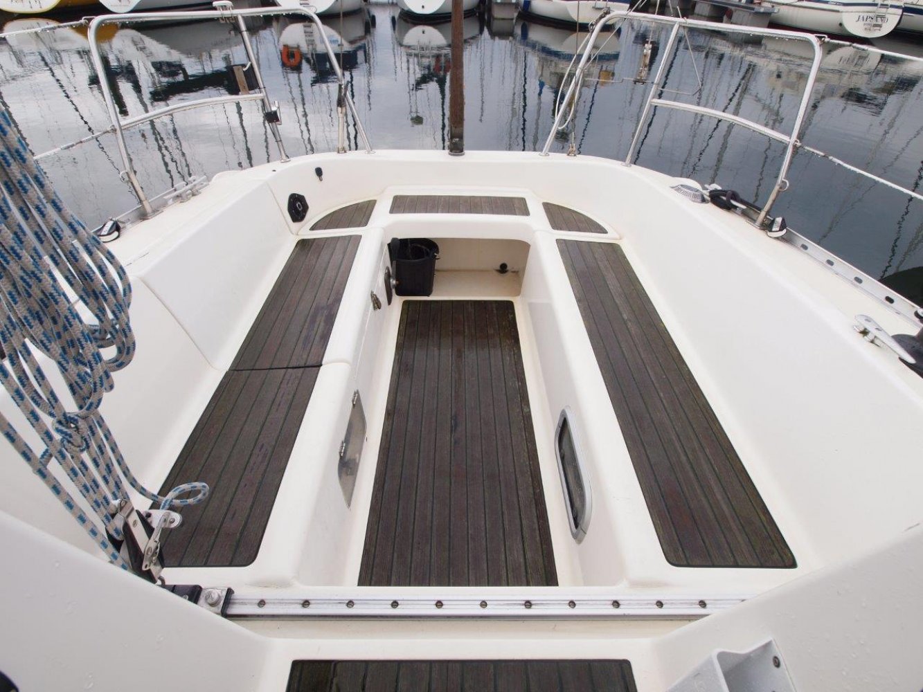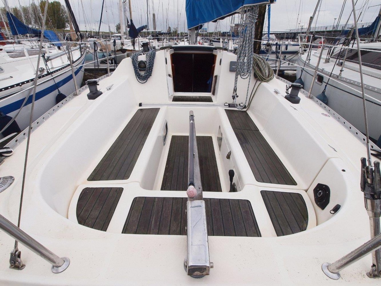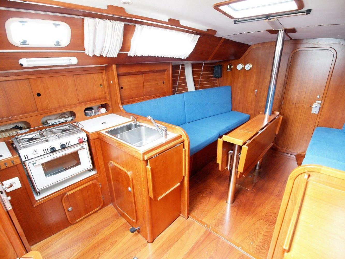 Goed onderhouden Elan 331 vaarklaar voor een nieuwe eigenaar. De Elan 331 staat bekend om de fijne zeileigenschappen en een praktisch interieur met een fraaie afwerking. Deze 331 die wij mogen aanbieden is daar zeker geen uitzondering op. Zodra u het schip ziet liggen valt het tijdloze J&J design ontwerp op. Dit design bureau staat niet alleen garant voor een mooie lijn maar ook voor goede zeileigenschappen. De gangboorden zijn breed en bieden een goede rondgang over het dek. De kuip is lekker ruim zodat u voldoen beweegruimte heeft als u fanatiek aan het zeilen bent. Maar wilt u eens lekker ontspannen is dat zeker ook geen probleem. Het schip is voorzien van een helmstok besturing dat natuurlijk een perfect gevoel van het roer geeft maar in de haven of voor anker kan deze gemakkelijk opgeklapt worden zodat u de kuip helemaal vrij heeft. En mocht het nu echt lekker weer zijn is een duikje in het water ook geen probleem dankzij het zwemplatform met zwemtrap. Binnen in het schip wordt u ontvangen door een warme sfeer. Het schip is fraai afgewerkt in teak en de indeling is praktisch. Aan stuurboord is de kaartentafel met daar tegen over aan bakboord het kombuis. Midscheeps zijn aan beiden kanten comfortabele langsbanken en in het midden een tafel. Helemaal in de voorpiek is een hut met een slaapplaats voor twee personen. In het achterschip is aan de ene kant een ruime natte cel en aan de andere kant de tweede hut met ook hier een slaapplaats voor twee personen. Verder is er door het gehele schip veel opbergruimte te vinden dus een langer verblijf aan boord is ook geen probleem. Mocht u een goed onderhouden schip zoeken met goede zeileigenschappen, een fraaie afwerking voor een vriendelijke prijs? Dan is de Elan 331 zeker de moeite waard. We horen u dan ook graag om een afspraak te maken voor een bezichtiging aan boord van deze Elan gelegen in Sint Annaland. Wij zijn te bereiken via +31 168 820 208 of email: [email protected]