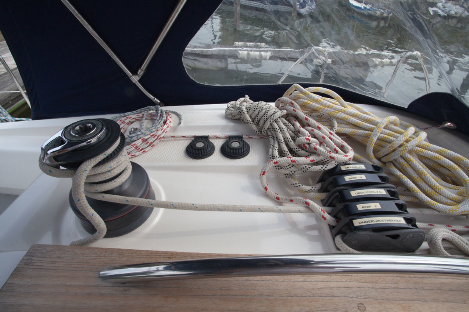 Harken; 2 x 48,2 ST, 1 x electrisch 44,2 ST voor grootzeil, 1 x 44,2 ST voor overige