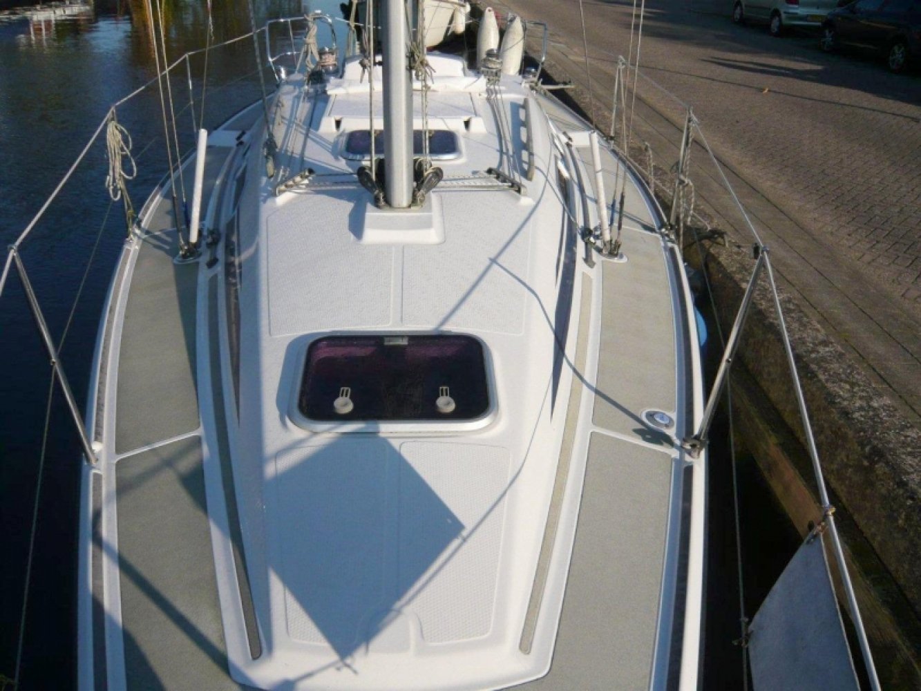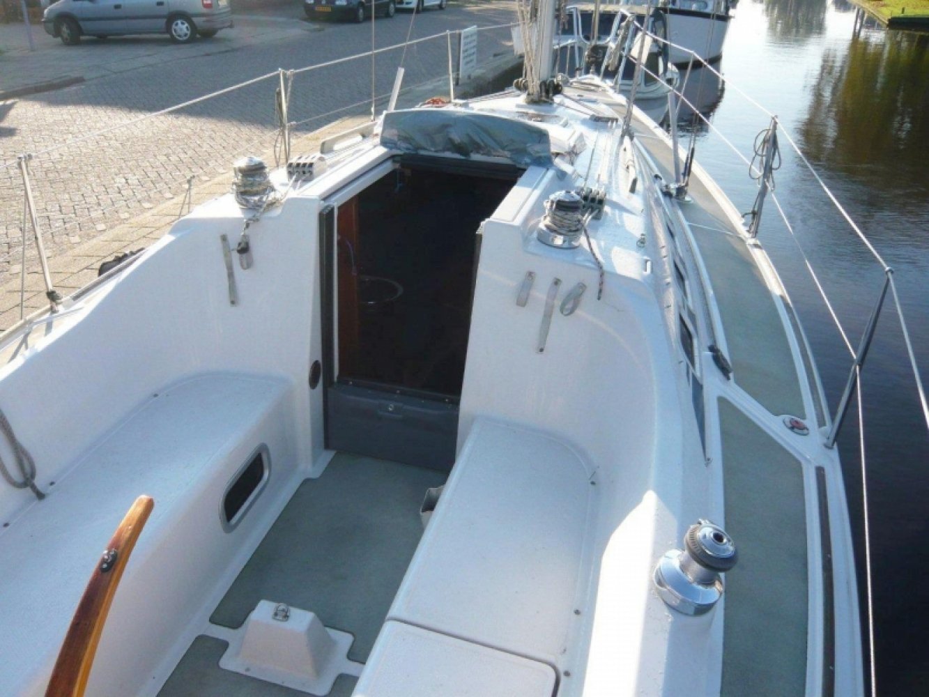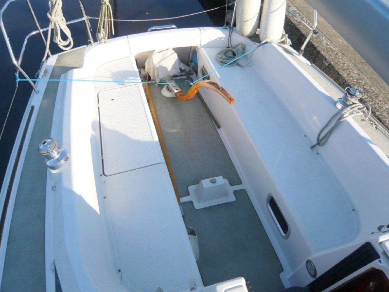 De Dehler 29 is zoals elke Dehler een bijzonder fijn schip. Dehlers staan bekend om de degelijke constructie, comfort en uiteraard de bovengemiddelde zeileigenschappen. Deze 29 is daar geen uitzondering op. Dit schip in het bijzonder is netjes onderhouden en in goede staat. Zodra u het schip ziet liggen vallen de kenmerkende Judel&Vrolijk lijnen direct op. Het schip ziet er in de haven al snel uit. Aan dek staat u op perfect antislip materiaal en de slimme indeling van de alle blokken geven de wedstrijd zeilers alle ruimte om zich uit te leven. Maar ook de recreatieve zeiler wordt meer dan uitstekend bediend met de Dehler 29. In de ruime en praktische kuip is altijd wel een lekker plekje te vinden en de aanwezige buiskap zorg voor beschutting op de mindere mooie dagen. Binnen in het schip is blijkt ook de praktische kant van deze sportieve zeiler. Natuurlijk is er de praktische kaarten tafel aan stuurboord. Maar ook een riante natte cel met een handige opbergruimte voor uw natte zeilkleding. Aan bakboord is het kombuis, voorzien van gas fornuis en compressor koelkast. Midscheeps is de gezellige salon met een riante en comfortabele U-bank en een solide tafel in het midden. De voorpiek heeft een open karakter met een V-bed maar is wel “af te sluiten” door middel van gordijnen. Deze slimme indeling geeft het schip een ruimtelijk gevoel en maakt die fijne U-bank mogelijk. In het achterschip is aan bakboord de twee hut. Deze is wel afsluitbaar met een vaste deur en is voorzien van een riant twee persoonsbed en opberg ruimte. De Dehler werf is er ook met de 29 in geslaagd om een praktisch schip te bouwen en de ogenschijnlijk onverenigbare wensen van de meeste zeilers te combineren, namelijk comfort en snelheid. Dehler heeft hier zelf nog de degelijke bouwwijze, praktisch nut en natuurlijk de mooie lijn aan toegevoegd. Mocht u opzoek zijn naar nette Dehler 29, neem dan gerust eens contact op om een afspraak te maken voor een bezichtiging aan boord van dit schip gelegen in Warmond.