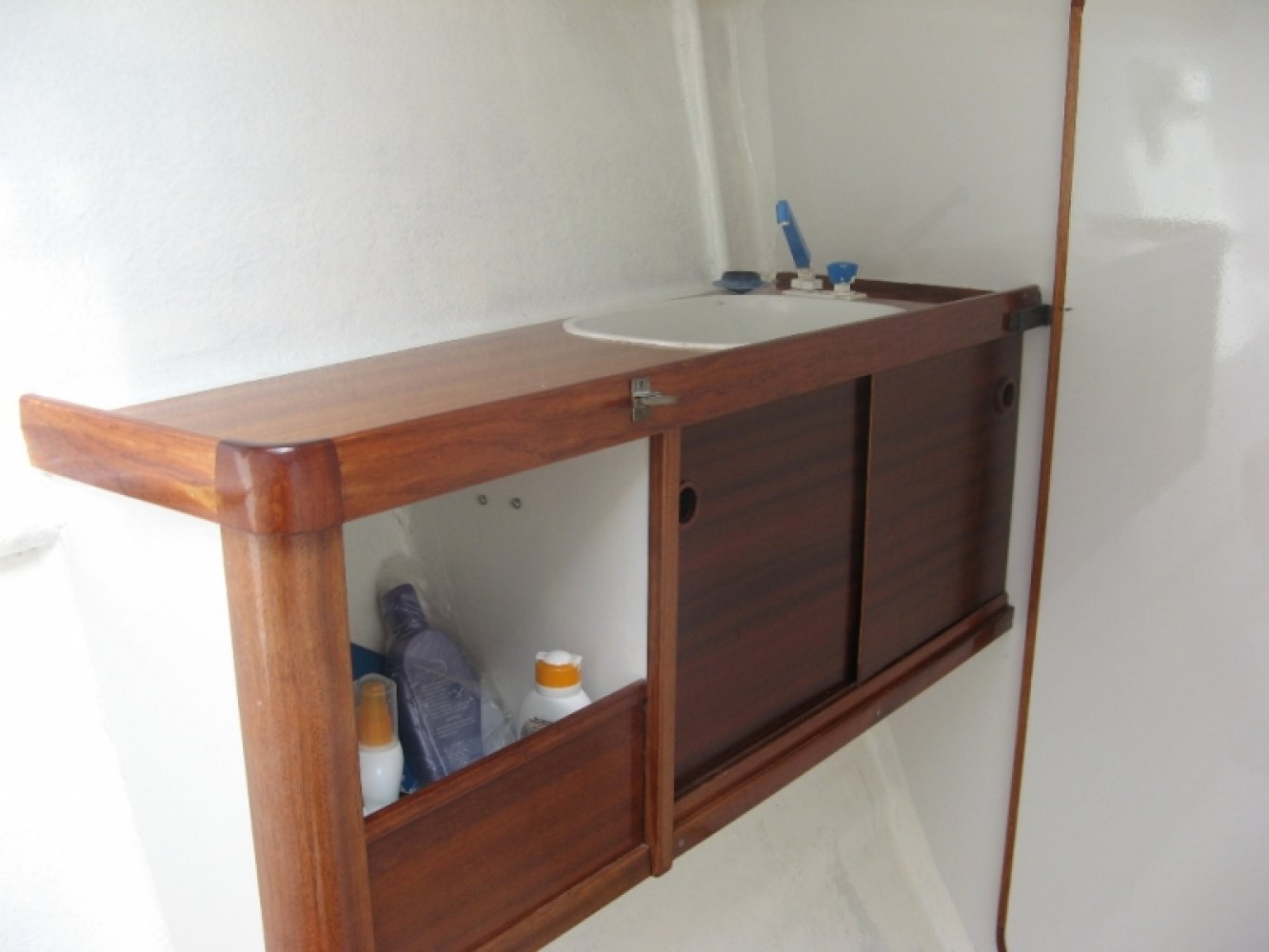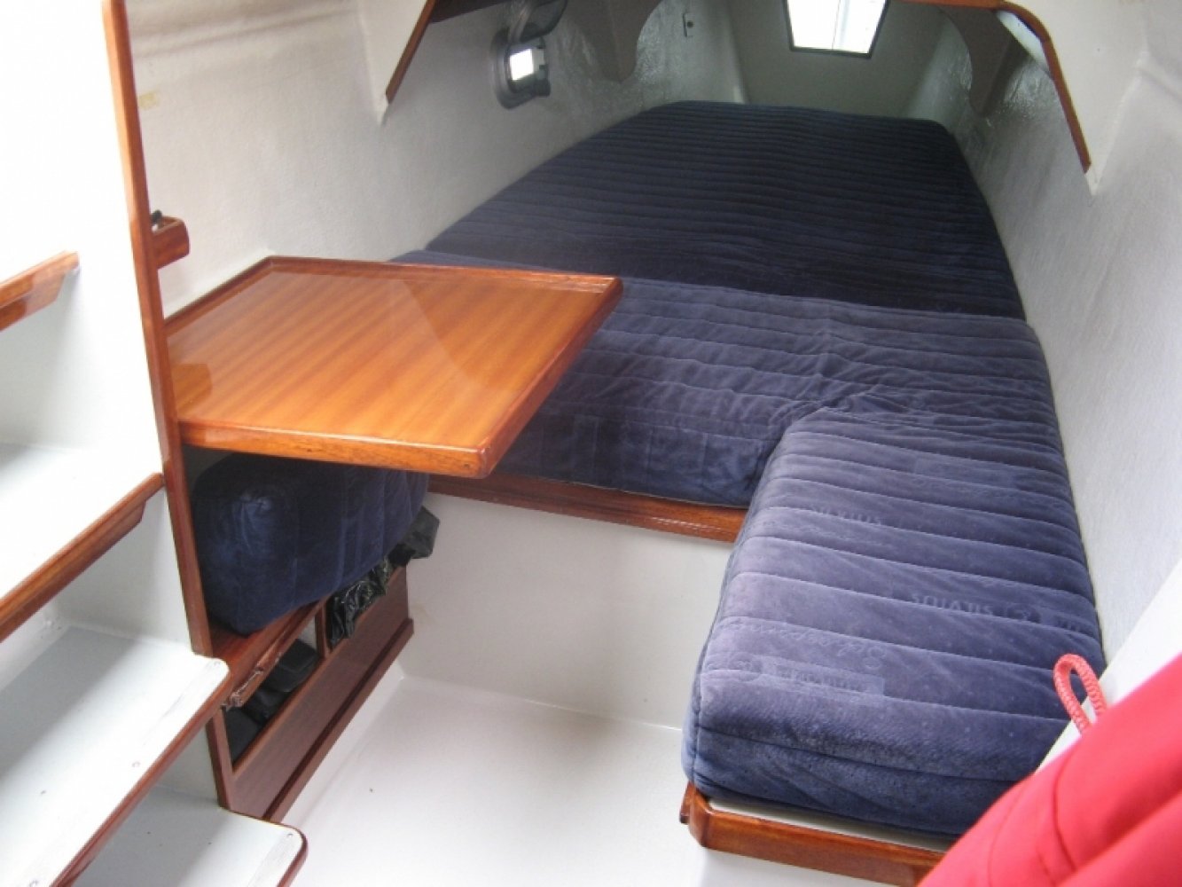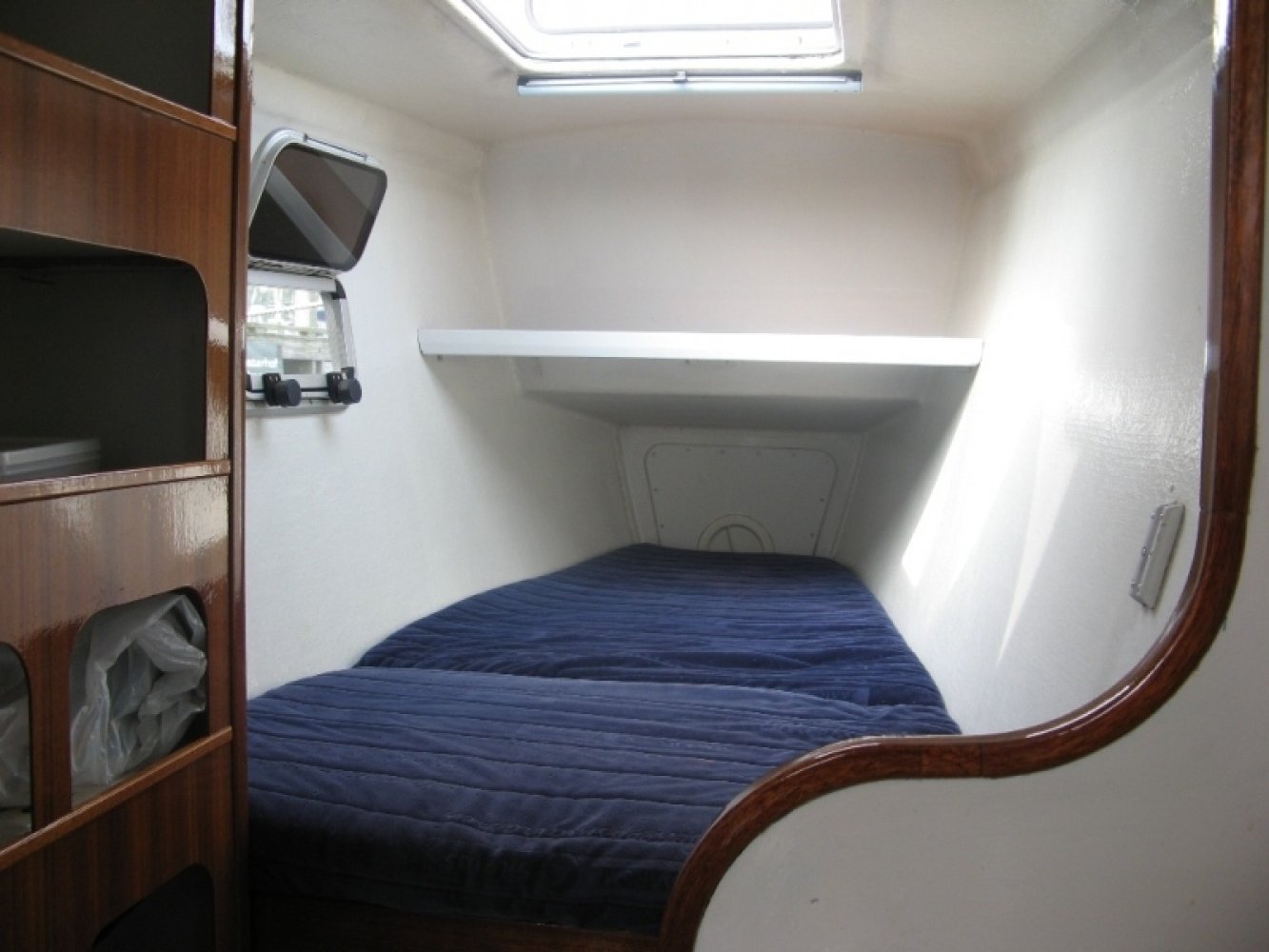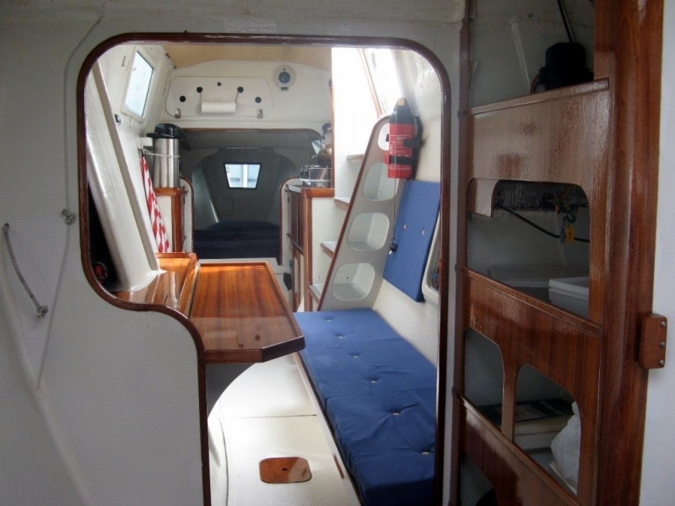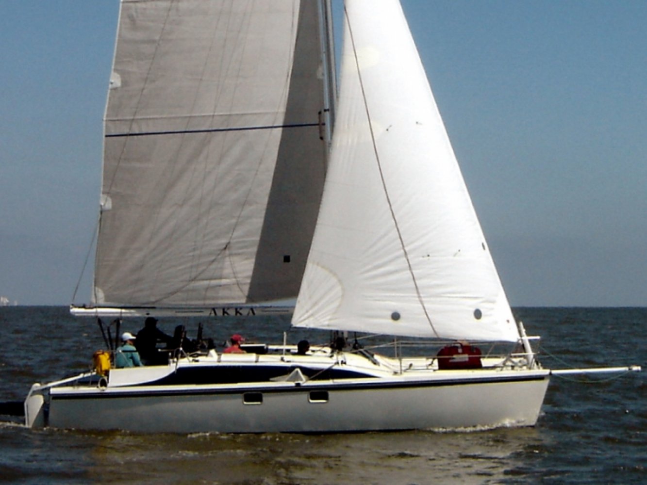 Deze door Lars Oudrup ontworpen Havkat 31 is bij Rhebergen in Amsterdam gebouwd als demo en de boot die wij u aanbieden is dus bouwnummer “1”. De gehele boot is gemaakt van sandwich polyester met schuim. Ondanks haar leeftijd verkeert ze in prima staat, zeker ook omdat de eigenaar kosten noch moeite heeft gespaard om haar in vorm te houden. Zo is de tuigage in 2007 geheel vernieuwd en is er een uitgebreide zeilgardarobe van kwaliteitszeilen. De 31 Havkat heeft een hoge fractionele tuigage met bak en checkstagen. Ze is bedoeld om te varen met grootzeil en zelfkerende fok maar er is ook een normale genua. Zij is heel gemakkelijk te hanteren door slechts 2 ervaren zeilers. Er is een asymmetrische spinnaker en er zijn twee grotere symmetrische spinnakers. De laatste twee worden gevaren op een normale spinnakerboom, voor de eerste is er een carbon telescopische boom die ingenieus onder de trampoline inschuift. De, zo goed als nieuwe, motor is midden tussen de drijvers in een motorkist geplaatst. De motor start elektrisch en levert meer dan genoeg vermogen om ook met veel wind goed vooruit te komen en te manoeuvreren. Het belangrijkste kenmerk van de Havkat 31 is haar grote center cockpit, en deze kan ook nog eens grotendeels worden overdekt met een tent waardoor er erg veel leefruimte ontstaat. Bij normale Havkat’s bestaat het achterste gedeelte uit trampoline, maar bij deze boot is hier een harde vloer zodat er erg veel leefruimte is. De accommodatie in de rompen bestaat uit een dubbel bed bakboord achter, en twee enkelle bedden in de stuurboord romp. In de bakboord romp zijn de navigatiehoek en de badkamer. Het toilet is zelfs voorzien van een vuilwatertank. De kombuis is midden in de stuurboord romp. De Havkat 31 is een snelle cruiser catamaran voor de ervaren zeiler. Onder catamaran zeilers is de Havkat al een begrip. Ook voor ervaren monohull zeilers is deze boot interessant, al zal men zich wel moeten verdiepen in het varen met dit soort boten. Deze moeite wordt zeker beloond want het varen met de Havkat is een ware sensatie, elke keer weer! Heeft u nog vragen, of wilt u een afspraak maken, neem dan zeker contact met ons op. Uw jachtmakelaar is Robert de Vries, tel. 06-50201336.