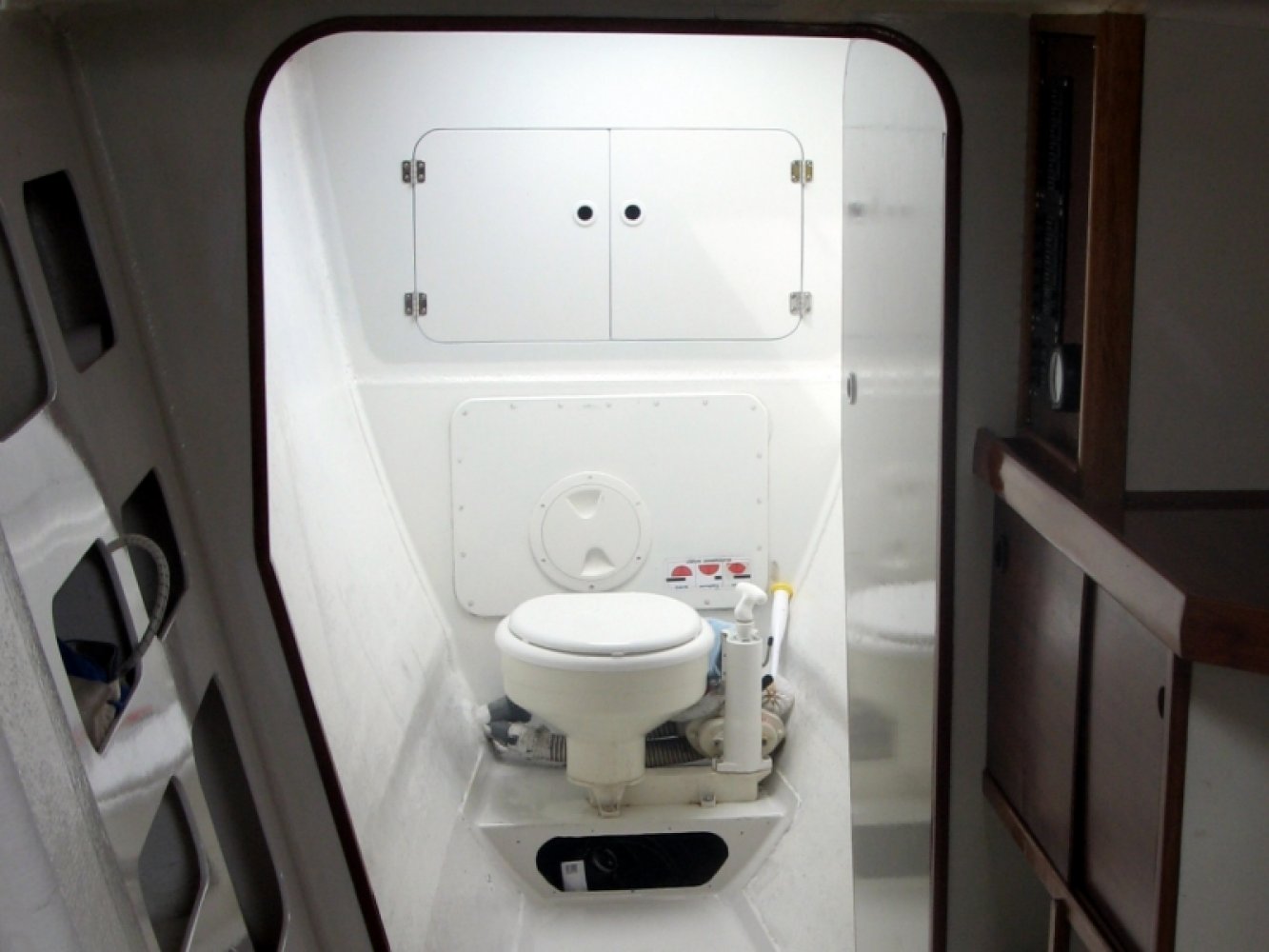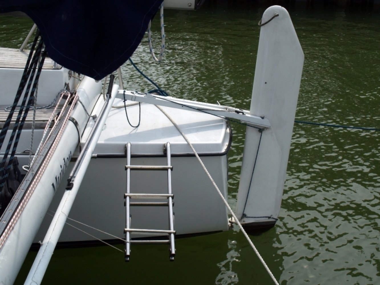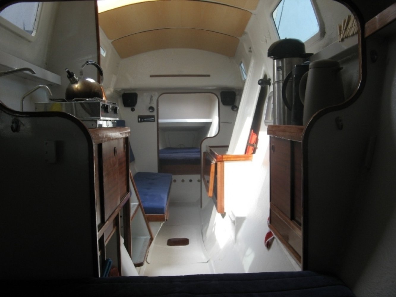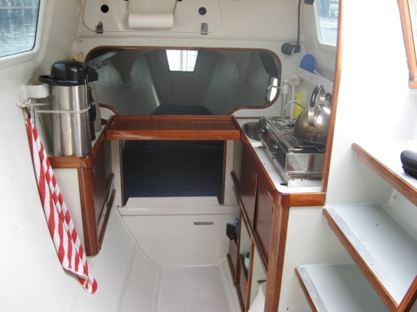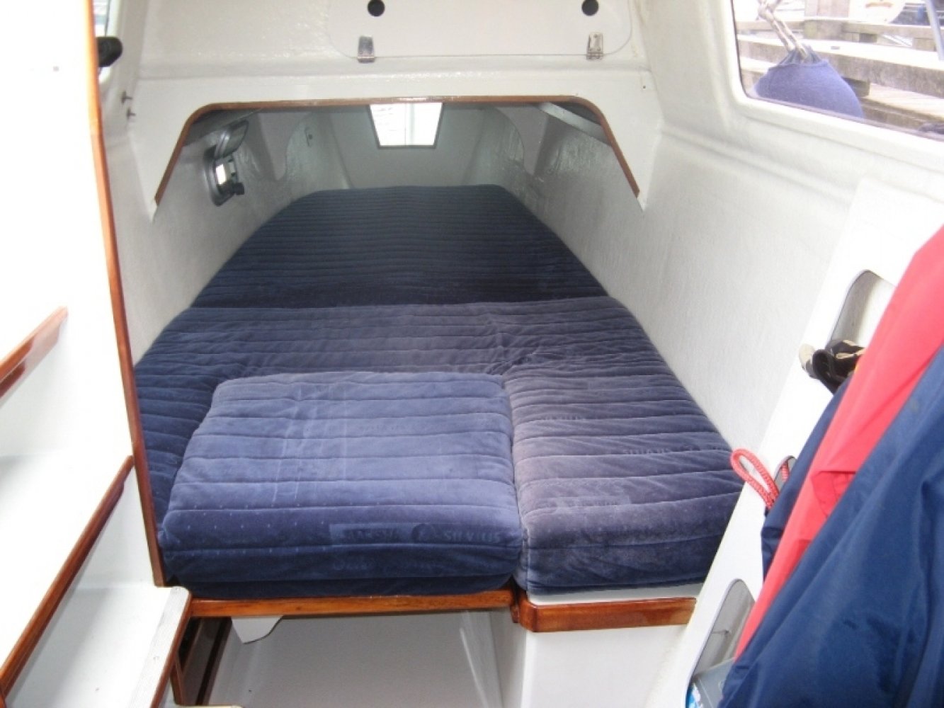 Deze door Lars Oudrup ontworpen Havkat 31 is bij Rhebergen in Amsterdam gebouwd als demo en de boot die wij u aanbieden is dus bouwnummer “1”. De gehele boot is gemaakt van sandwich polyester met schuim. Ondanks haar leeftijd verkeert ze in prima staat, zeker ook omdat de eigenaar kosten noch moeite heeft gespaard om haar in vorm te houden. Zo is de tuigage in 2007 geheel vernieuwd en is er een uitgebreide zeilgardarobe van kwaliteitszeilen. De 31 Havkat heeft een hoge fractionele tuigage met bak en checkstagen. Ze is bedoeld om te varen met grootzeil en zelfkerende fok maar er is ook een normale genua. Zij is heel gemakkelijk te hanteren door slechts 2 ervaren zeilers. Er is een asymmetrische spinnaker en er zijn twee grotere symmetrische spinnakers. De laatste twee worden gevaren op een normale spinnakerboom, voor de eerste is er een carbon telescopische boom die ingenieus onder de trampoline inschuift. De, zo goed als nieuwe, motor is midden tussen de drijvers in een motorkist geplaatst. De motor start elektrisch en levert meer dan genoeg vermogen om ook met veel wind goed vooruit te komen en te manoeuvreren. Het belangrijkste kenmerk van de Havkat 31 is haar grote center cockpit, en deze kan ook nog eens grotendeels worden overdekt met een tent waardoor er erg veel leefruimte ontstaat. Bij normale Havkat’s bestaat het achterste gedeelte uit trampoline, maar bij deze boot is hier een harde vloer zodat er erg veel leefruimte is. De accommodatie in de rompen bestaat uit een dubbel bed bakboord achter, en twee enkelle bedden in de stuurboord romp. In de bakboord romp zijn de navigatiehoek en de badkamer. Het toilet is zelfs voorzien van een vuilwatertank. De kombuis is midden in de stuurboord romp. De Havkat 31 is een snelle cruiser catamaran voor de ervaren zeiler. Onder catamaran zeilers is de Havkat al een begrip. Ook voor ervaren monohull zeilers is deze boot interessant, al zal men zich wel moeten verdiepen in het varen met dit soort boten. Deze moeite wordt zeker beloond want het varen met de Havkat is een ware sensatie, elke keer weer! Heeft u nog vragen, of wilt u een afspraak maken, neem dan zeker contact met ons op. Uw jachtmakelaar is Robert de Vries, tel. 06-50201336.
