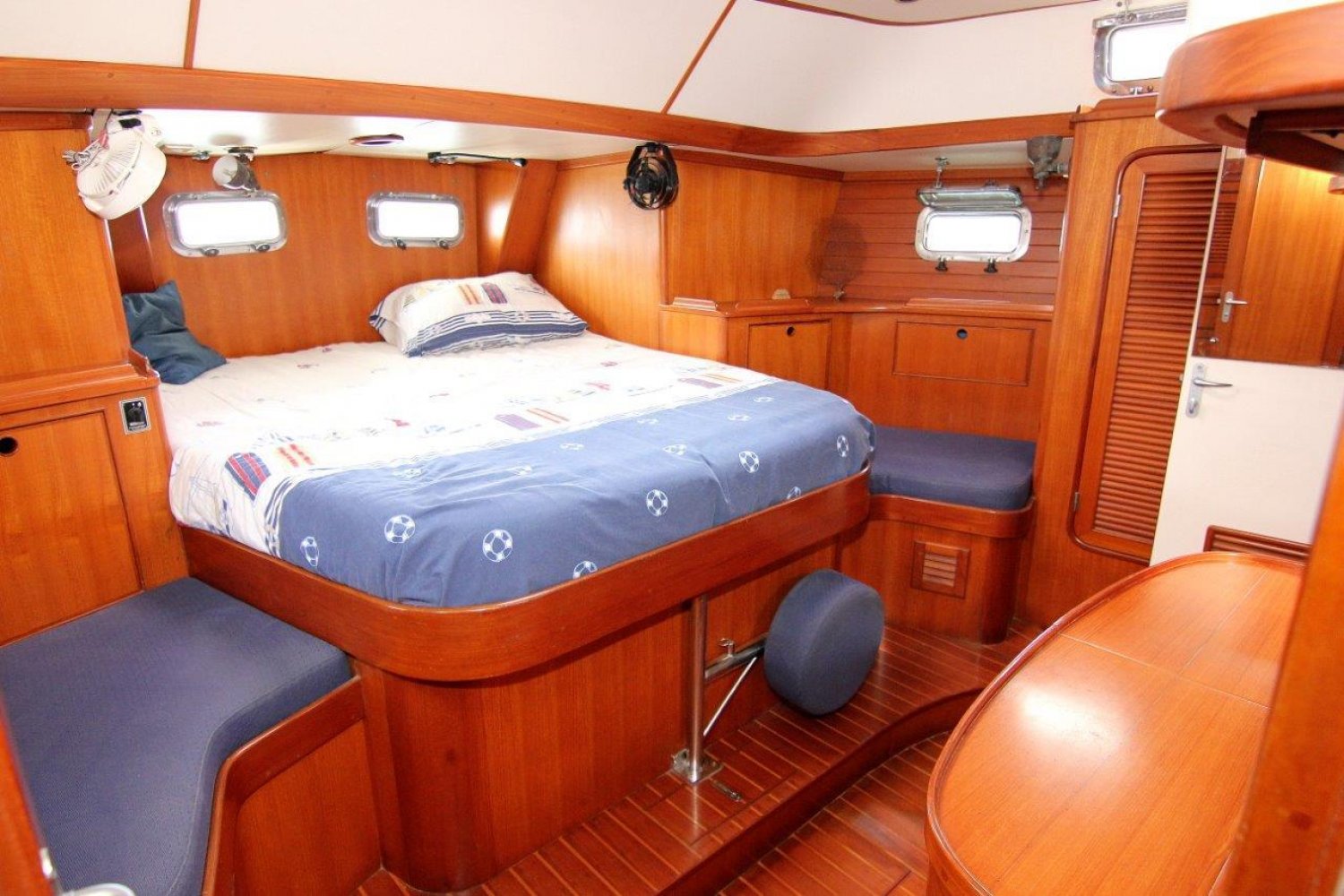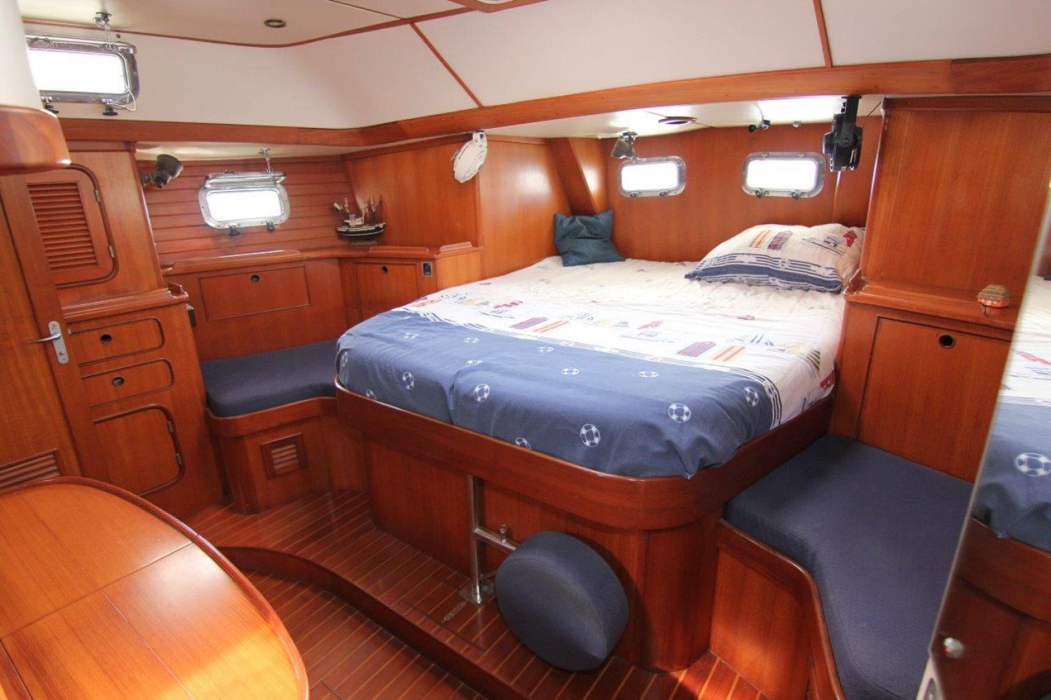 The Taswell 43, especially in the decksalon version, is a superb yacht for serious sailing trips. She offers top safety at sea, ample spaces above and below deck and a high quality of built. The spacious ownerscabin with ensuite bathroom, the enormous galley and the light salon with magnificent views outside are the trademark of this Taswell. In the bow this boat offers 2 cabins with bunkbeds and the second bathroom in the bow.