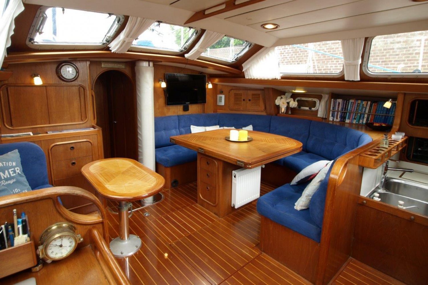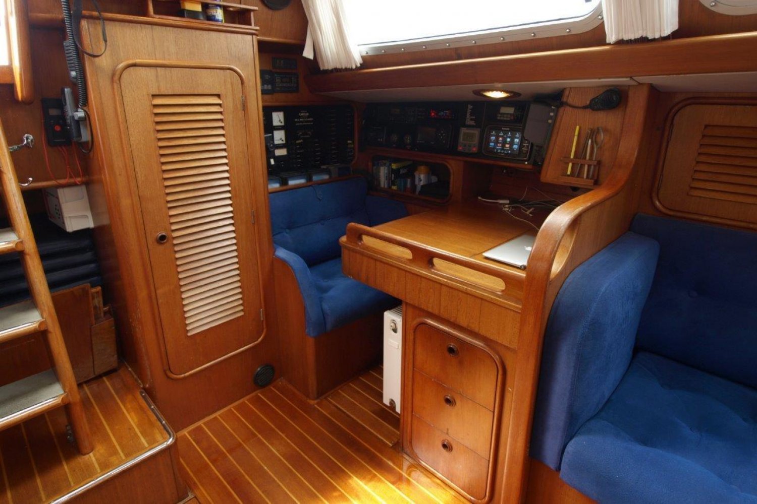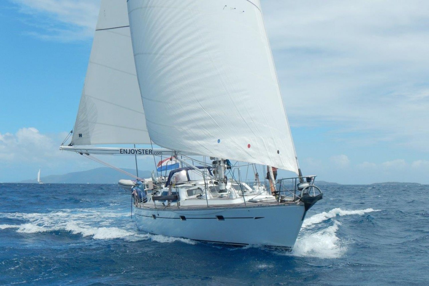 She is well suited for long trips, the Oyster 53 is offered with a generator, watermaker, windgenerator, solar panels, autopilot, central heating, airconditioning,  3 comfortable double cabins, a bright and spacious salon, two sanitary rooms, lots of storage space, a mailsail + genoa from 2018 (truly like new) and many more.