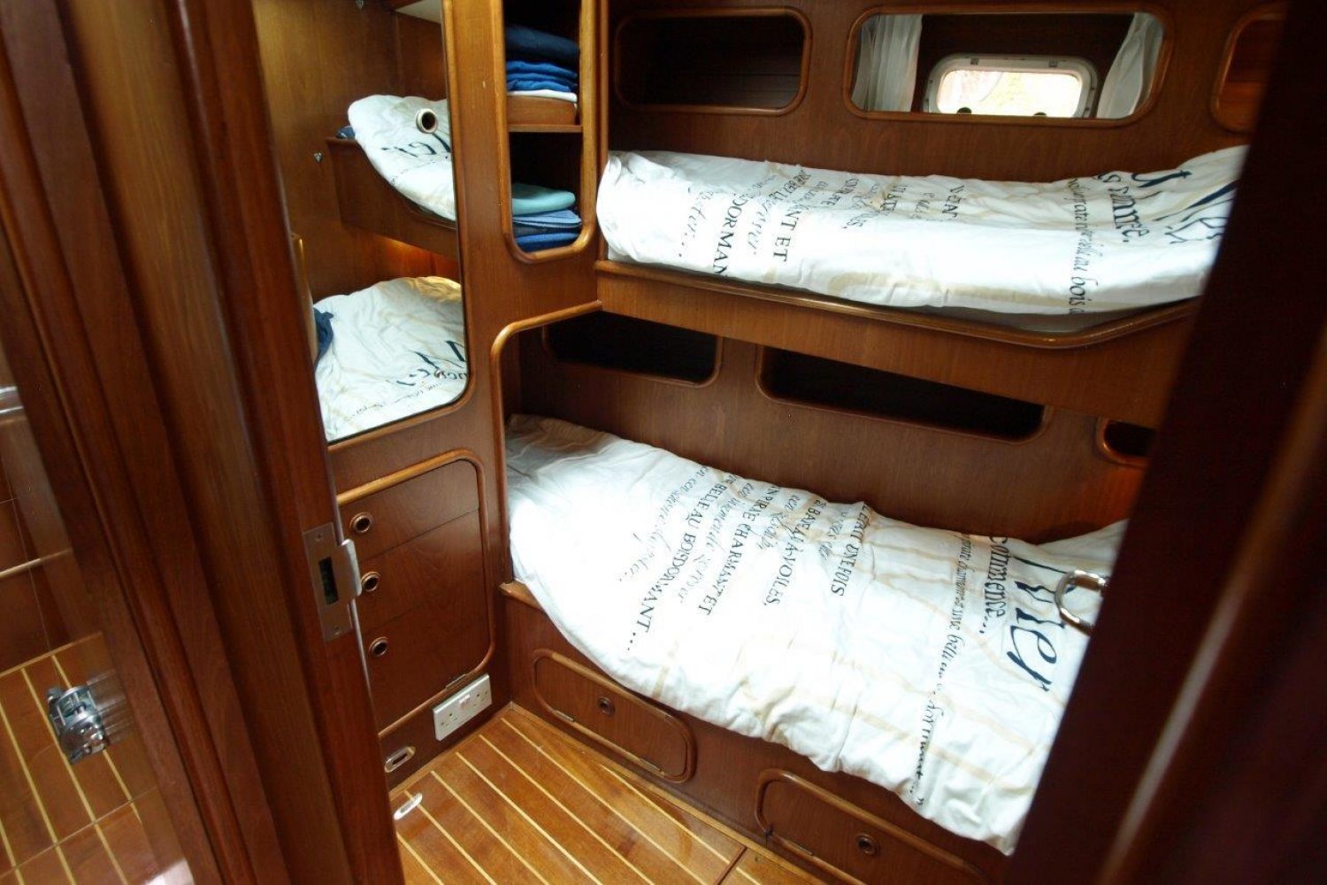 Winches: Mast - 2x Andersen Line tender / 1x 43ST / 1x 30ST / 1x 52ST Cockpit - 2x 16ST / 2x 43ST / 2x 52ST / 2x 65ST / 1x 55ST Electric   Sails: Msails mainsail triradial 58m2, 2018 Msails Genoa 2 triradial 63m2, 2018 Code Zero, 2007 Hyde mainsail 58m2, 2012 Hyde Genoa 72m2, 2012 Hyde cutterstay 25m2, 2012 Pink sails, asymmetrical triradial spi + snuffer, 2015 North triradial + snuffer spi, 2007 North jib, 16m2, 2007