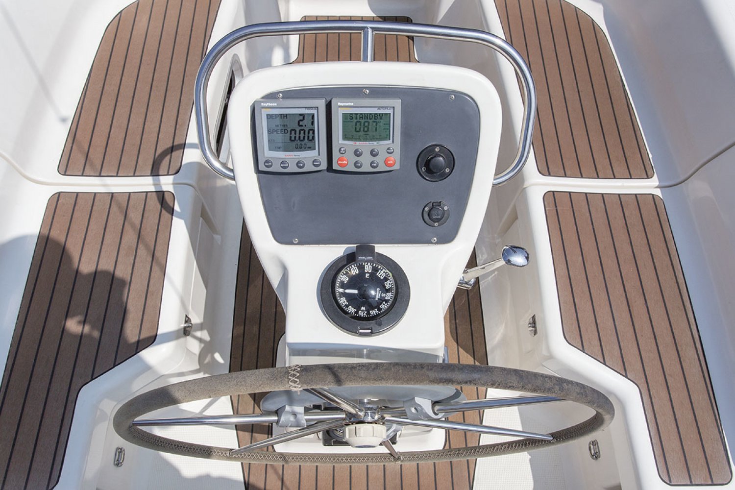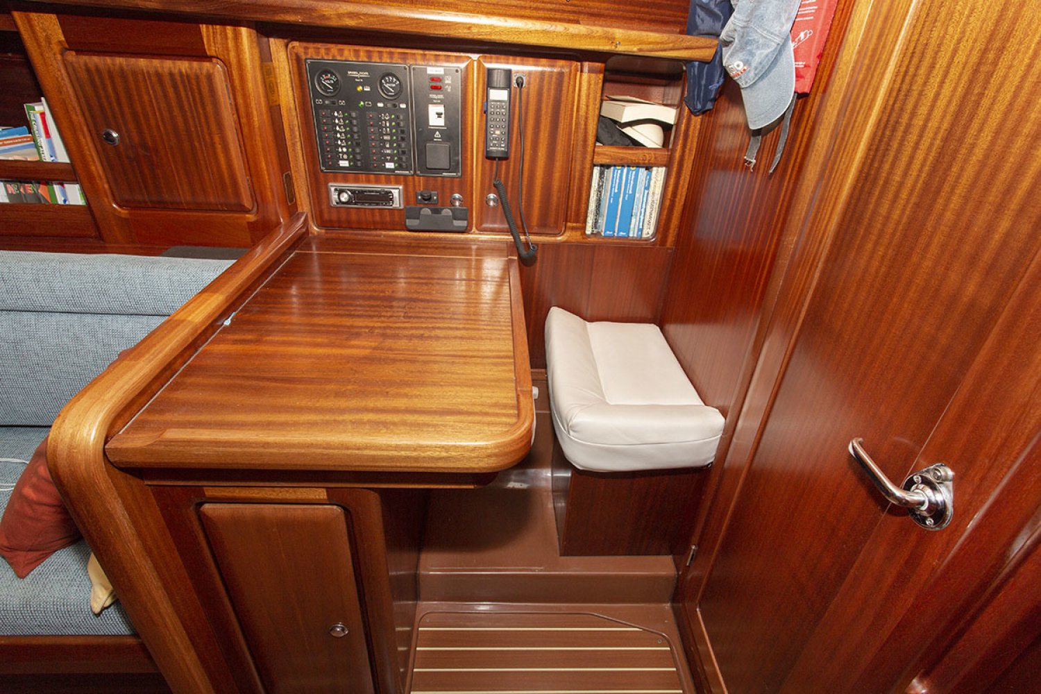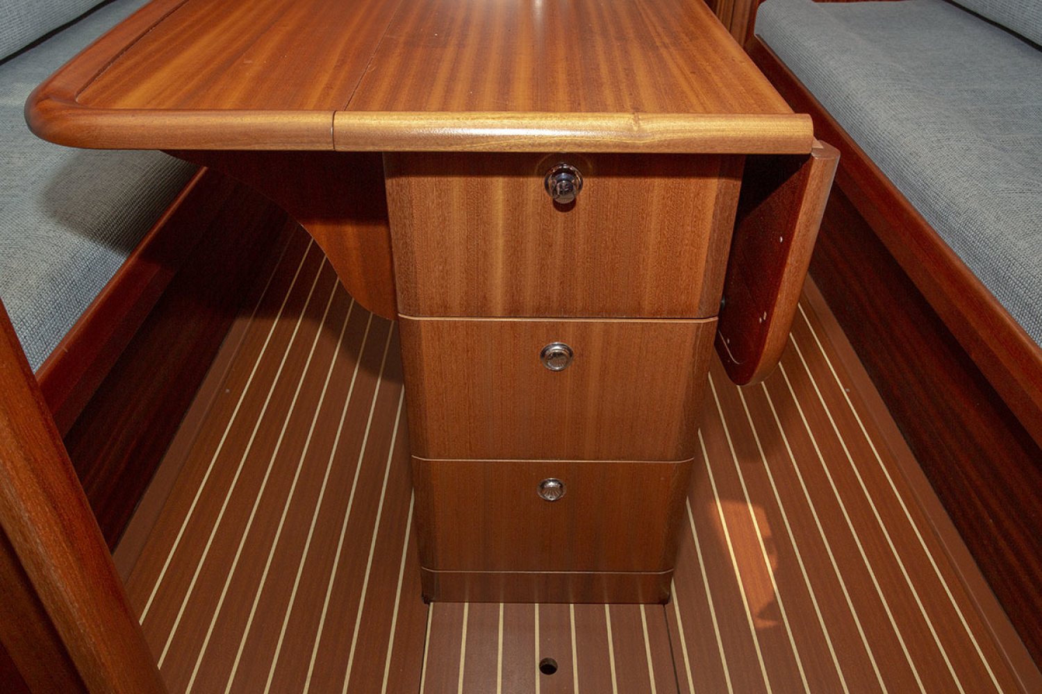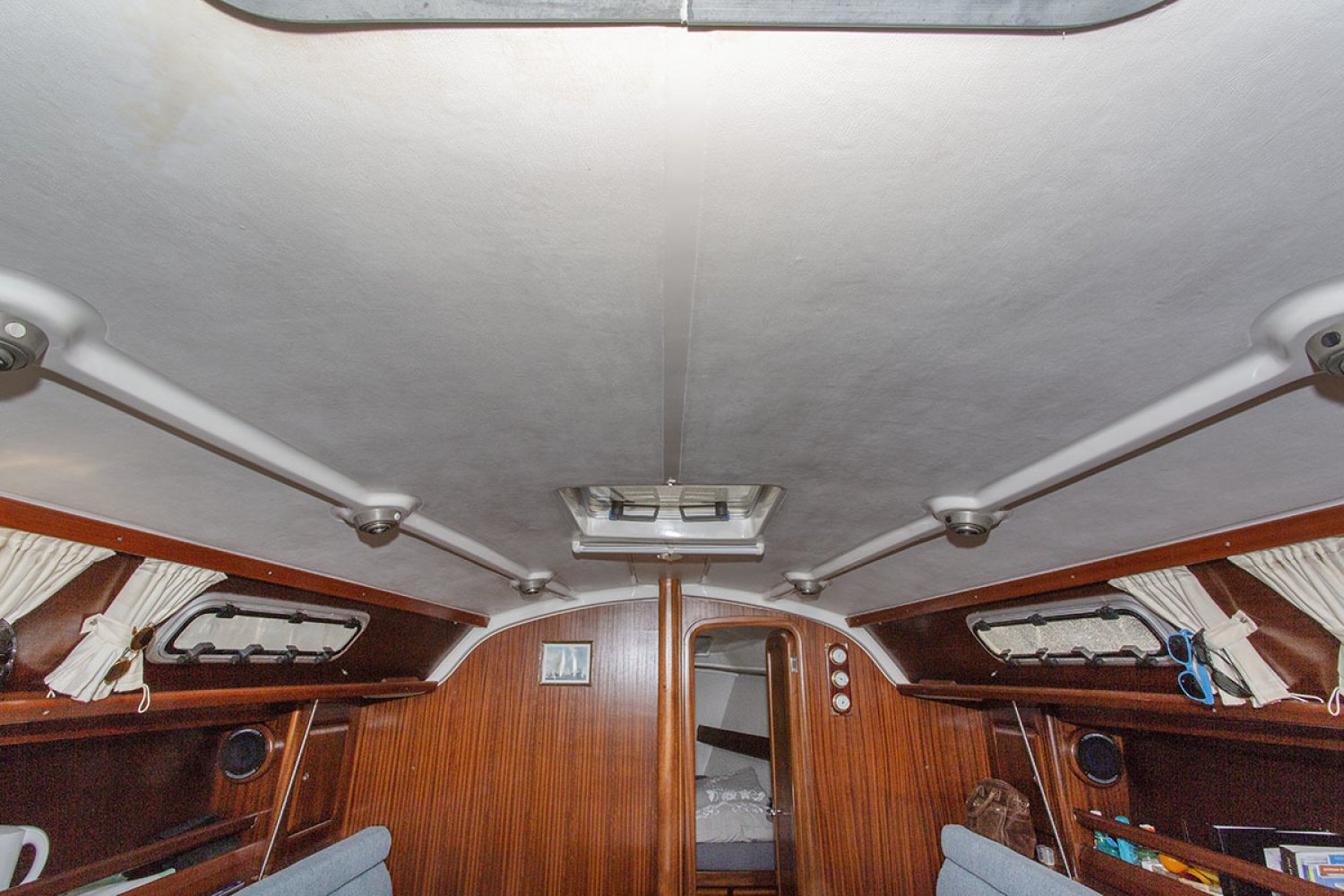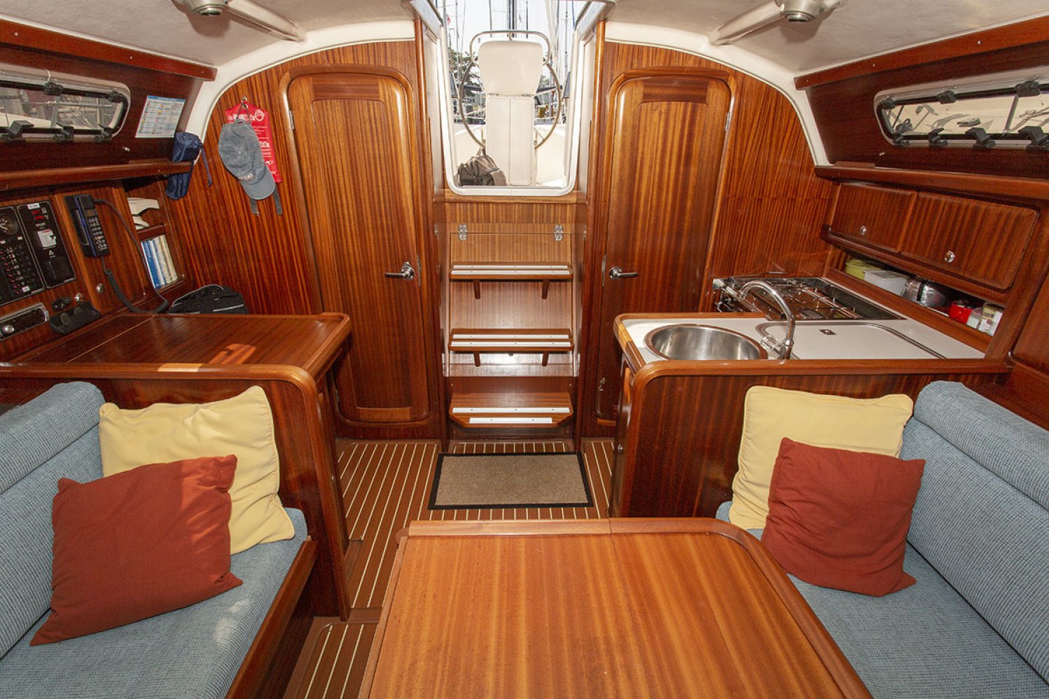 Deze Bavaria 34 in 2 cabine-indeling is een ideale familie cruiser. De boot is van eerste eigenaar en werd steeds professioneel onderhouden sinds tewaterlating in het voorjaar van 2000. De boot is  redelijk onderhouds arm onder andere omdat de kuip is voorzien van kunststof teak op de banken. Aan stuurboord treft u een diepe bakskist met daarin voldoende ruimte voor grote dingen zoals vouwfietsen. Aan bakboord is een ondieper bakskist. De boot is makkelijk te varen, en vanaf het roer heeft men goed overzicht en controle over de boot. Op de stuurstand zijn de navigatie-instrumenten en de autopilot bedieningspaneel.   Het interieur is ruim en praktisch ingericht met een uitstekende afwerking van het houtwerk en veel kastruimte. De kussens zijn recent vernieuwd.  De L-vormige keuken is ruim en modern ingericht en uitgerust met fornuis, oven, koelbox en gootsteen. Aan stuurboord is de kaartentafel met schakelbord en VHF radio. Er zijn vier vaste slaapplaatsen in twee dubbele hutten. De voorkajuit heeft een groot bed in V-vorm. Rechts van de kajuitingang is de toiletruimte met veel bergruimte, onder andere voor zeilkleding. De motorruimte is  goed bereikbaar via de scharnieren de trap.