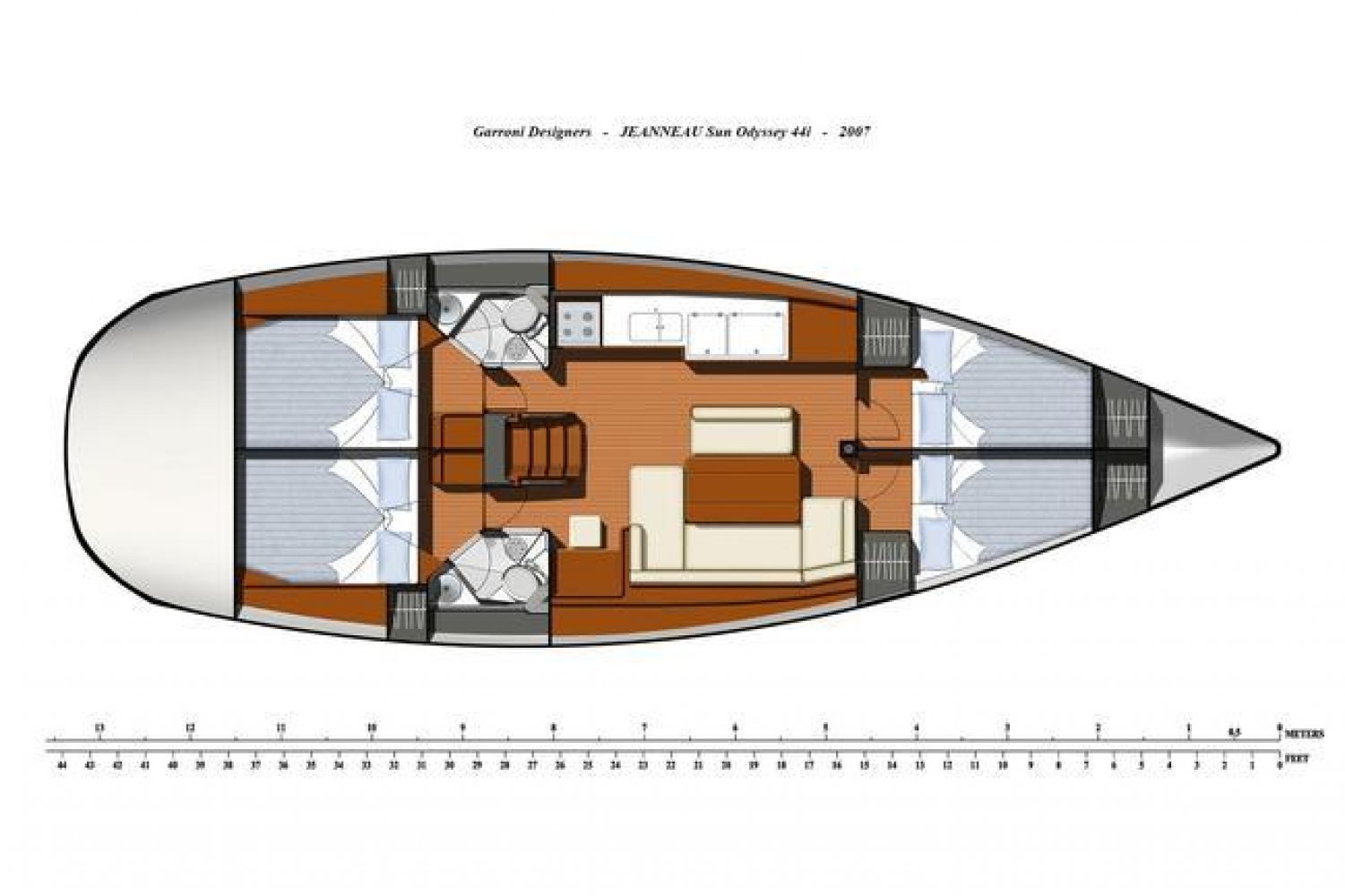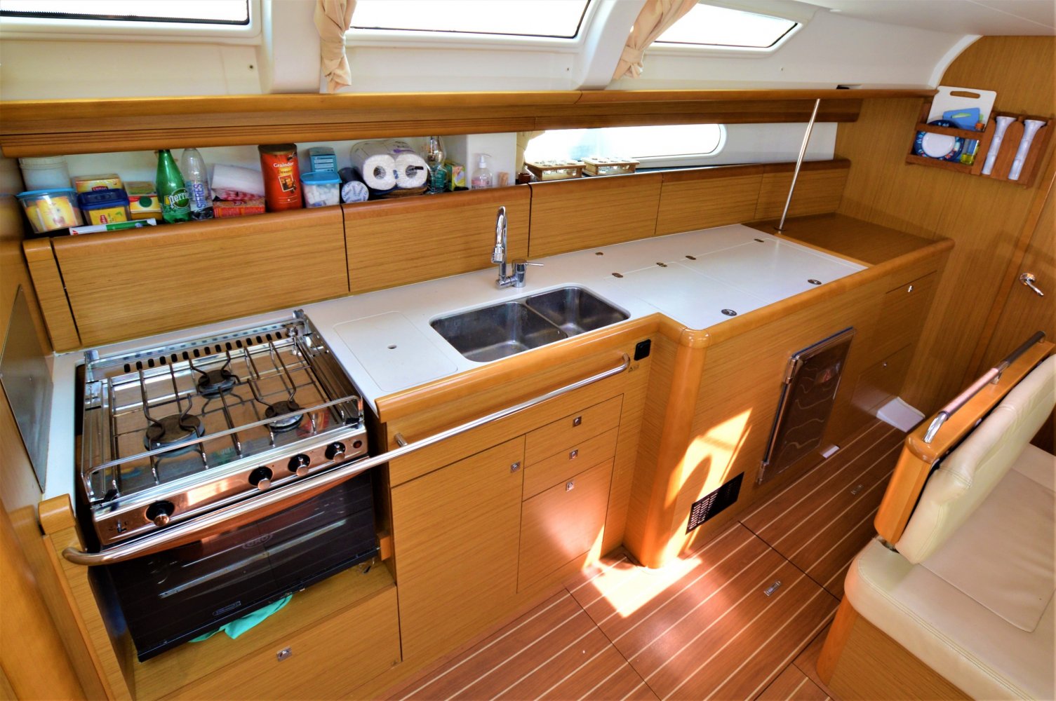 Goed onderhouden Jeanneau Sun Odyssey 44i van eerste eigenaar. Door de 4 kajuiten en 2 badkamers is deze uitermate geschikt voor gebruik door grote gezinnen en groepen.