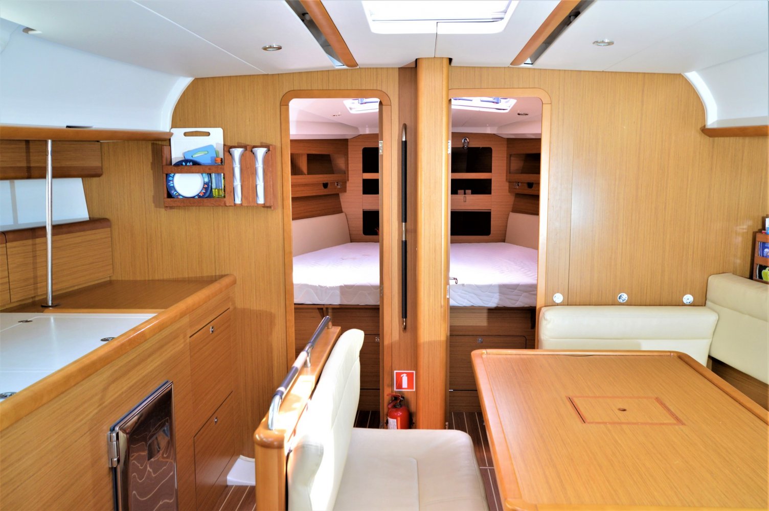 De gereputeerde Franse ontwerper Philippe Briand maakte eveneens van dit zeiljacht een prachtige uitvoering.