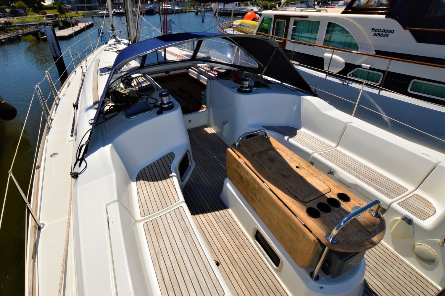 Mooi uitgerust en zeilklaar voor een flinke tocht. De ruime kuip en grote binnenruimte zorgen voor een extra rustgevend gevoel.