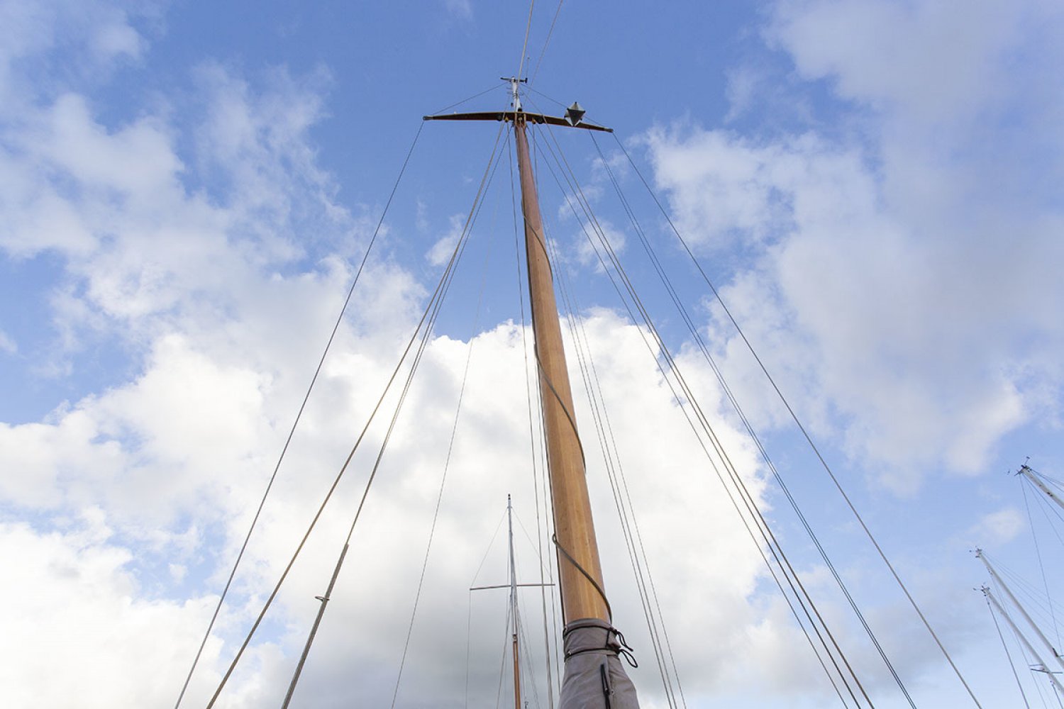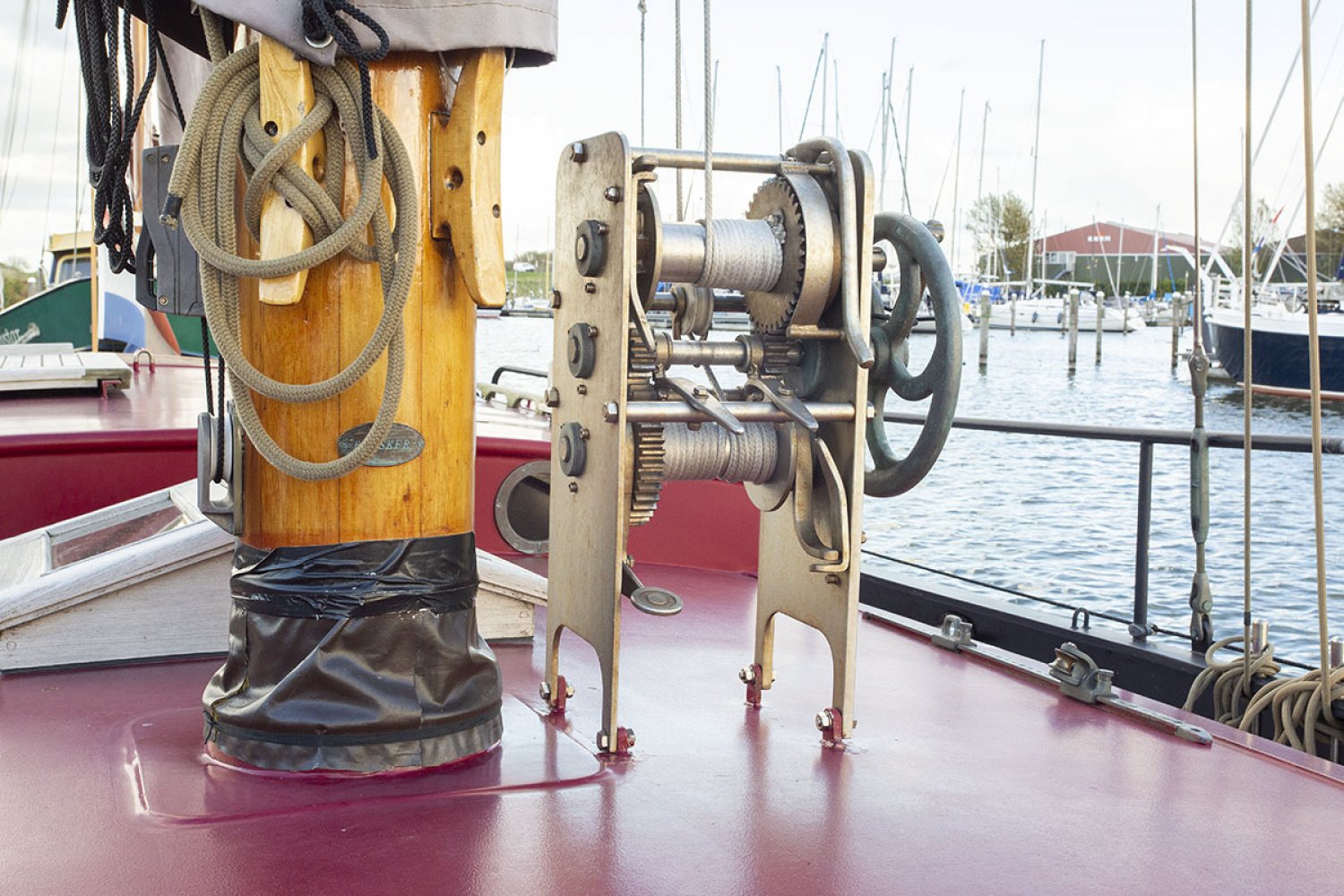 aan de mast vastgemonteerd