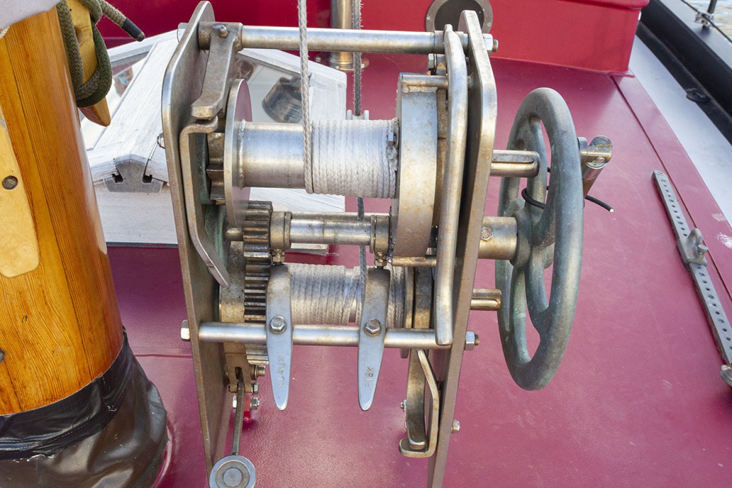 Hout Boegspriet hout, Giek en gaffel Brasker