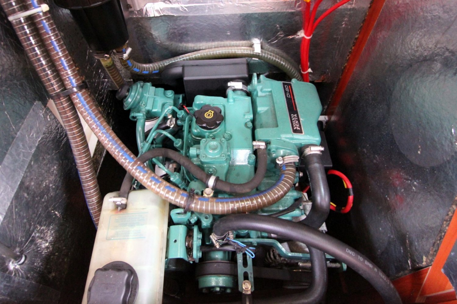 de Bavaria 30 is voorzien van Volvo Penta D1-20 motor met saildrive en twee-blad vaste schroef.
