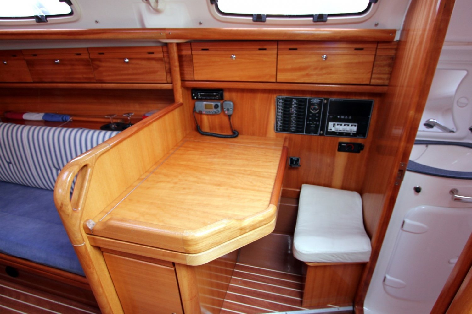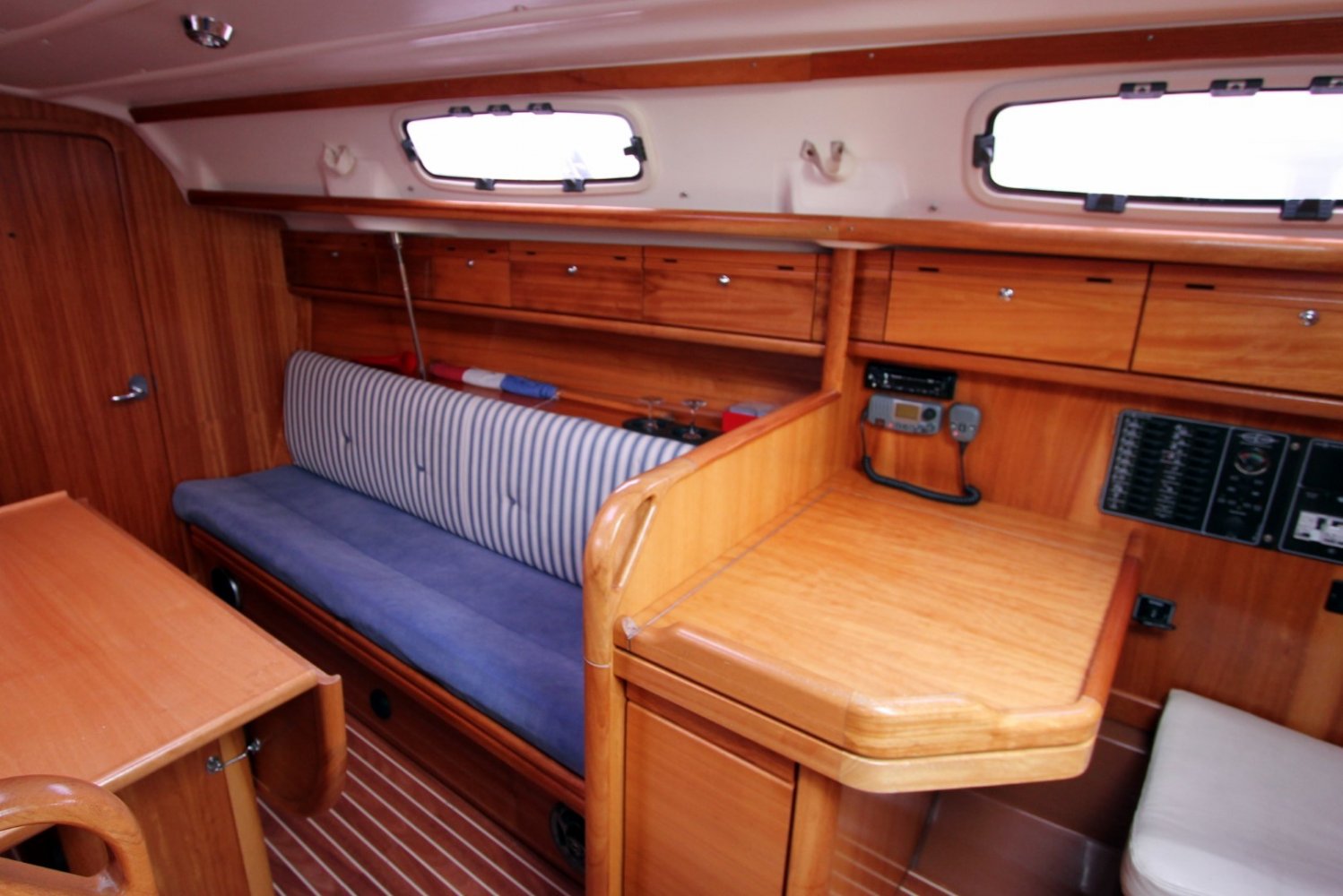 Het jacht is technisch en cosmetisch altijd professioneel onderhouden. De Bavaria 30 Cruiser is eenvoudig te varen en alle lijnen zijn naar de kuip geleid. Het interieur is van licht mahonie en door de luiken en ramen valt veel licht naar binnen. De salon heeft twee langsbanken met goede kussens, een complete kombuis en een navigatie tafel. In de boeg en achterschip zijn tweepersoons kooien. De Volvo D1-20 is goed bereikbaar voor service en inspectie. De boot kan eventueel ook ex-btw worden geleverd aan zakelijke klanten.