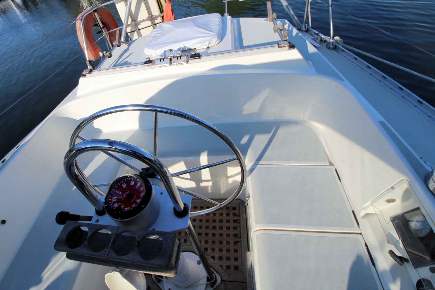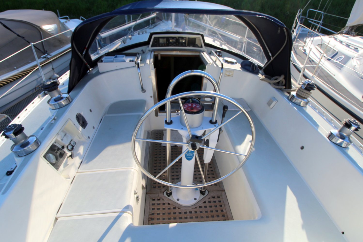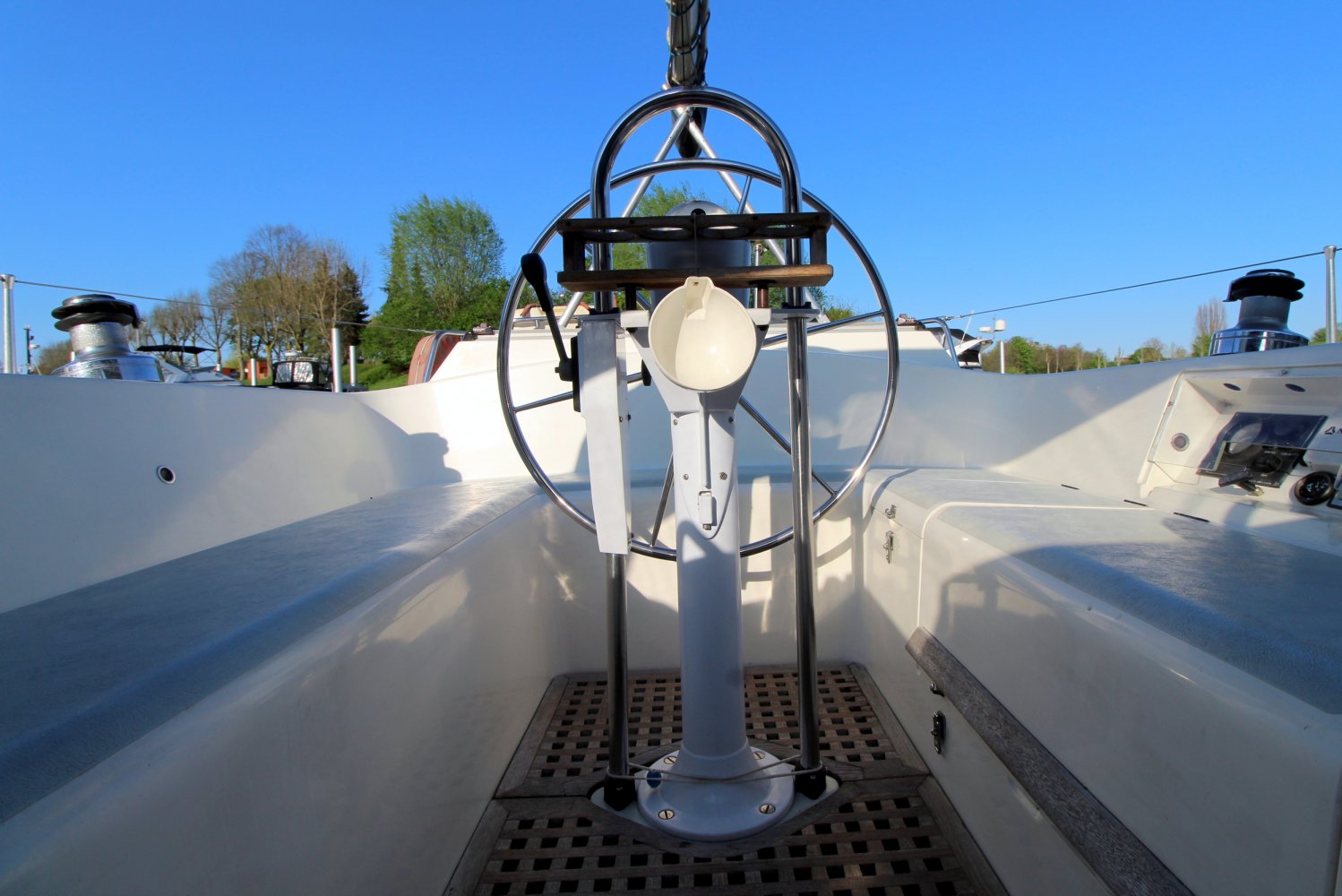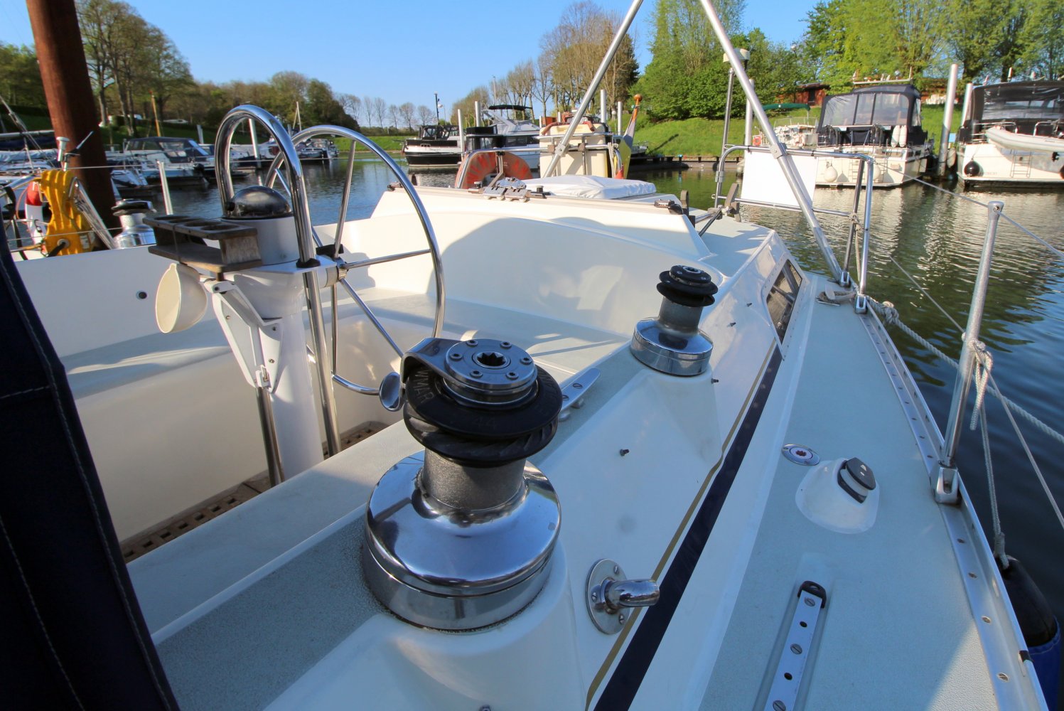 4x lier in kuip (Lewmar) + 3x lier bij mast.