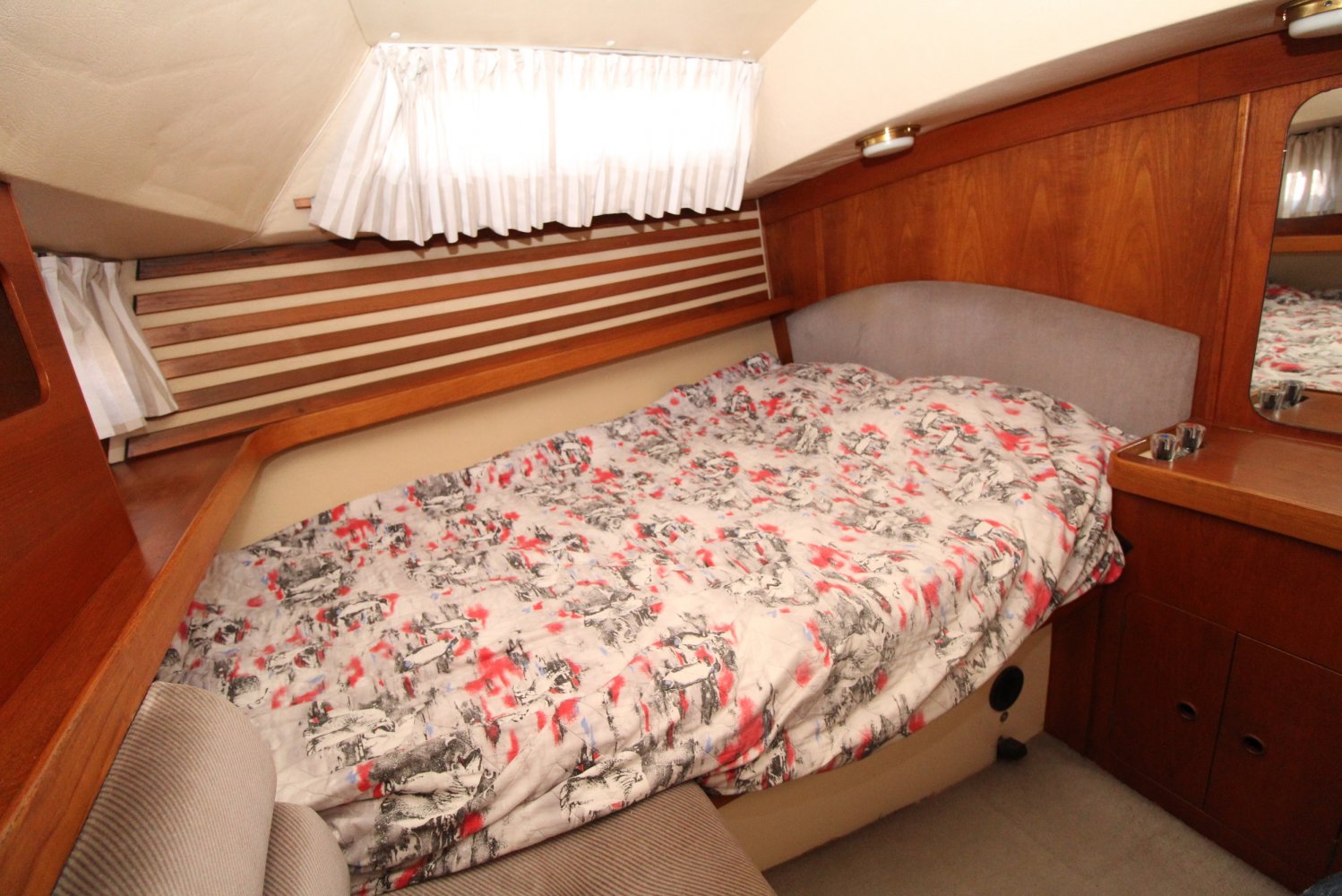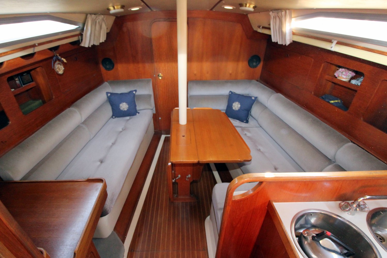 Deze zeer goed onderhouden Moody 346 Center Cockpit is één van de meest succesvolle ontwerpen van Moody zeilboten. De sterk gebouwde romp in combinatie met uitstekende zeileigenschappen maakt haar nog steeds een ideale zeilboot voor lange en korte afstanden. Het interieur is zeer ruim en praktisch ingedeeld. De eigenaar heeft dit schip altijd zeer goed onderhouden en er prachtige reizen mee gemaakt, van de Scandinavische landen tot aan de Middellandse Zee. Deze Moody 346 wordt compleet en vaarklaar geleverd, en voor de winterstalling krijgt u er zelfs een eigen bok en winterzeil bij.