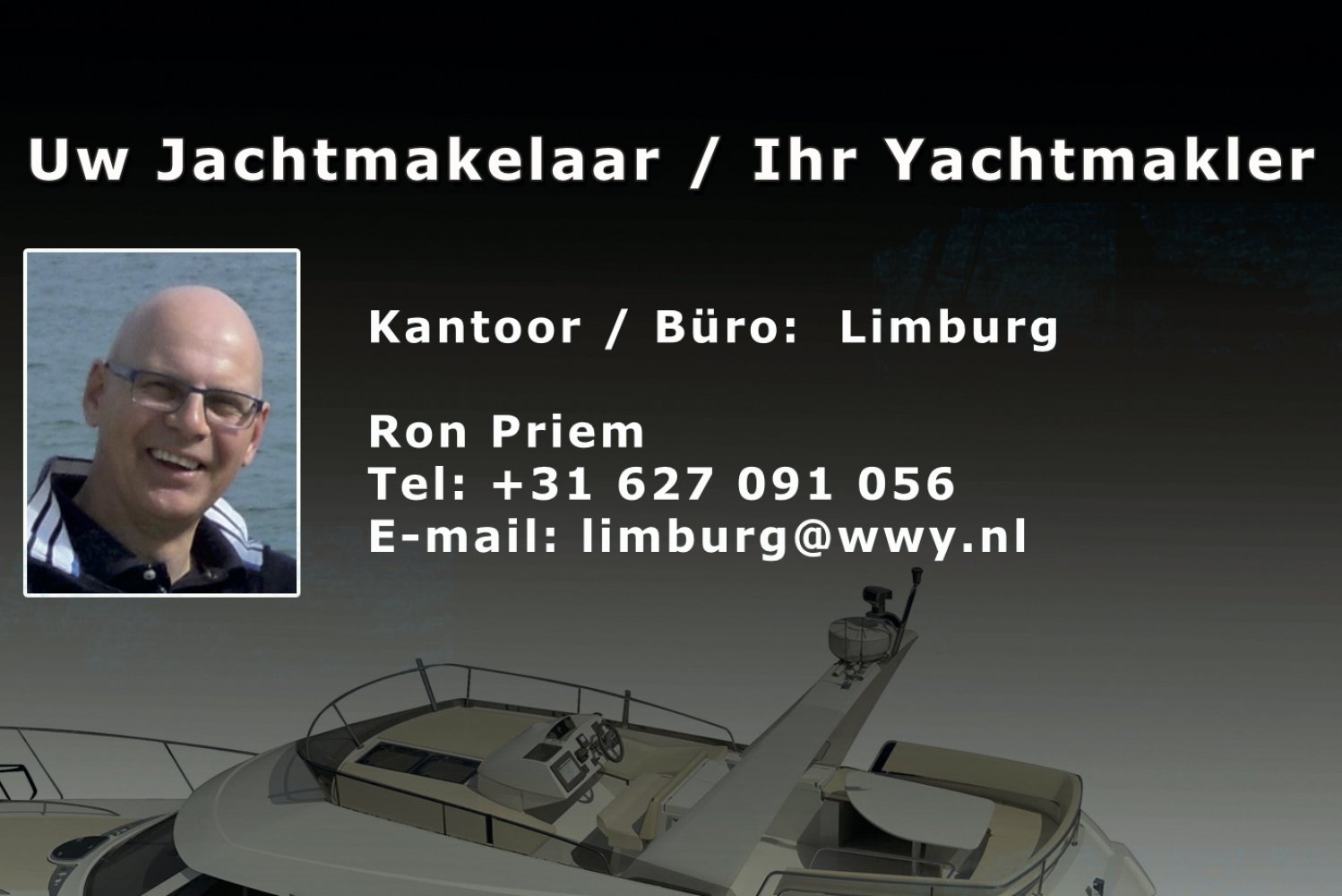 Uw jachtmakelaar is Ron Priem    Tel: +31 (0) 627 091 056    Email:  [email protected]